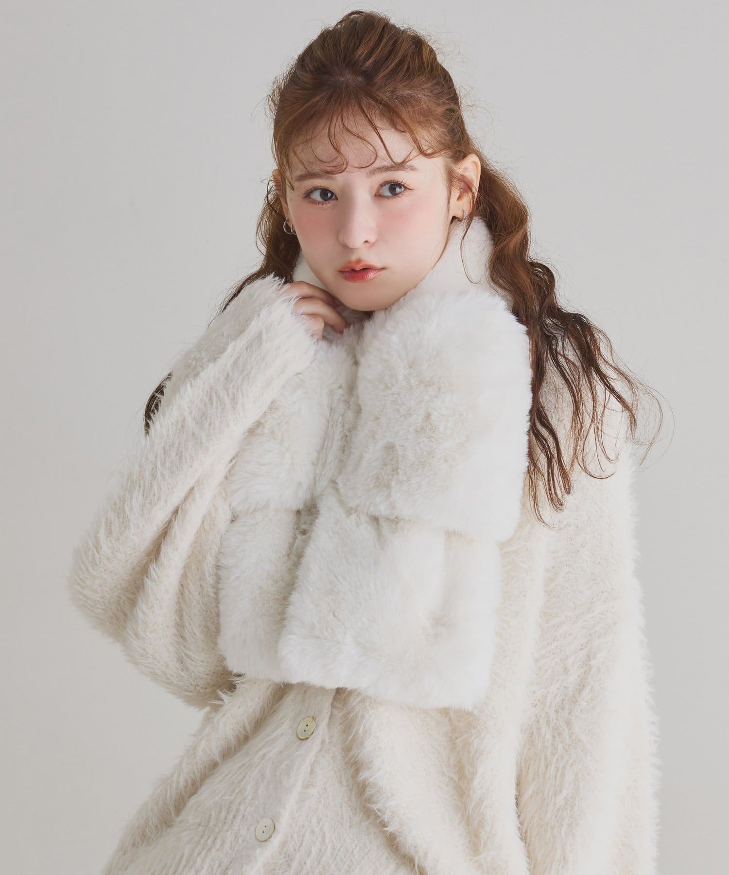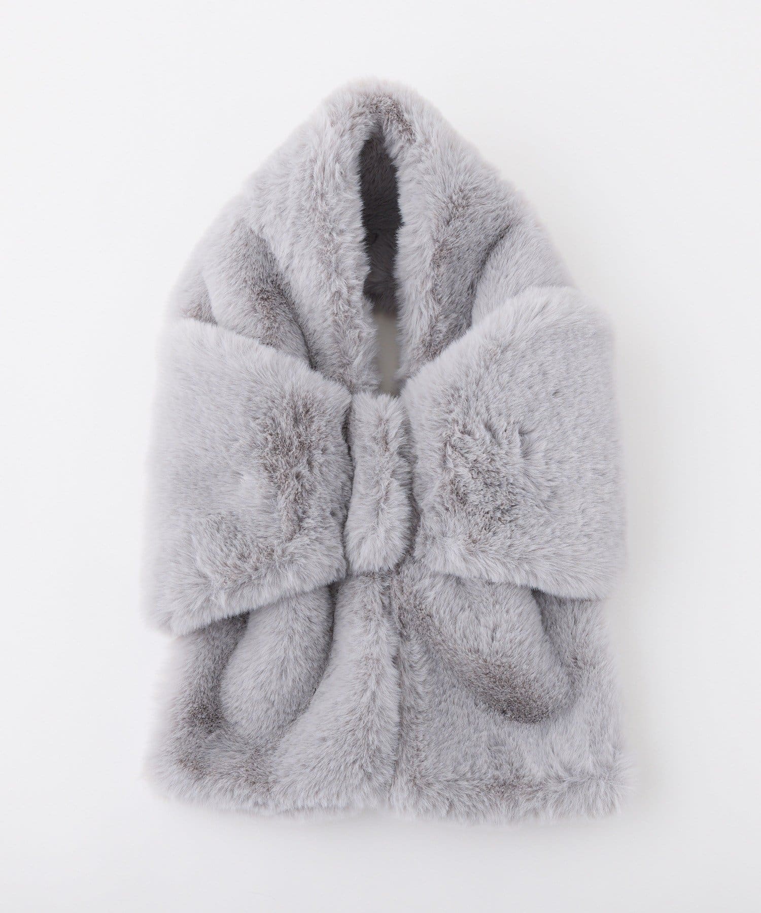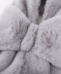首元にそっと寄り添う、可愛らしいリボンデザインのフェイクファーティペット。