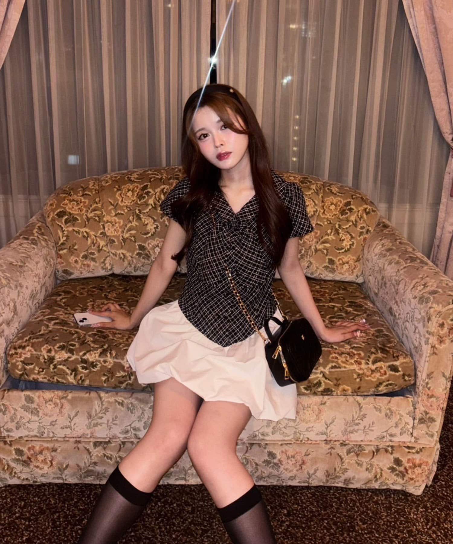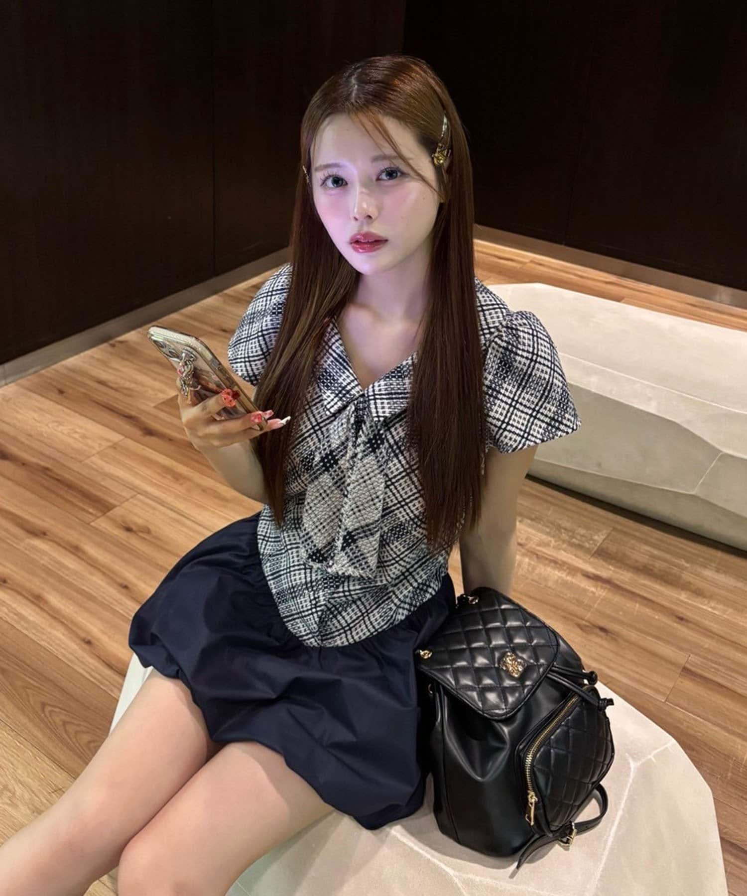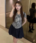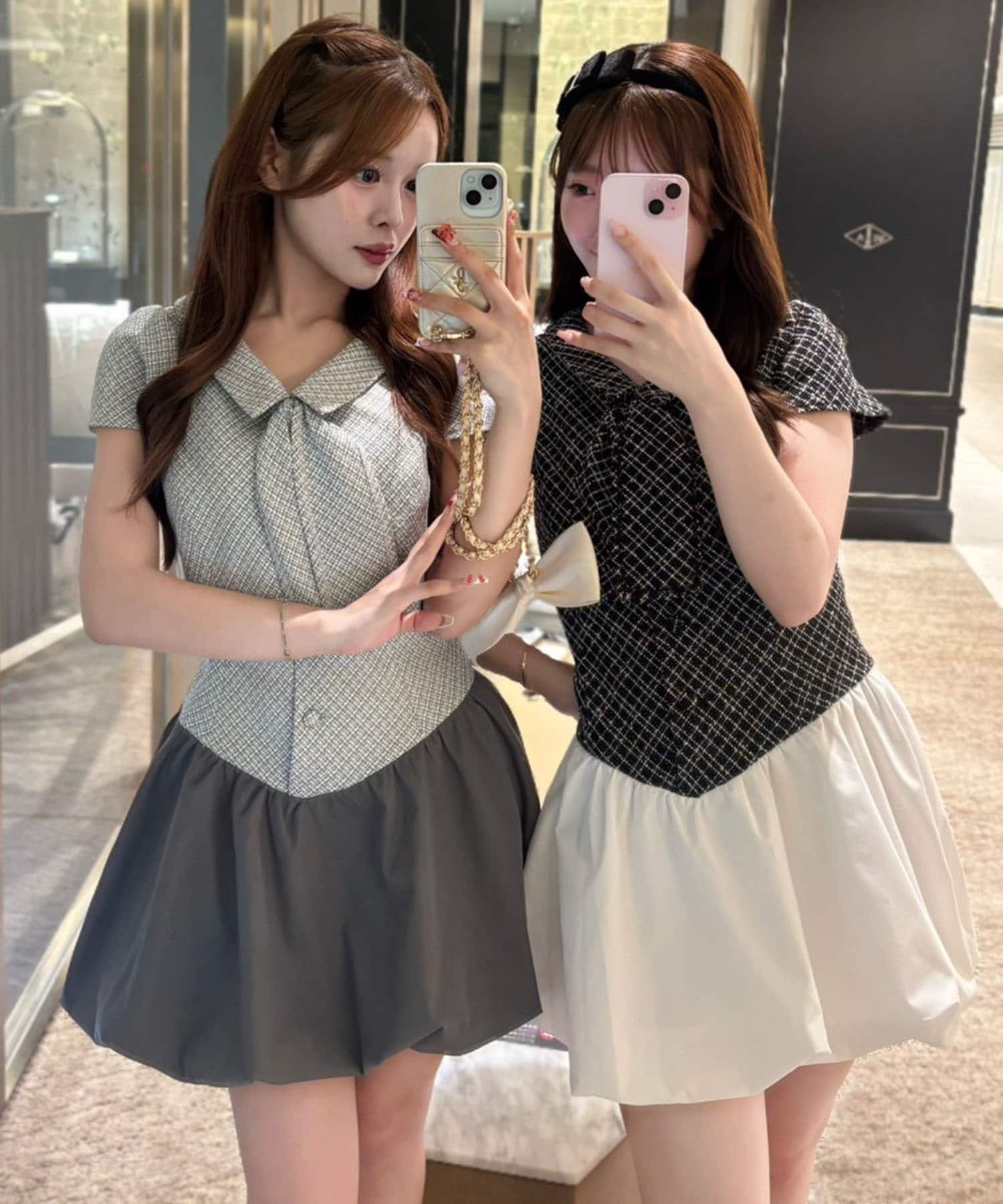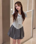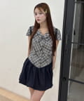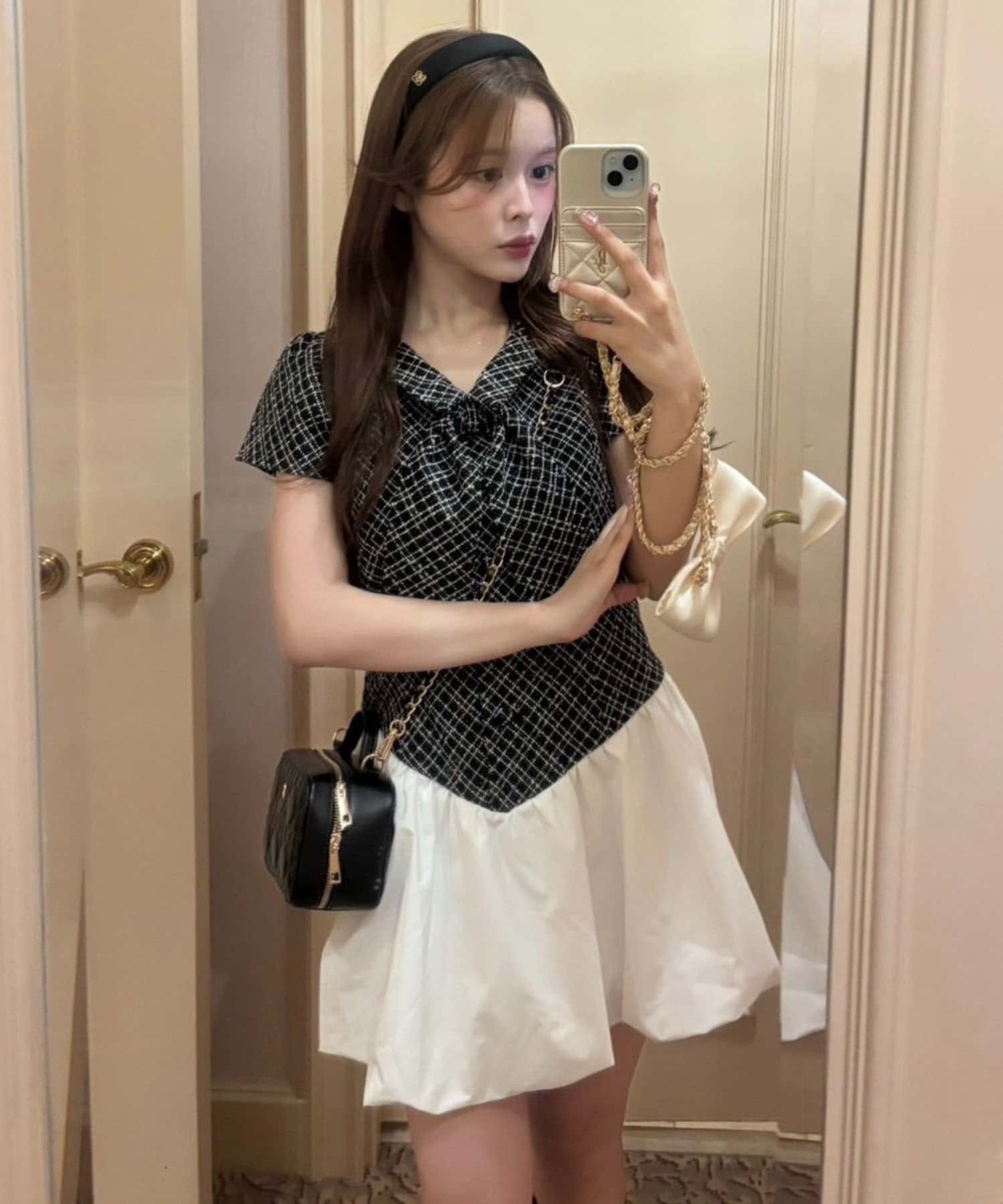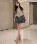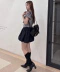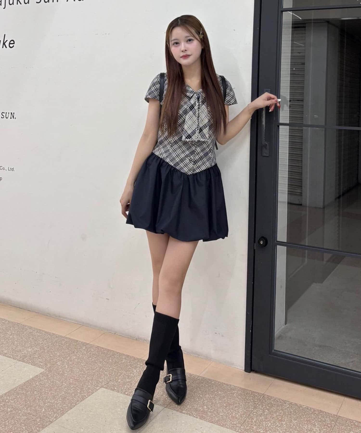 スカート部分はふんわりとしたバルーンシルエットで、気になるヒップラインをカバーしつつ、フェミニンな印象をプラス。