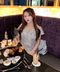 きちんと感のある襟デザインが、顔周りを華やかに見せてくれます。