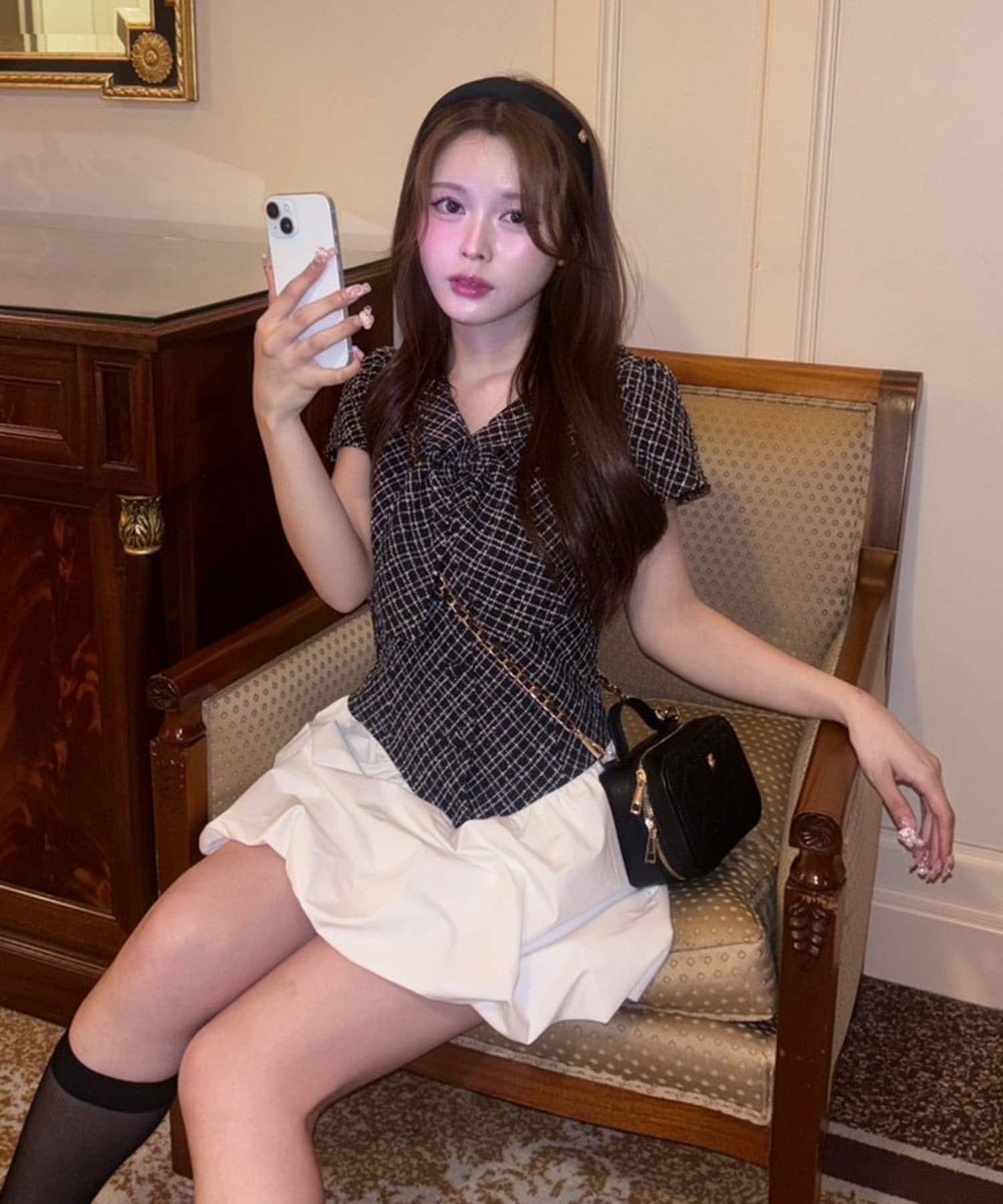 上品なツイード生地で仕立てた、レディライクなミニワンピース。