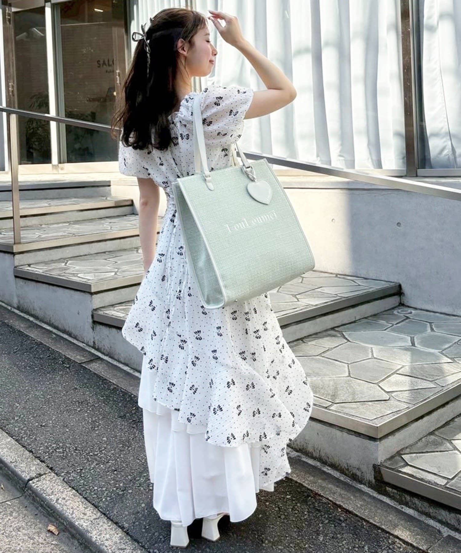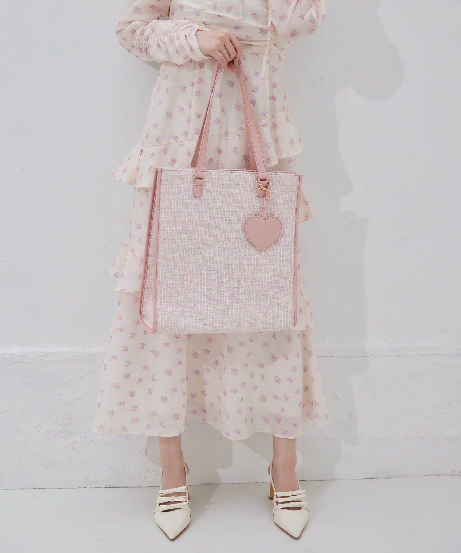 【LouLoumei】/ハートチャーム付きトートバッグ/自立可能