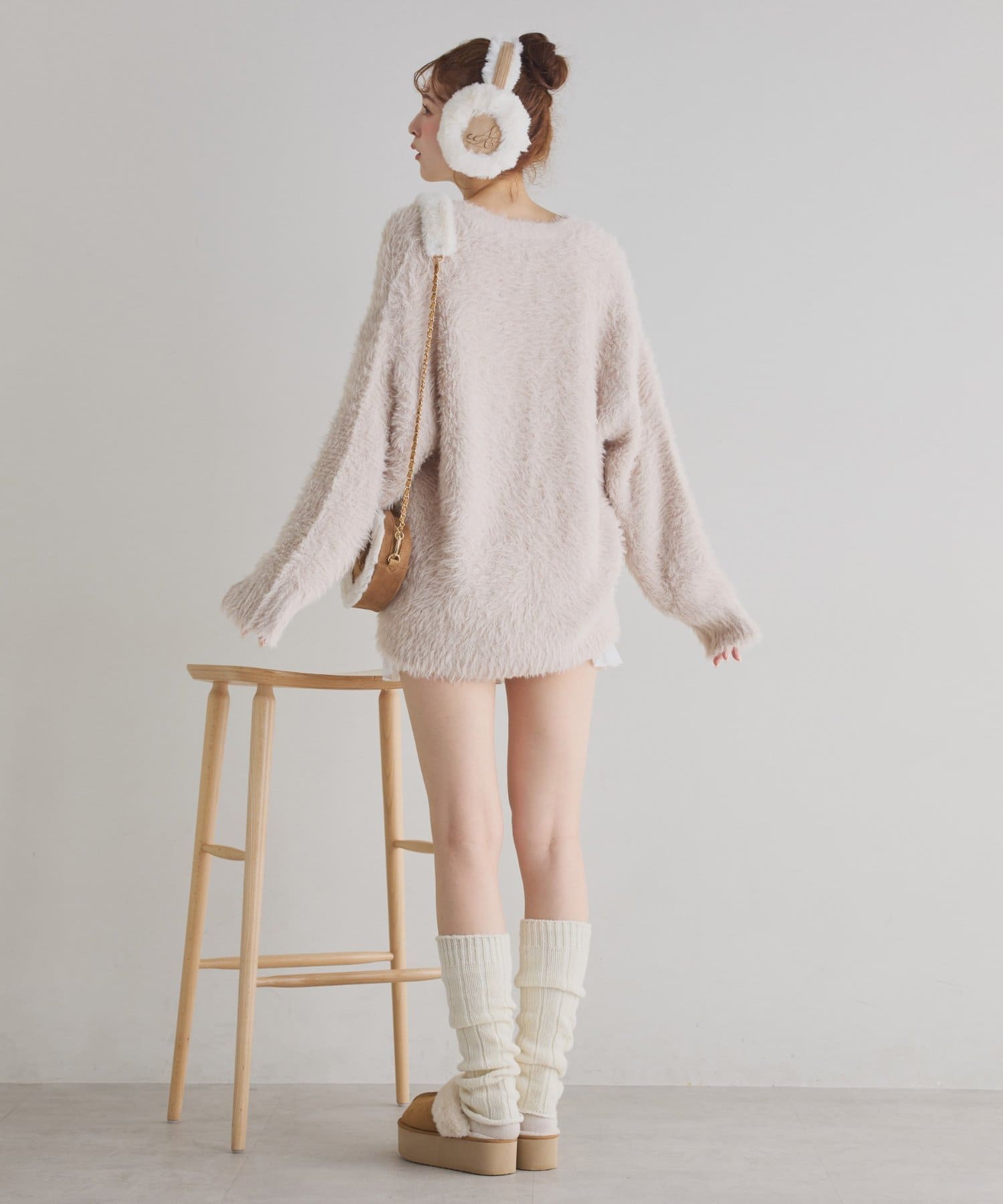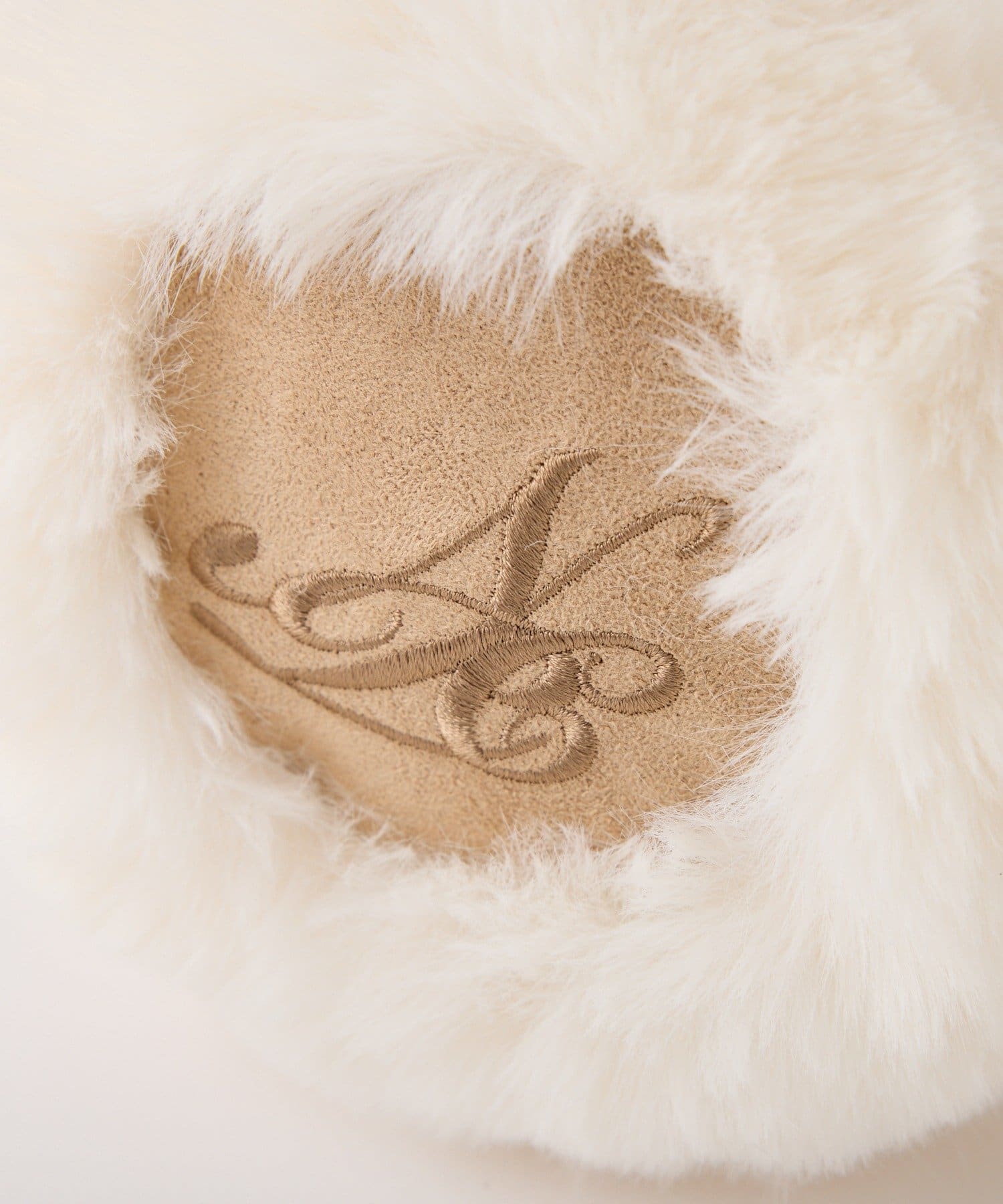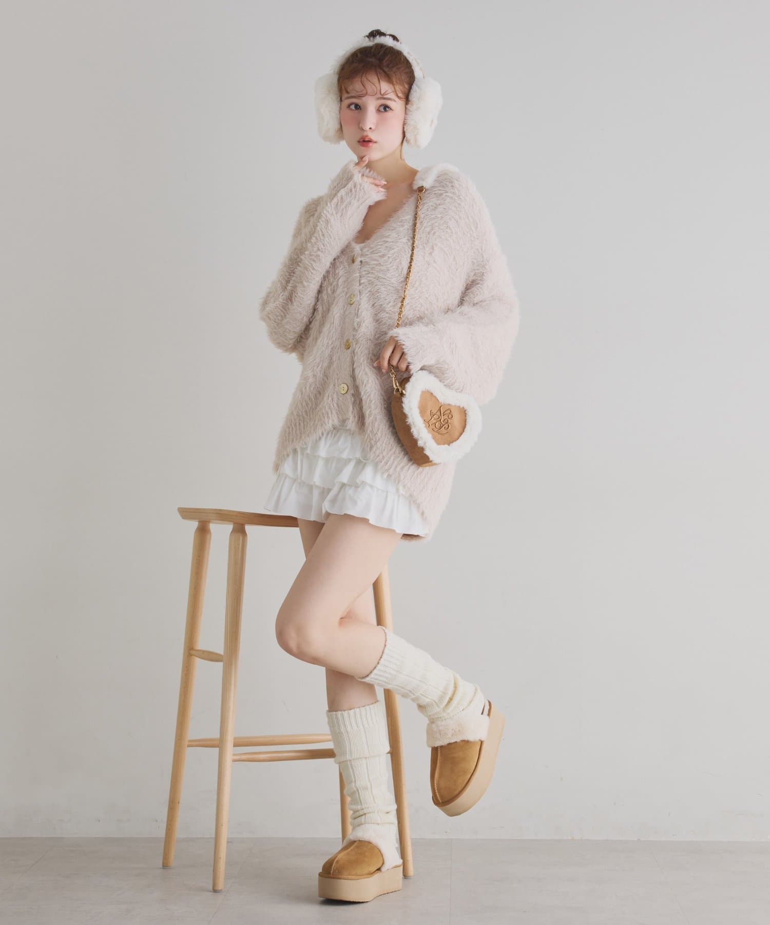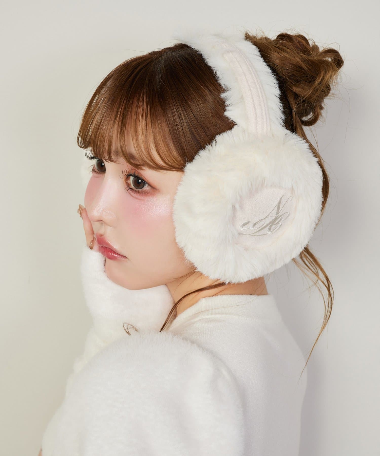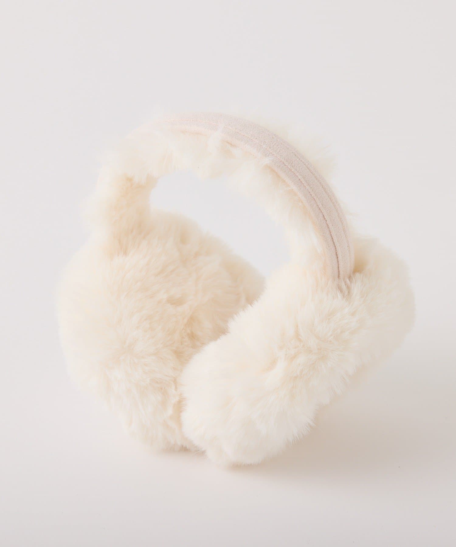 ふわふわの素材感が可愛いフェイクムートンイヤーマフラー。