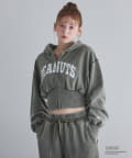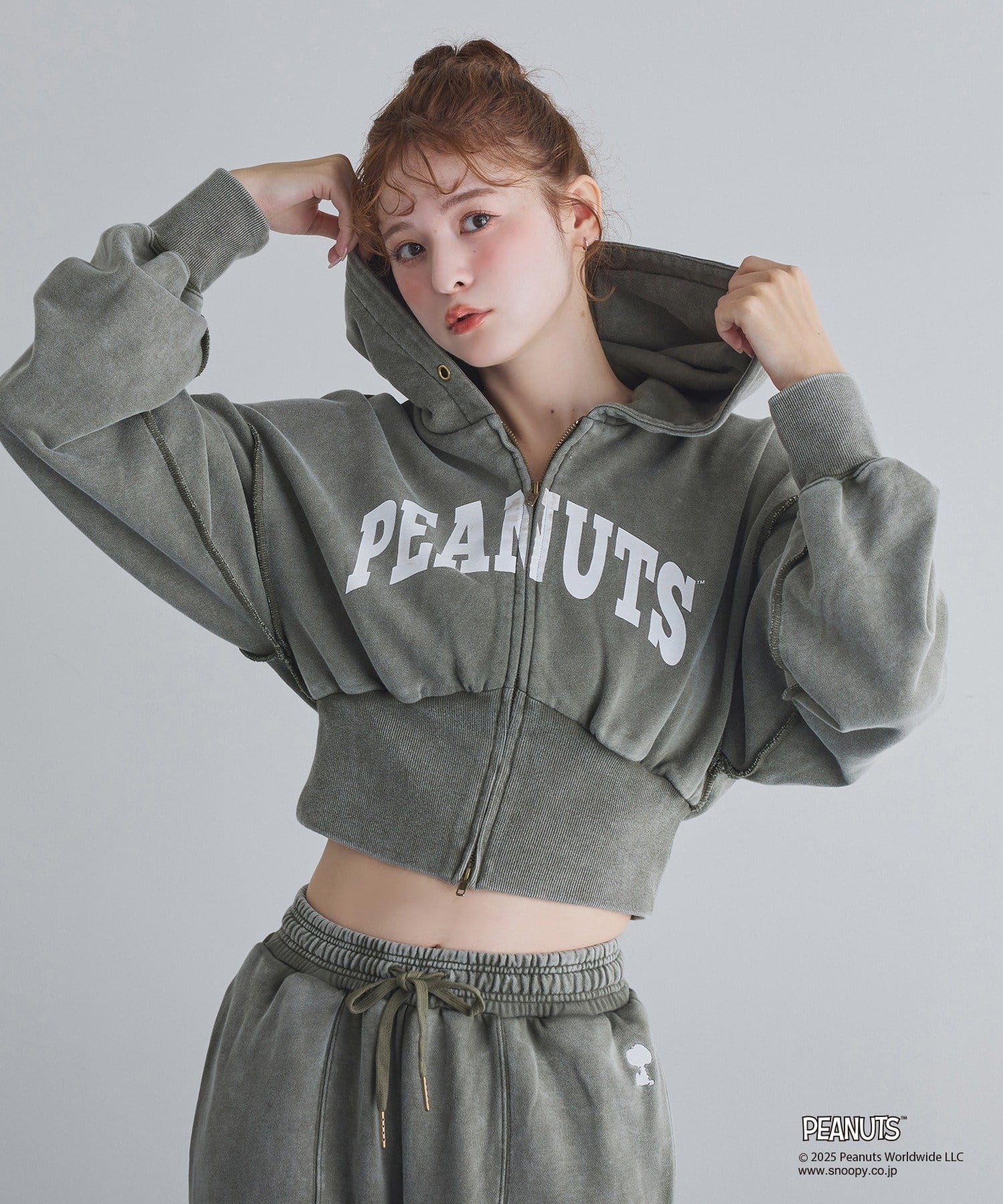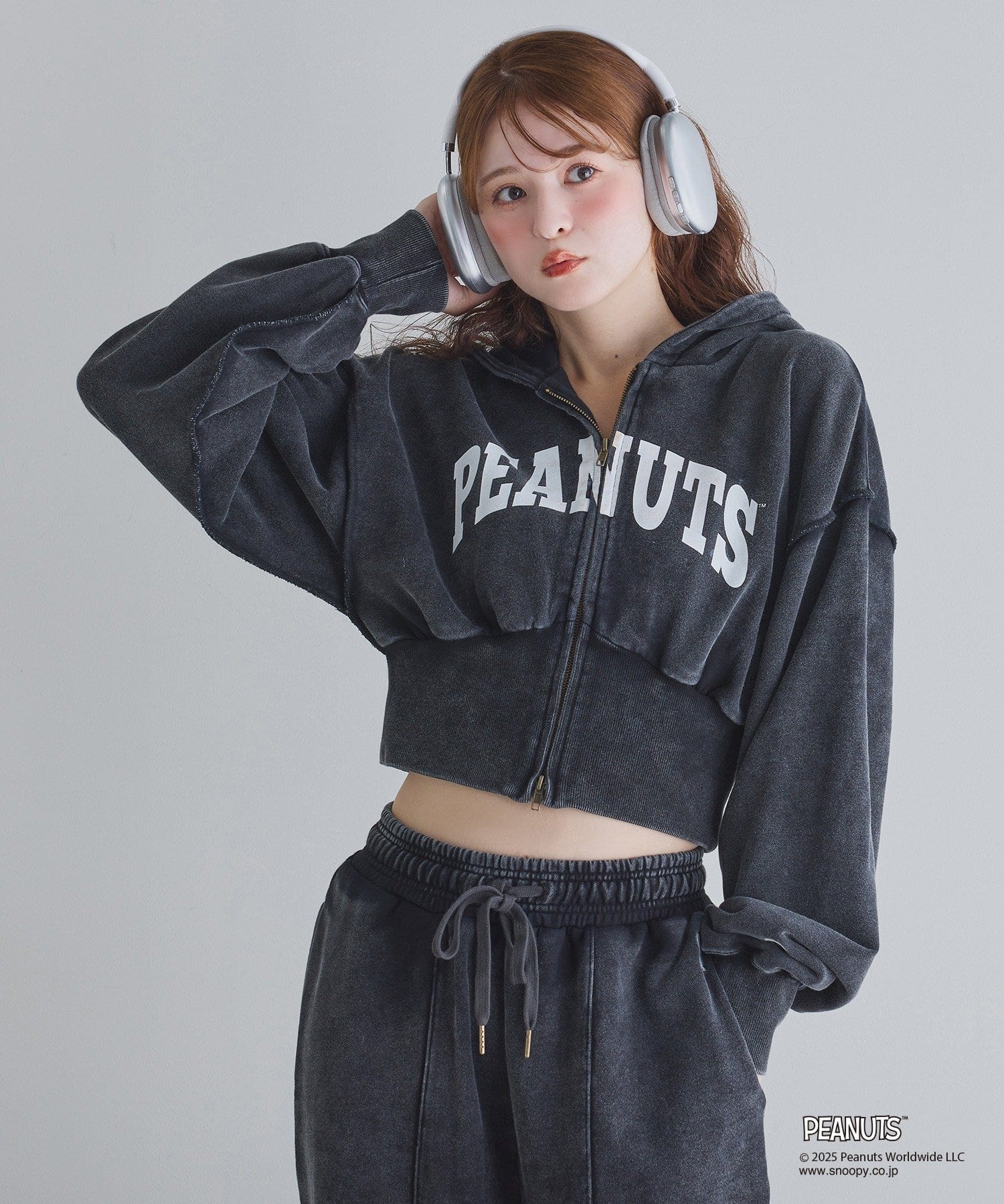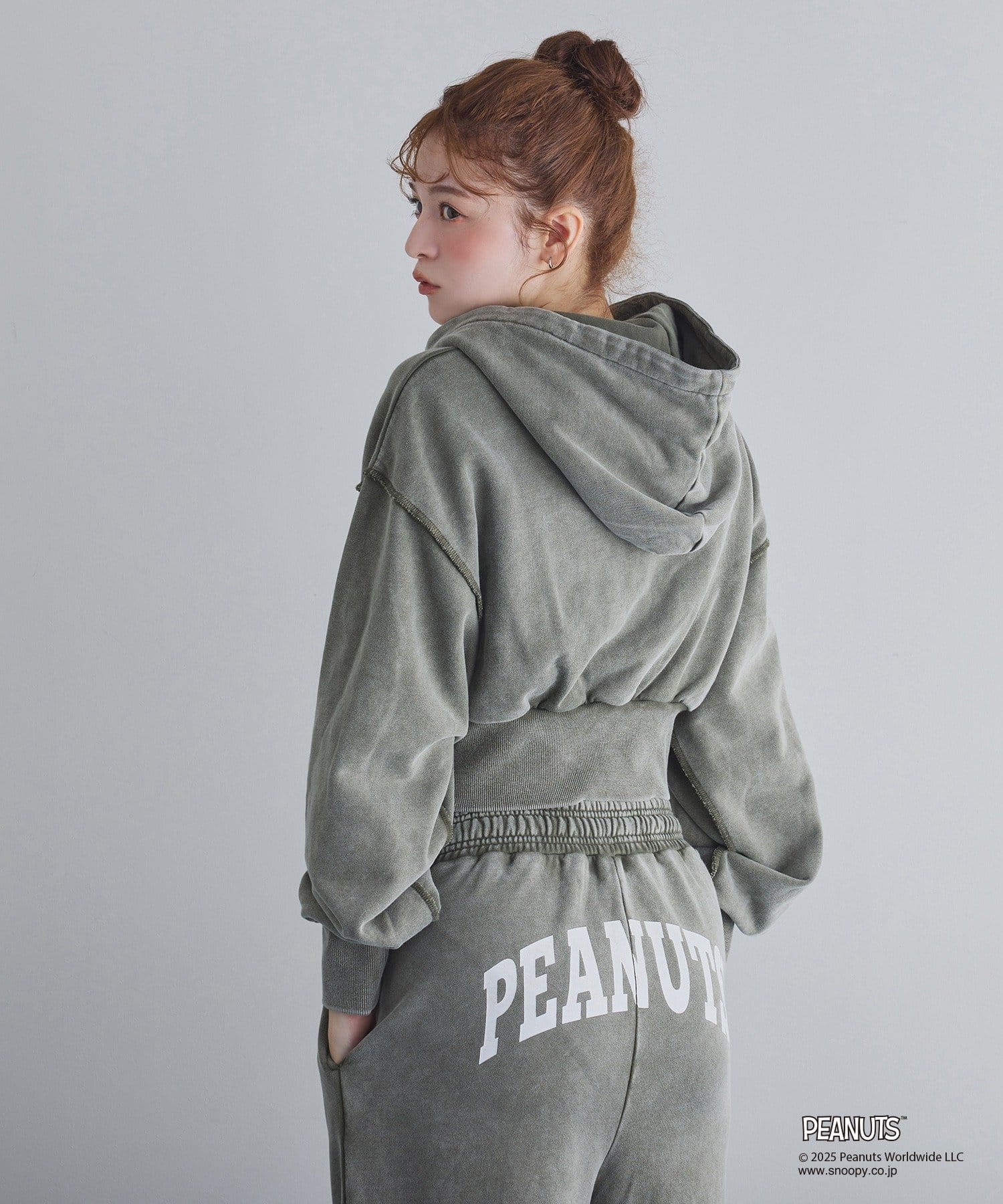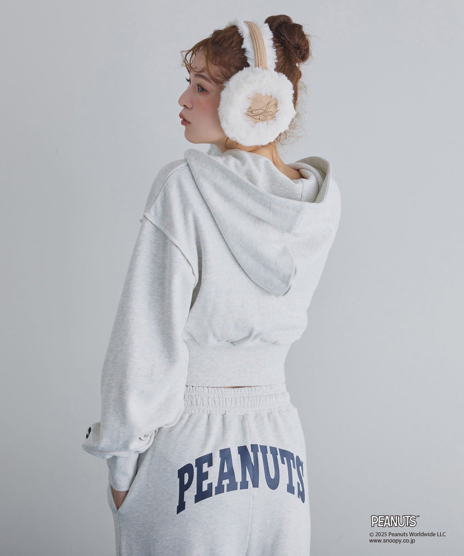 バックデザインにはPEANUTSのロゴプリント入りで後ろ姿までアクセントを持たせてくれます。