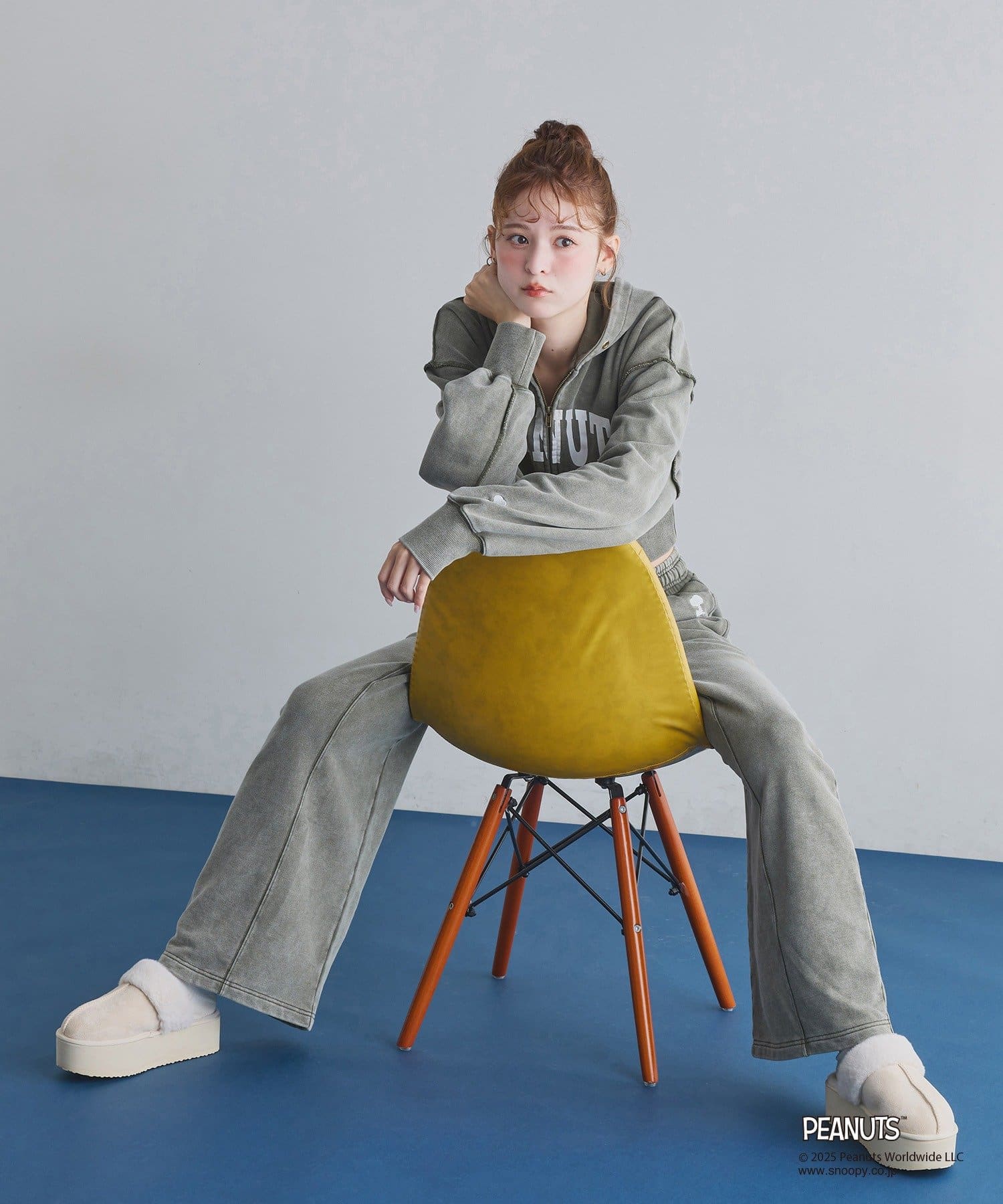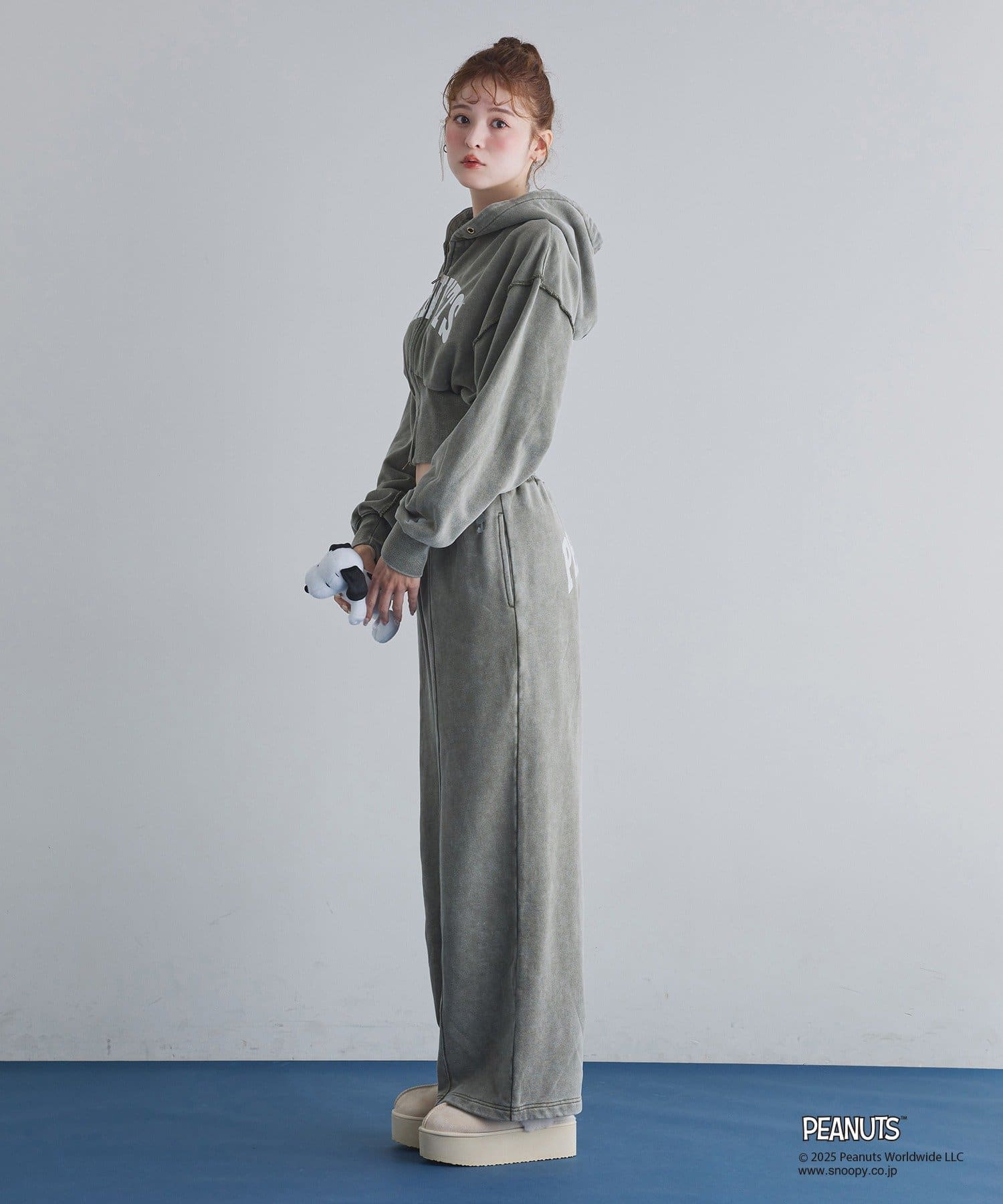 one after another NICE CLAUP(ワンアフターアナザー ナイスクラップ) 【PEANUTSコラボ】スヌーピー刺繍入りスウェットパンツ