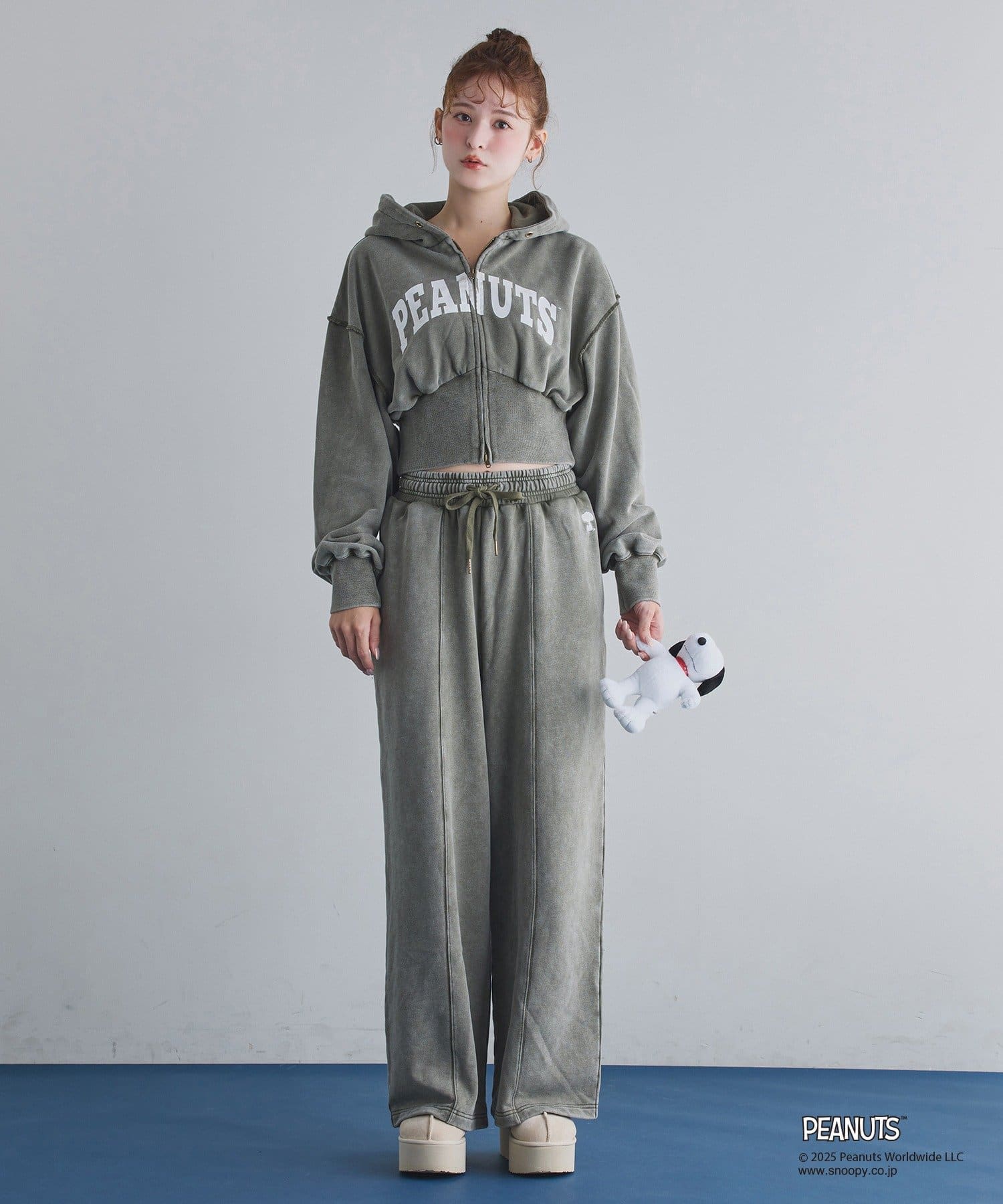 【PEANUTSコラボ】スヌーピー刺繍入りスウェットパンツ