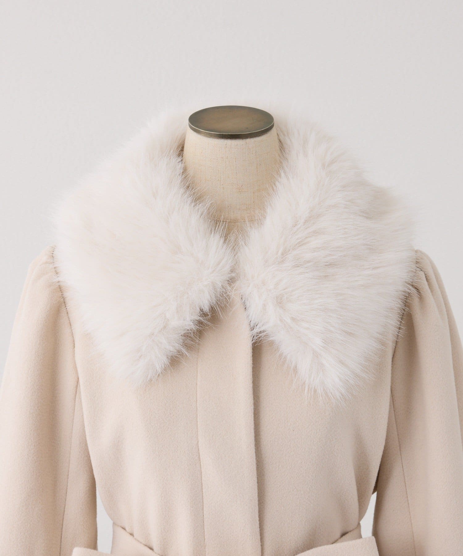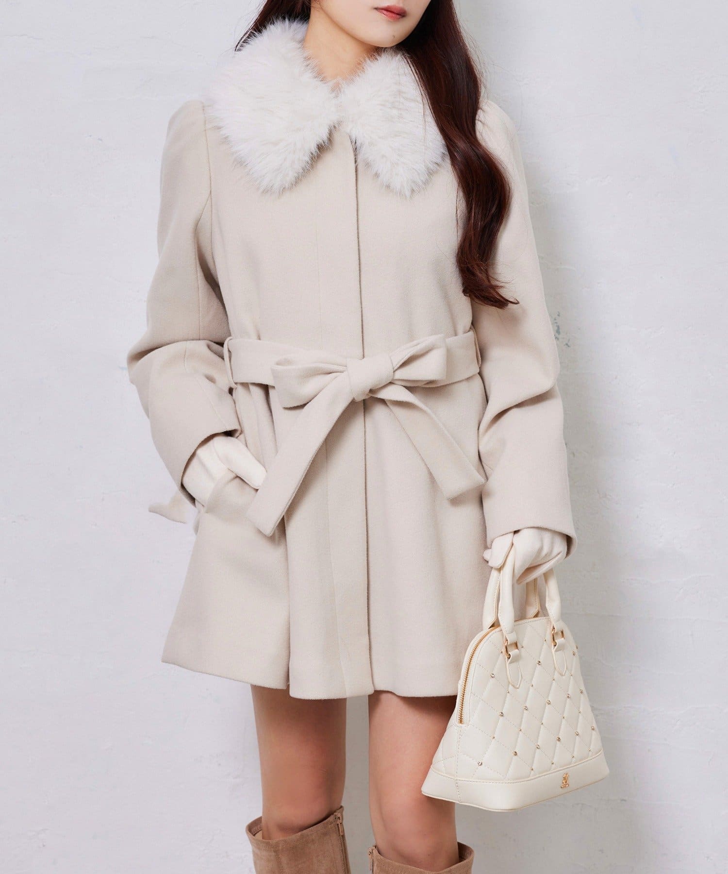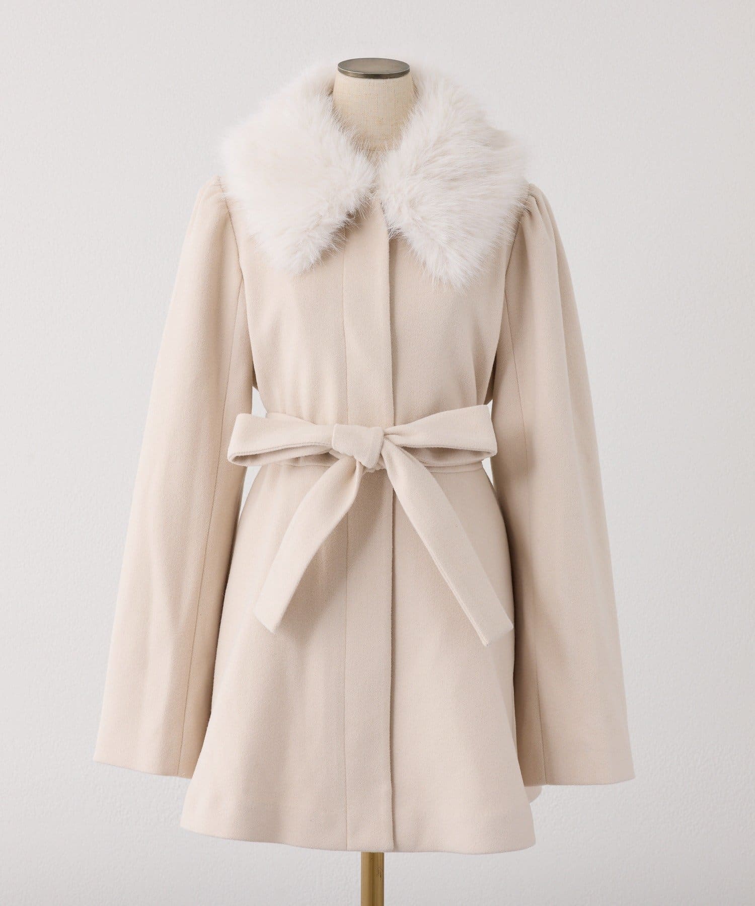 ファー襟ミドルコートを羽織って、上品で華やかな令嬢コーデに