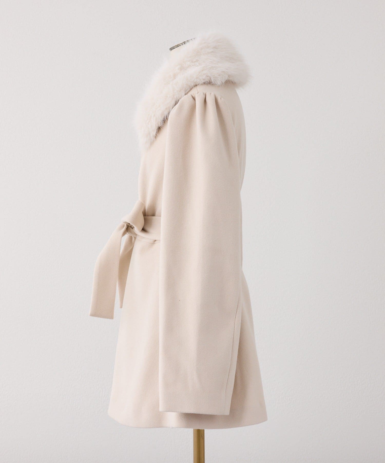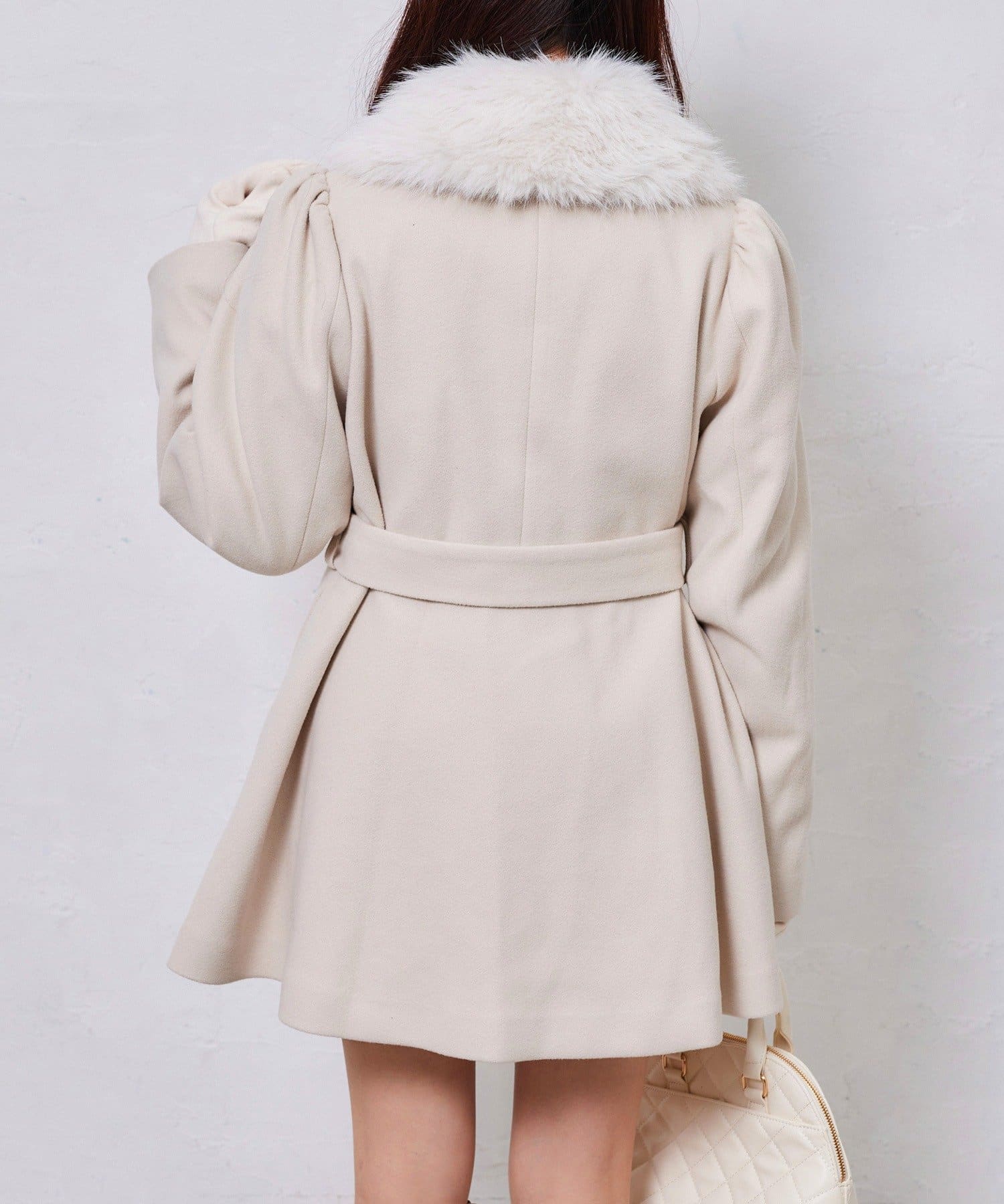 サイズ - FREE ・襟ファー付きコート(襟ファー取り外し可能)