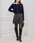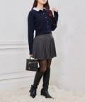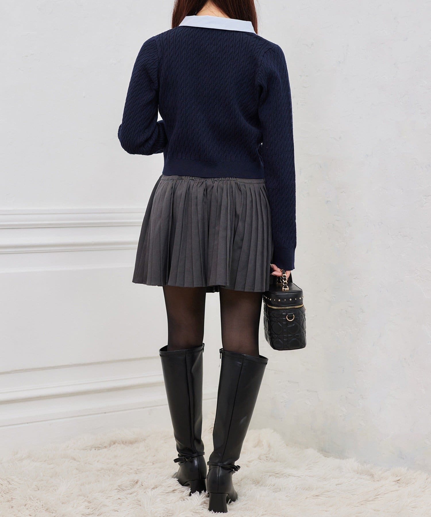 襟レイヤーニット×プリーツスカートで華やかレイヤードスタイルを演出