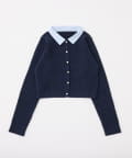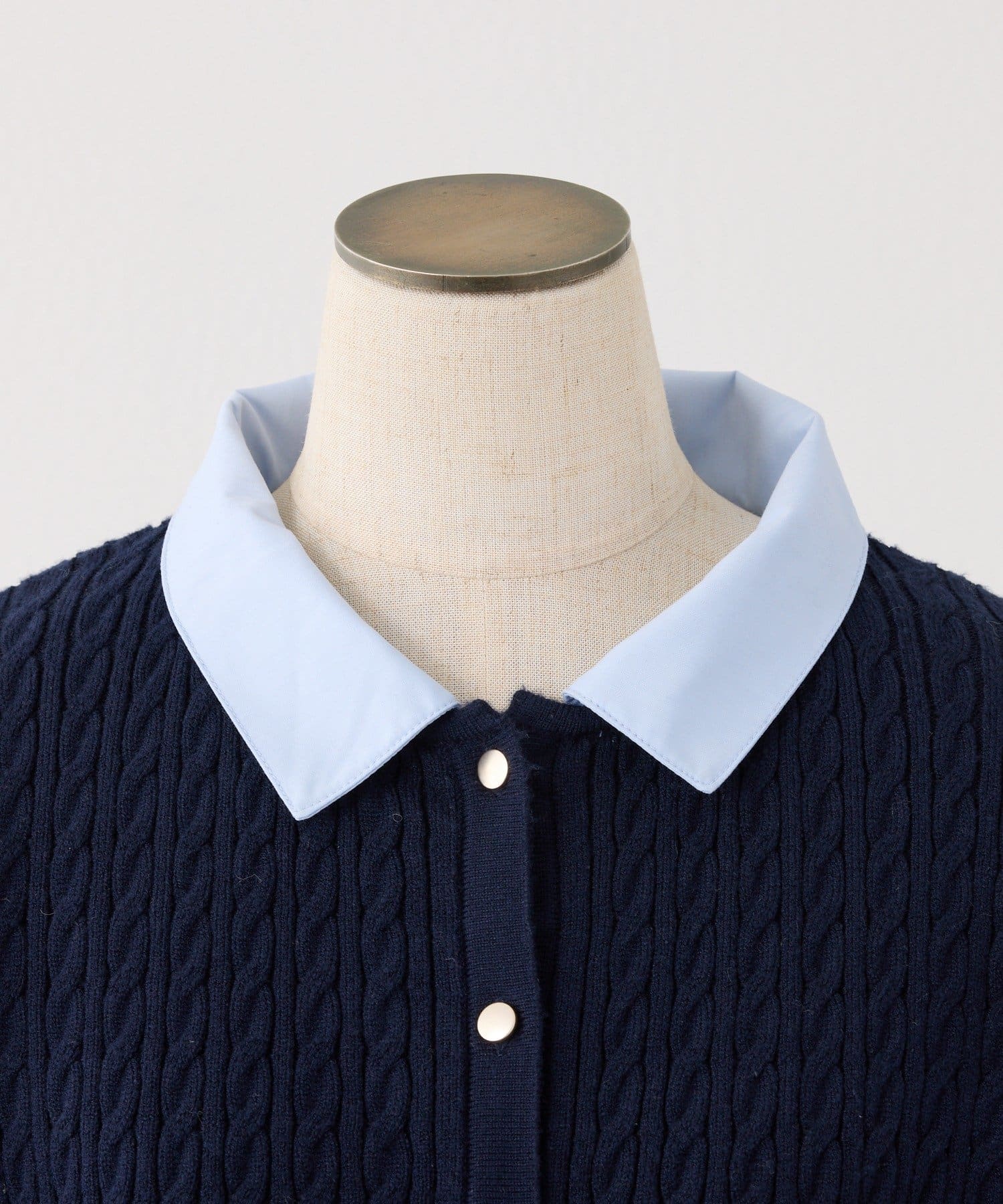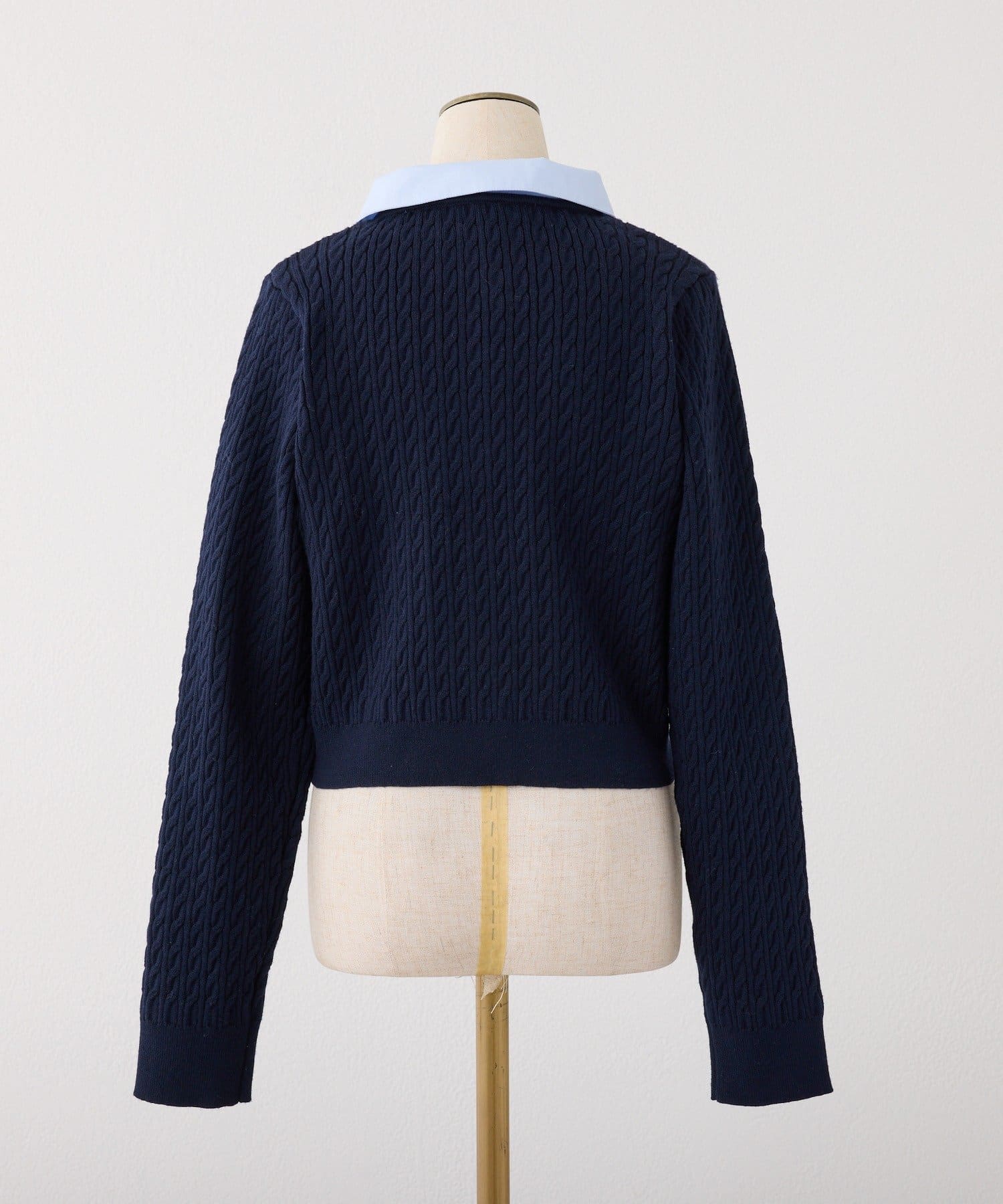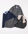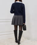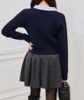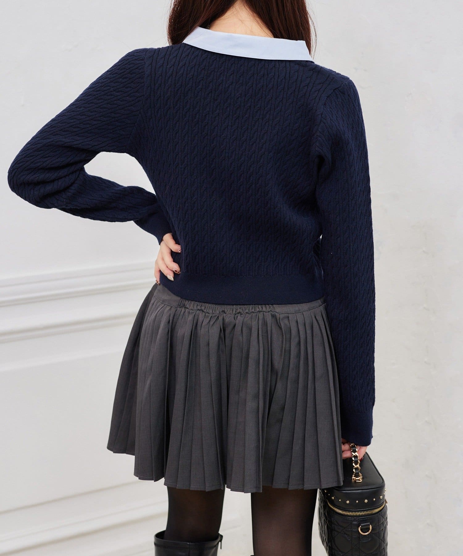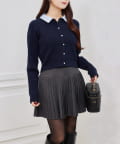 襟付きレイヤーニットとプリーツスカートで、プレッピーなレイヤードスタイルを楽しめます。