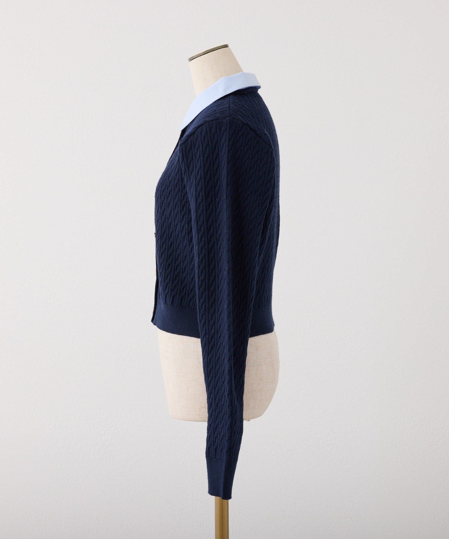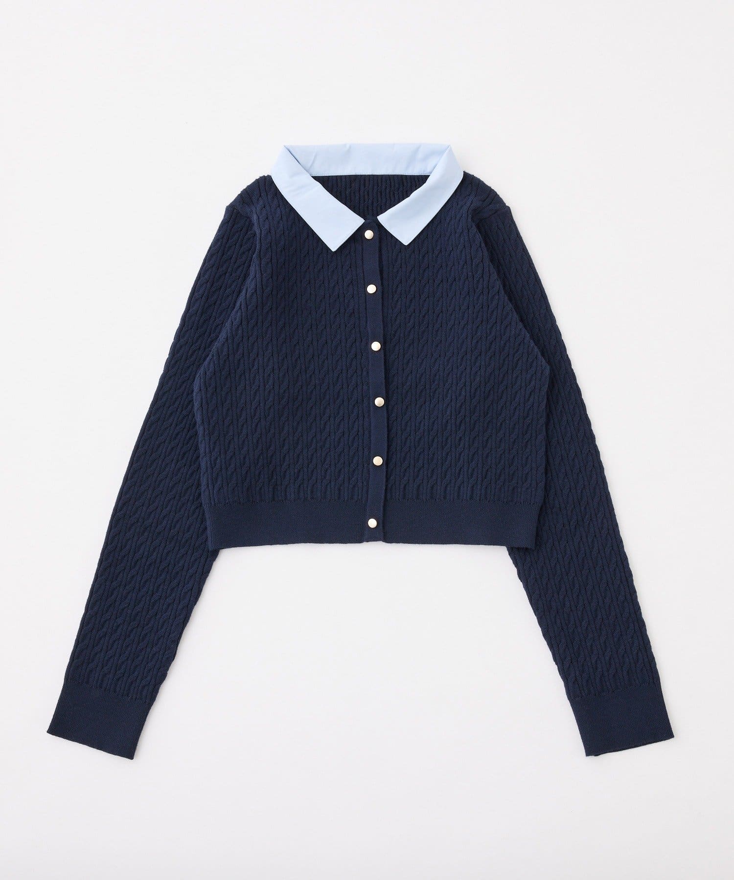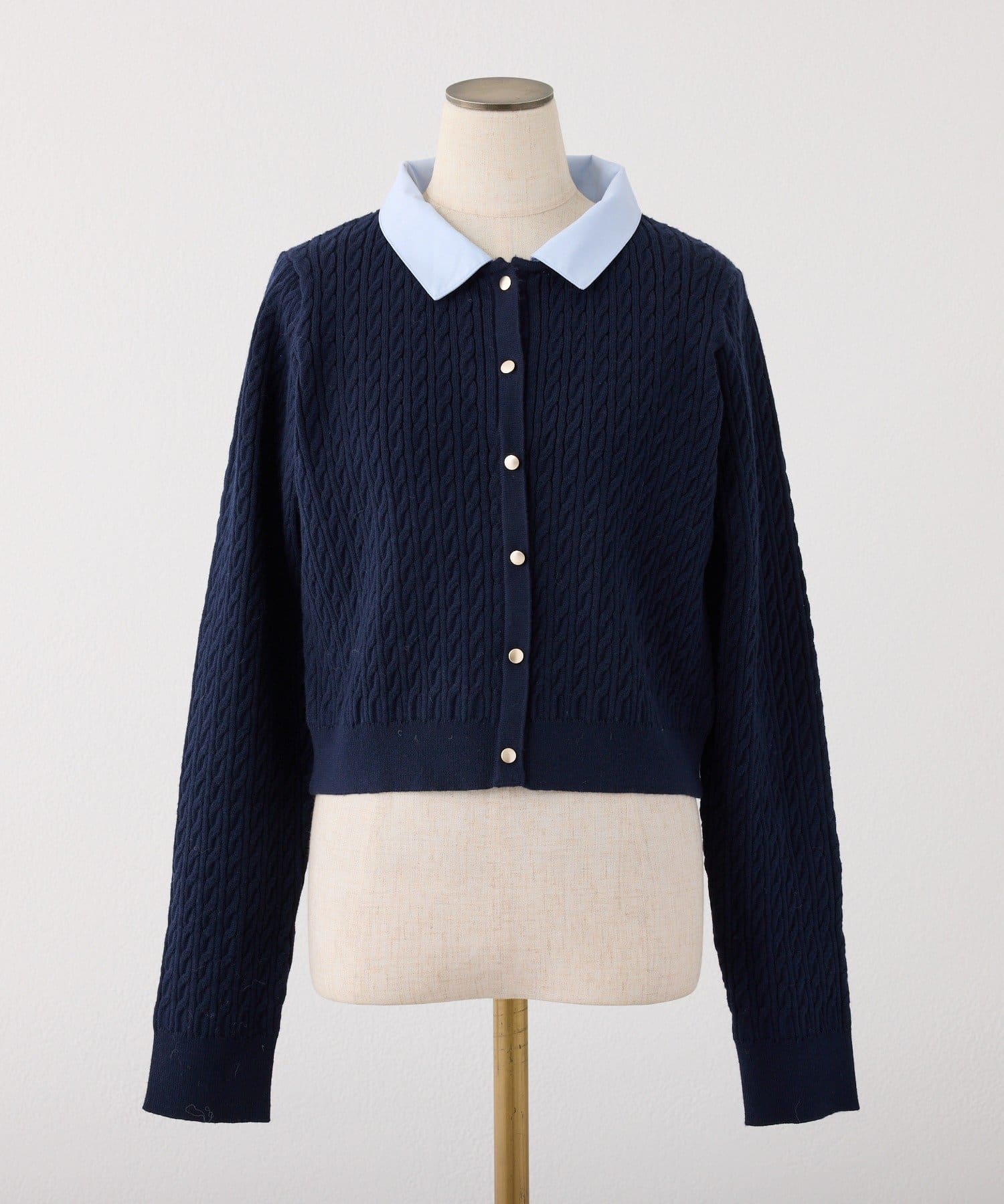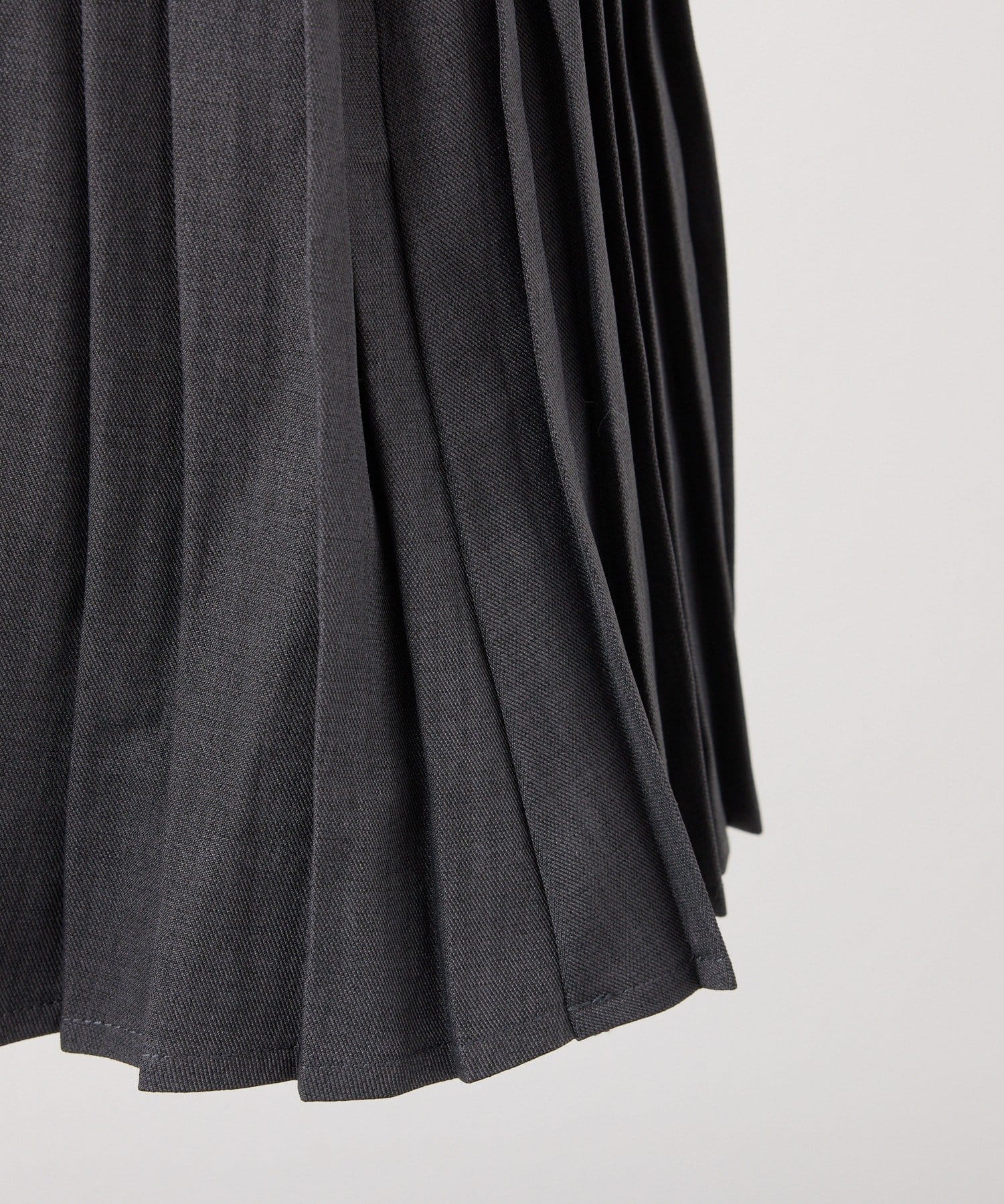襟付きレイヤーニットとプリーツスカートで、プレッピーなレイヤードスタイルを楽しめます。