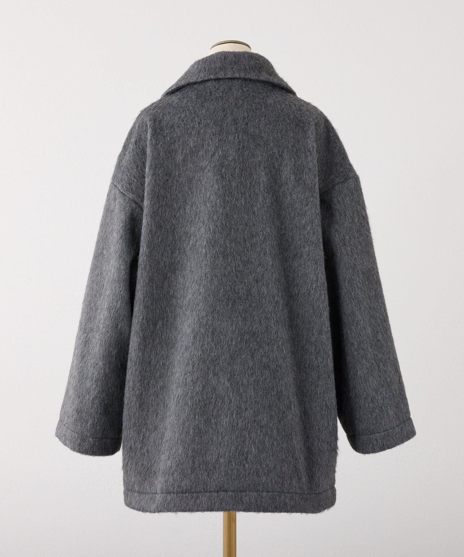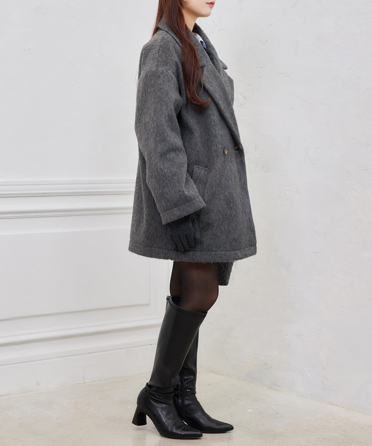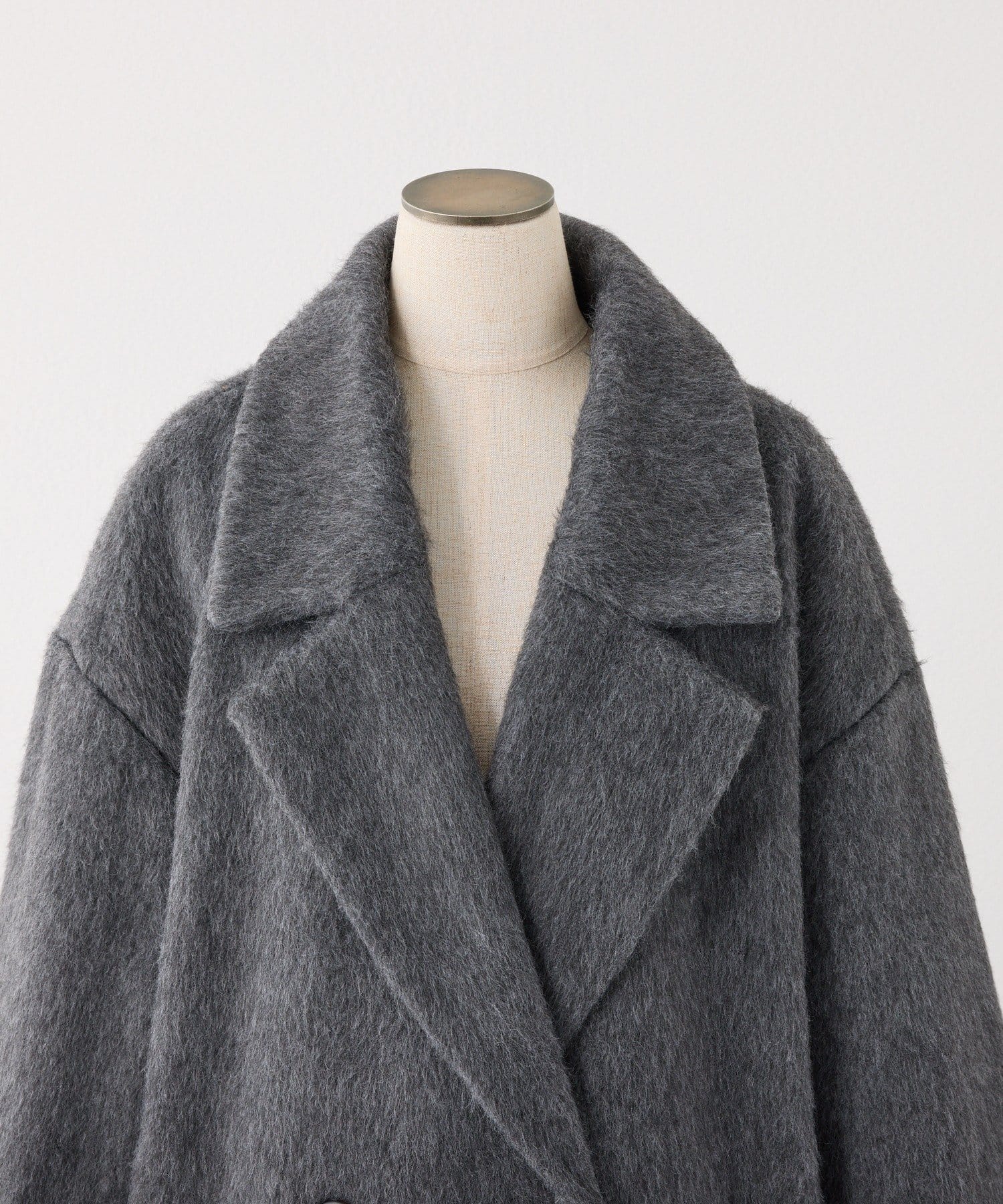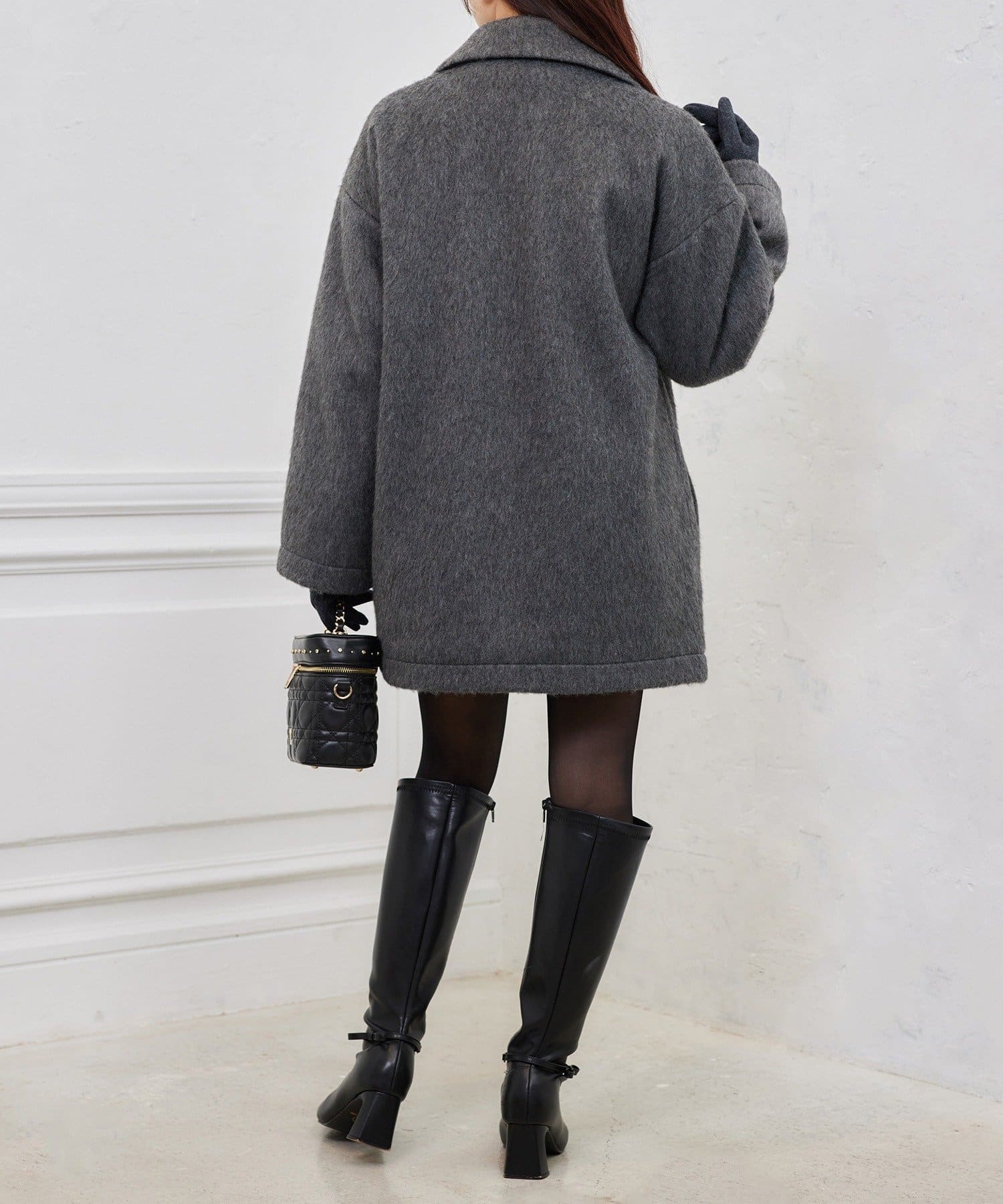 主役のチャコールミドルコートは、柔らかく暖かいシャギー素材で美シルエットを叶えます。