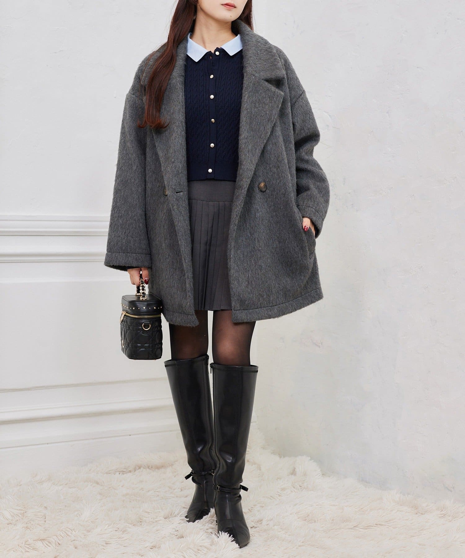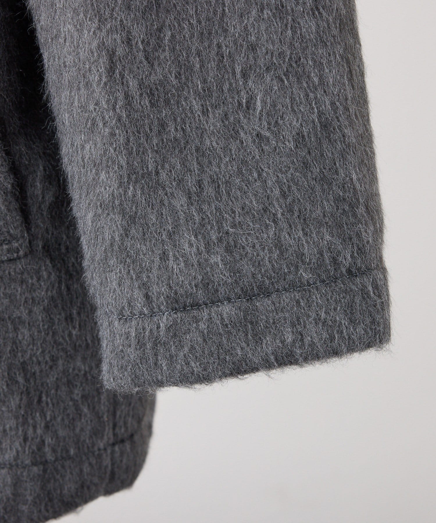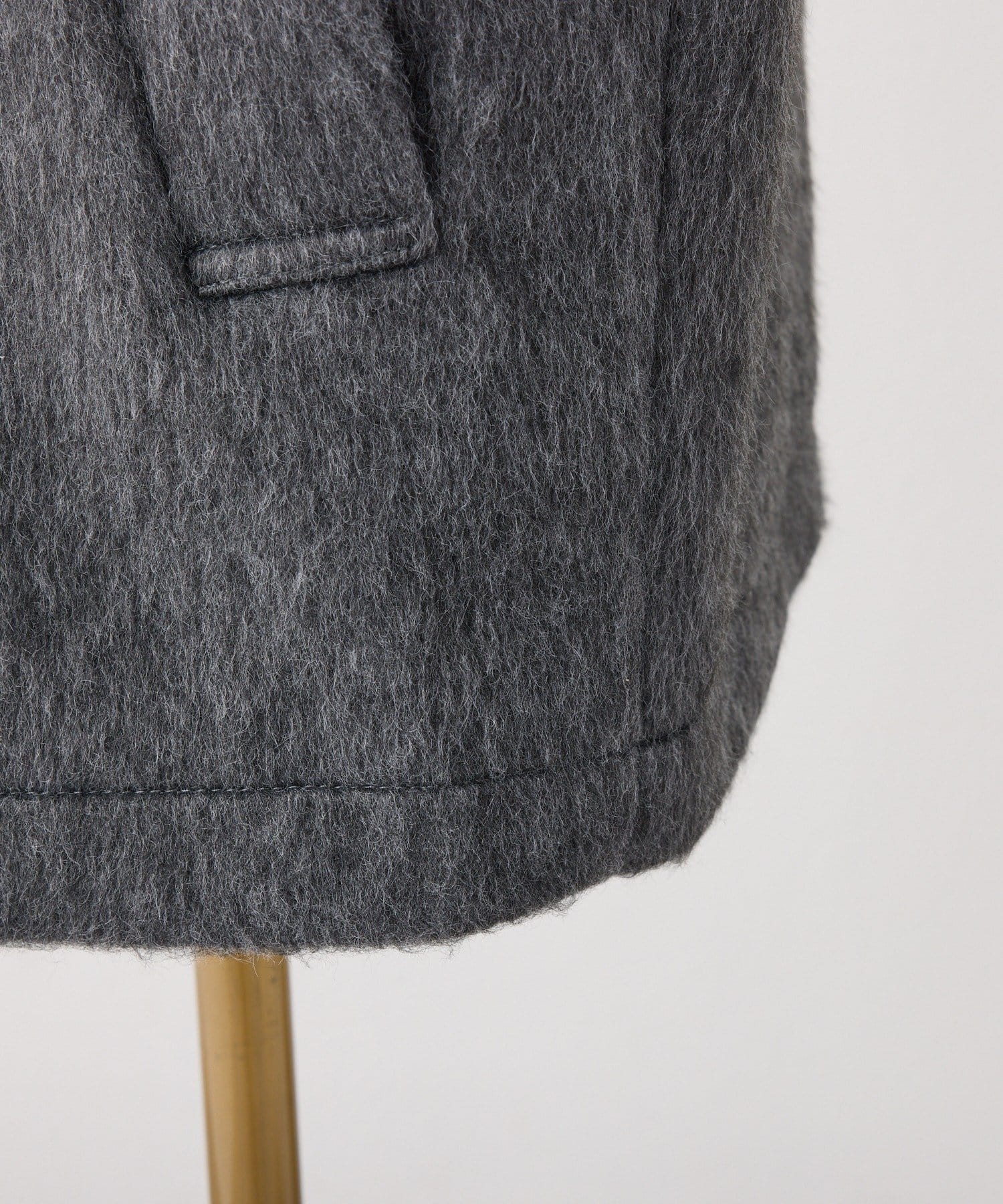 主役のチャコールミドルコートは、柔らかく暖かいシャギー素材で美シルエットを叶えます。