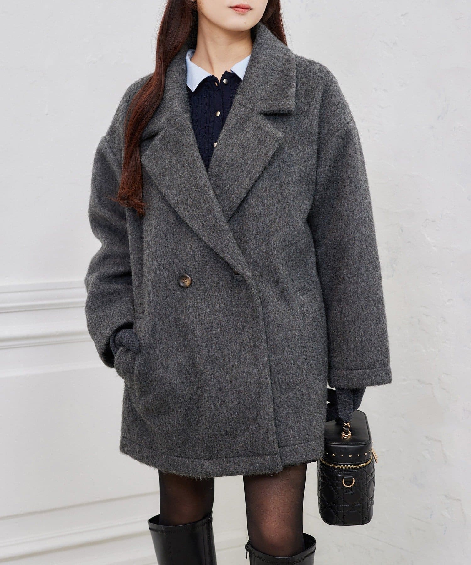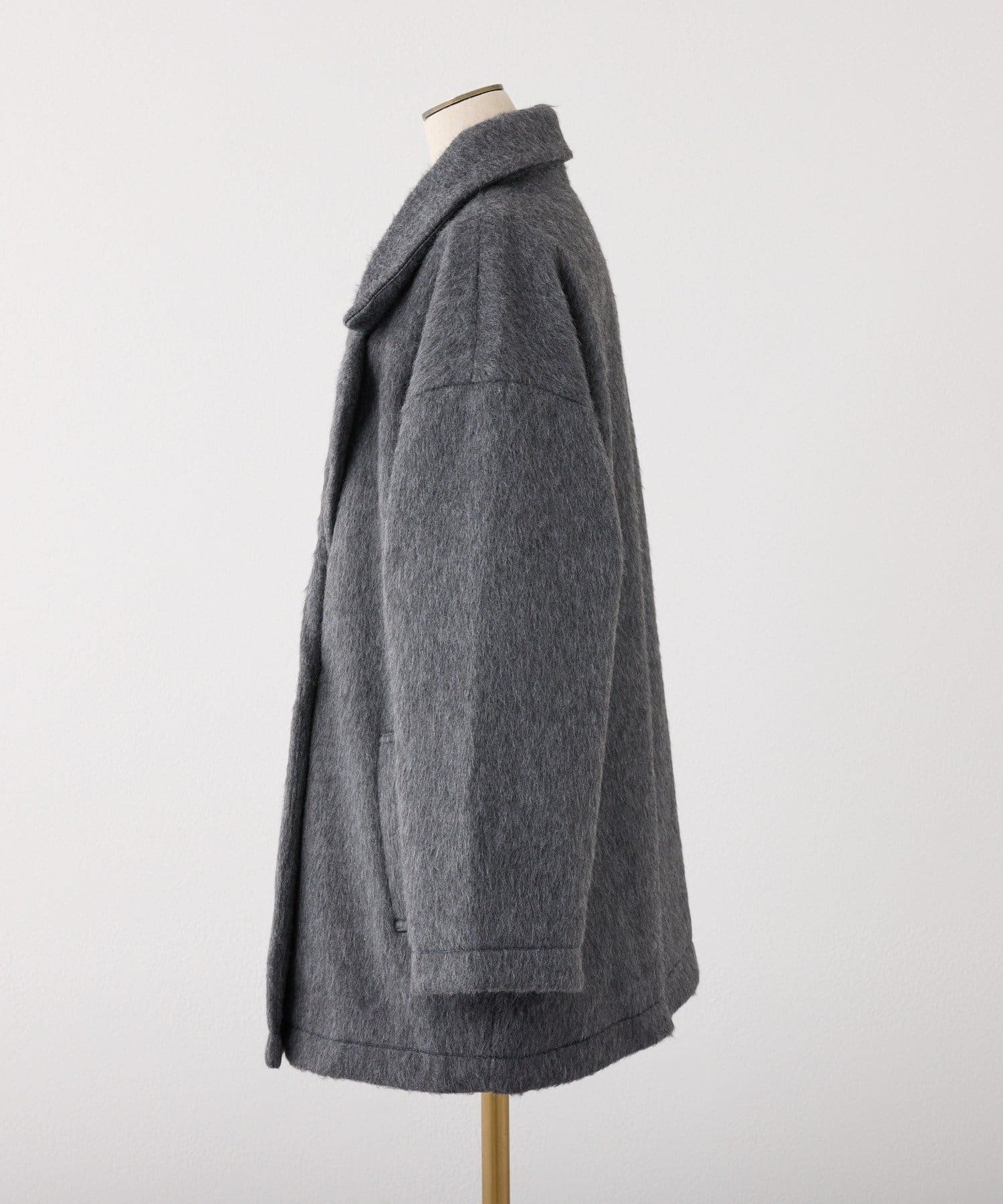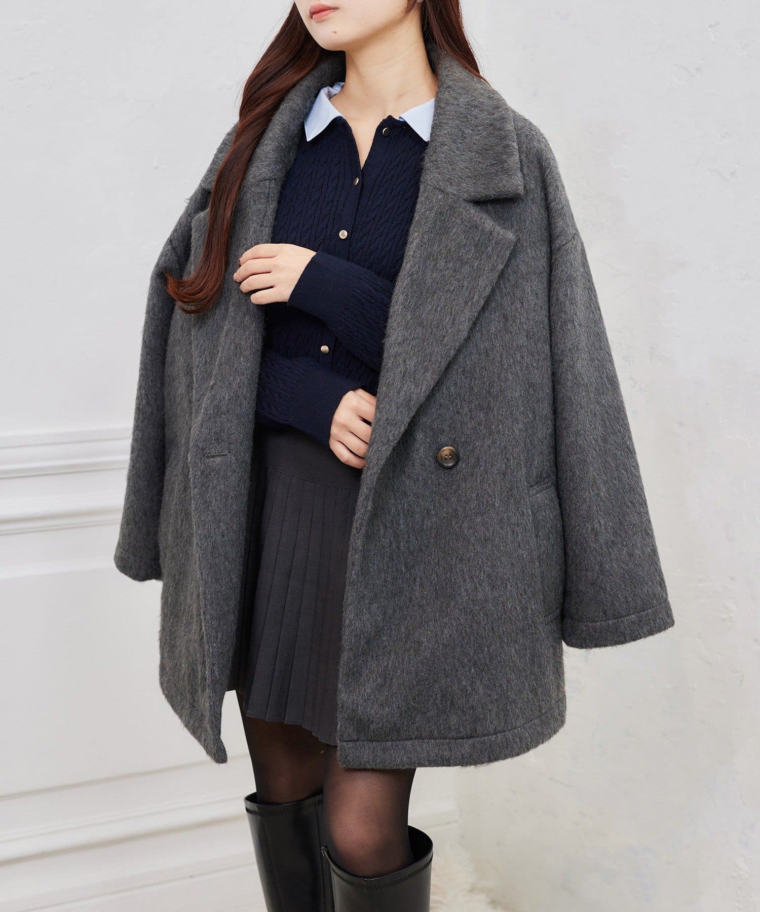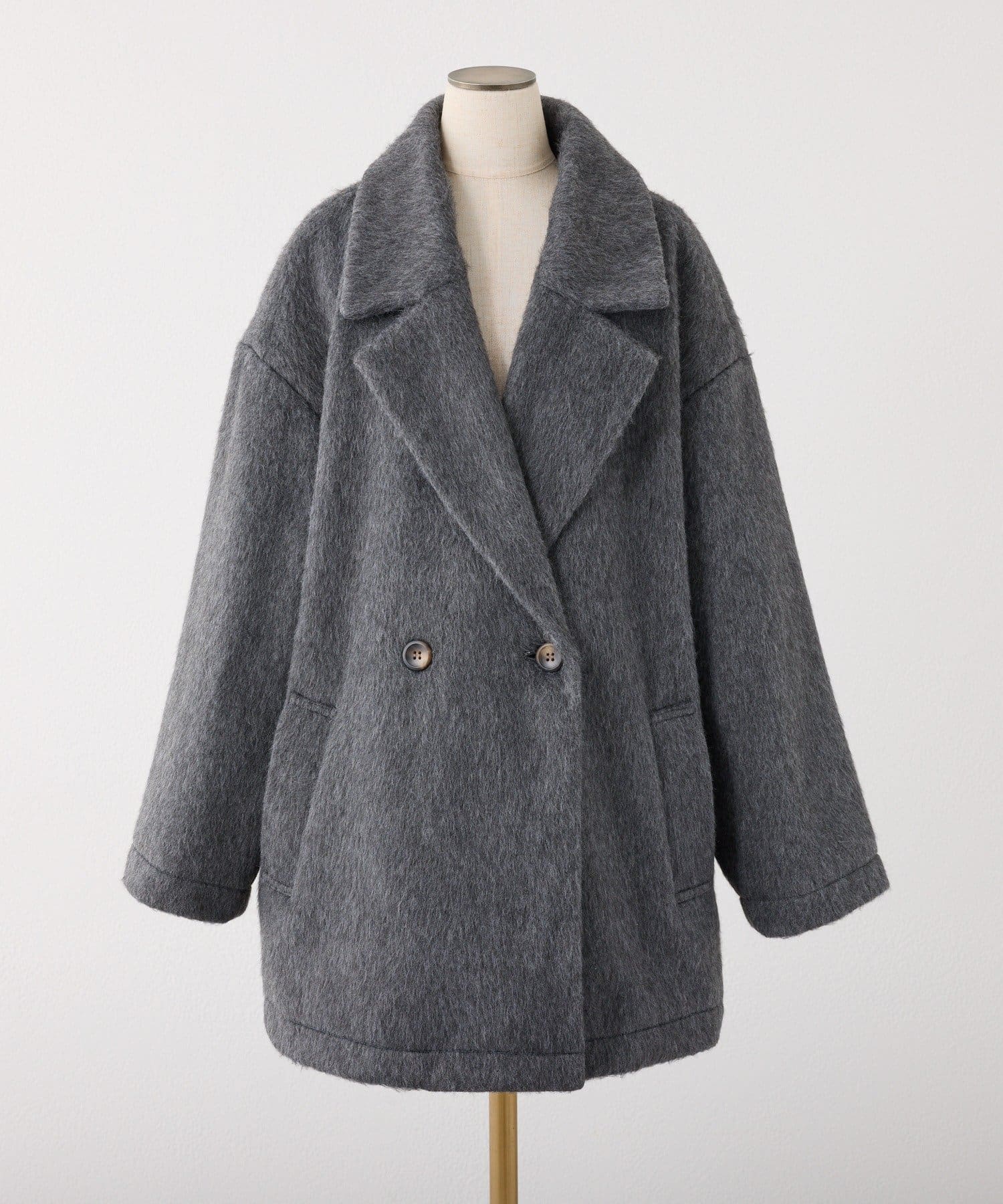 主役のチャコールミドルコートは、柔らかく暖かいシャギー素材で美シルエットを叶えます。
