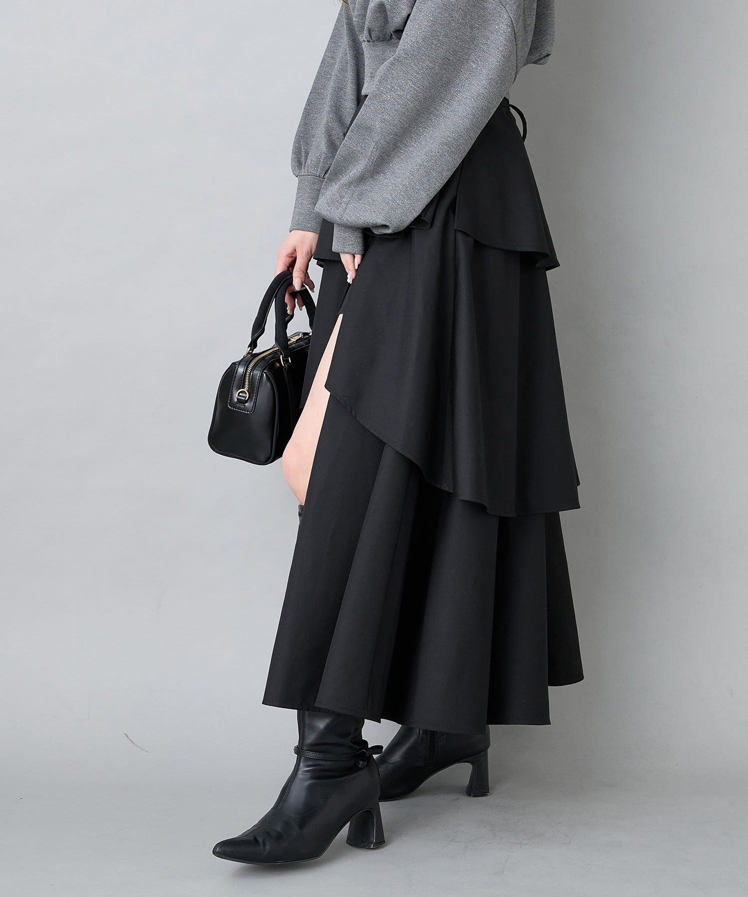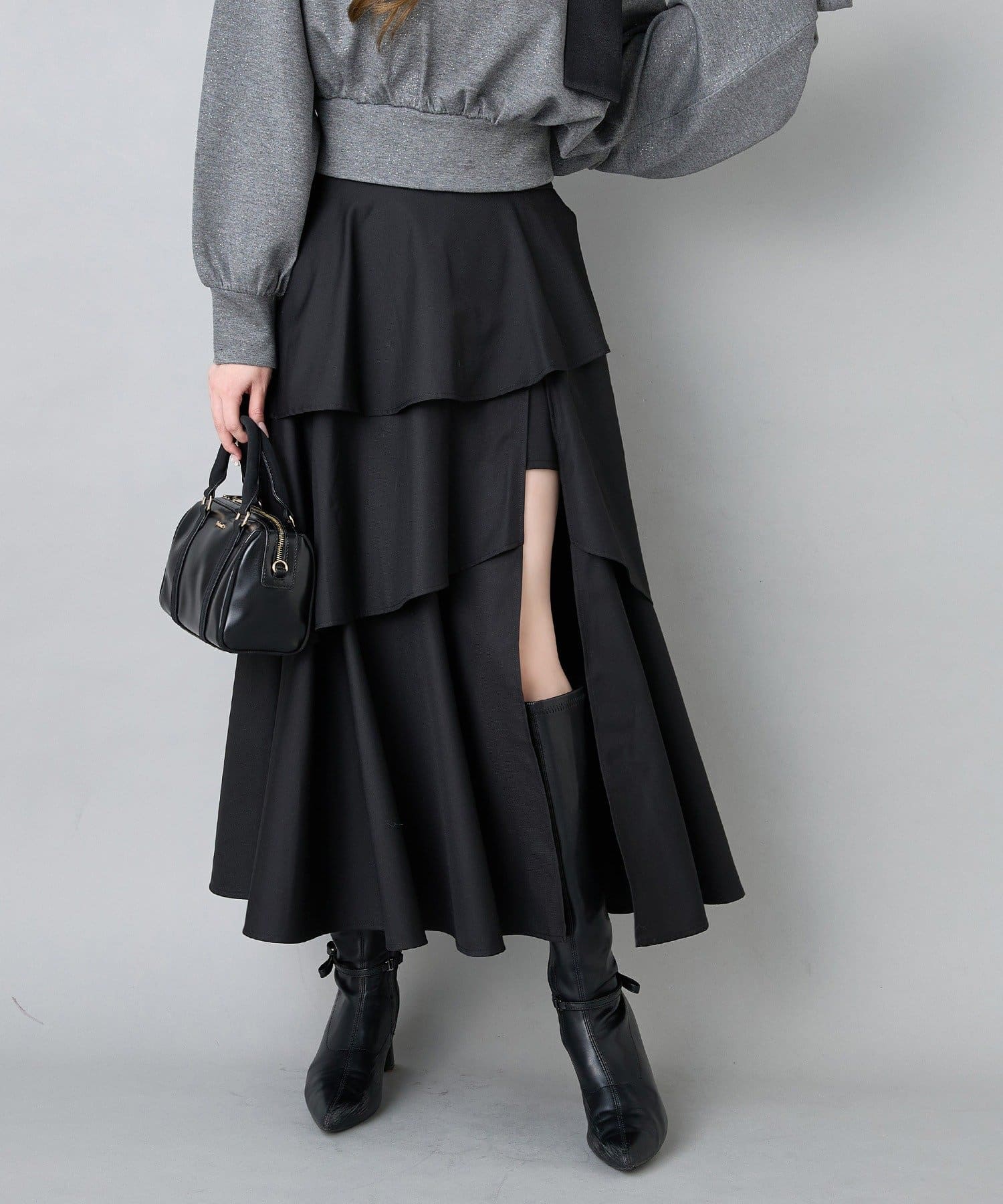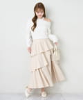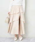 ふんわりとしたティアードシルエットに、フロントスリットをプラスした大人可愛いロングスカート。