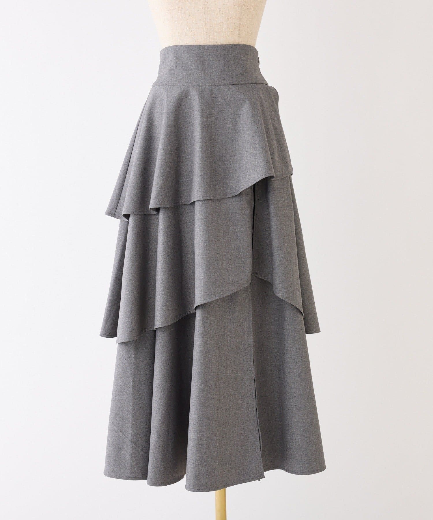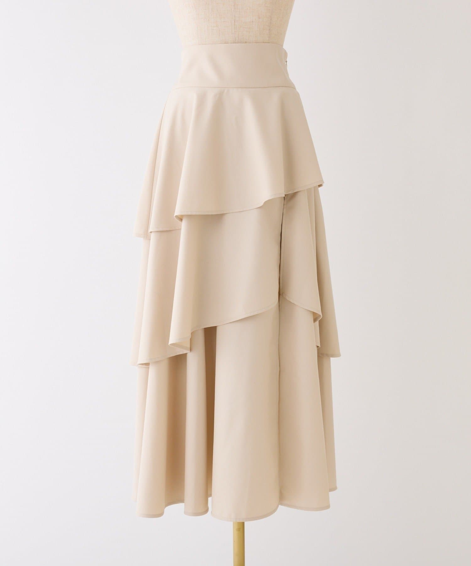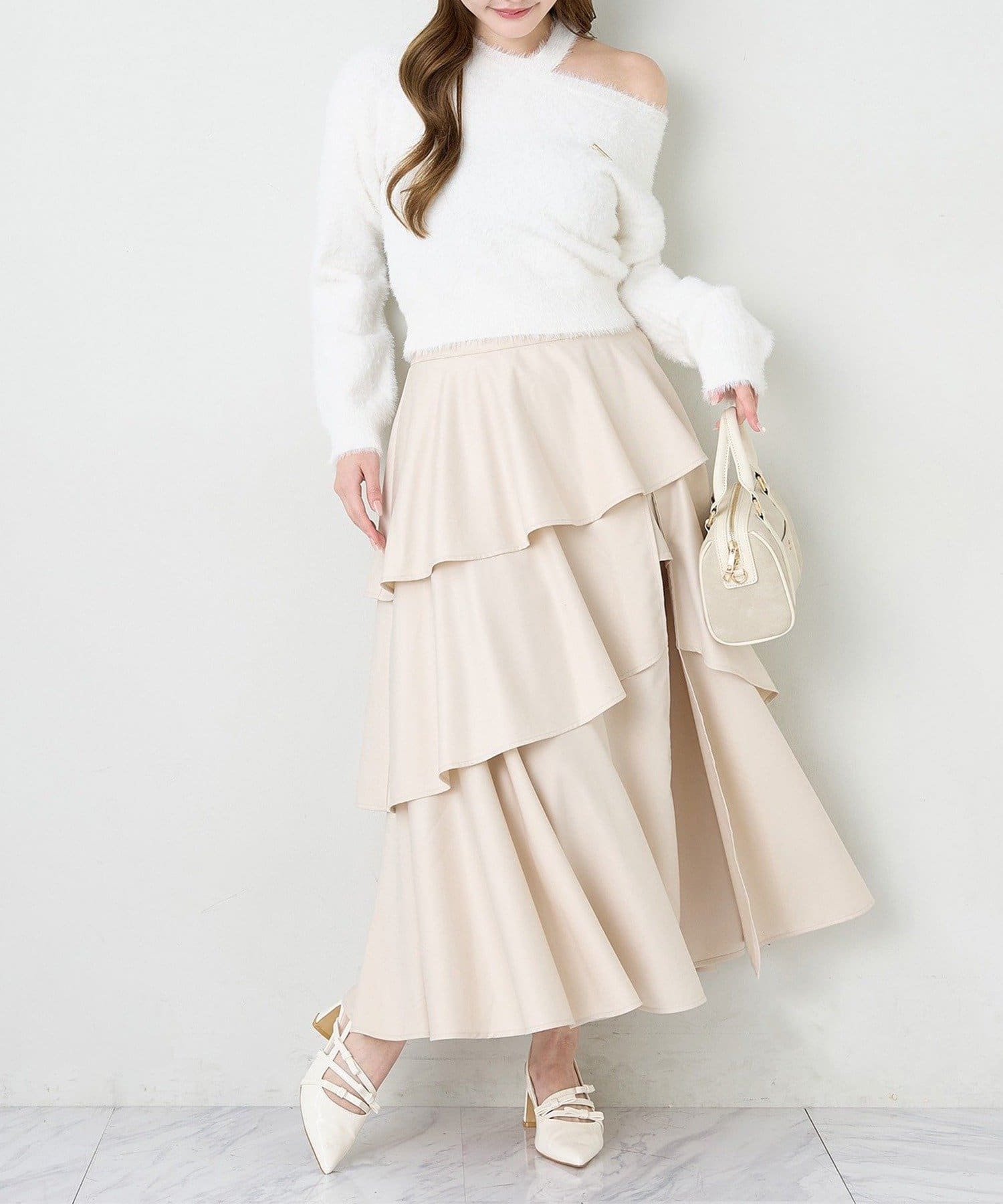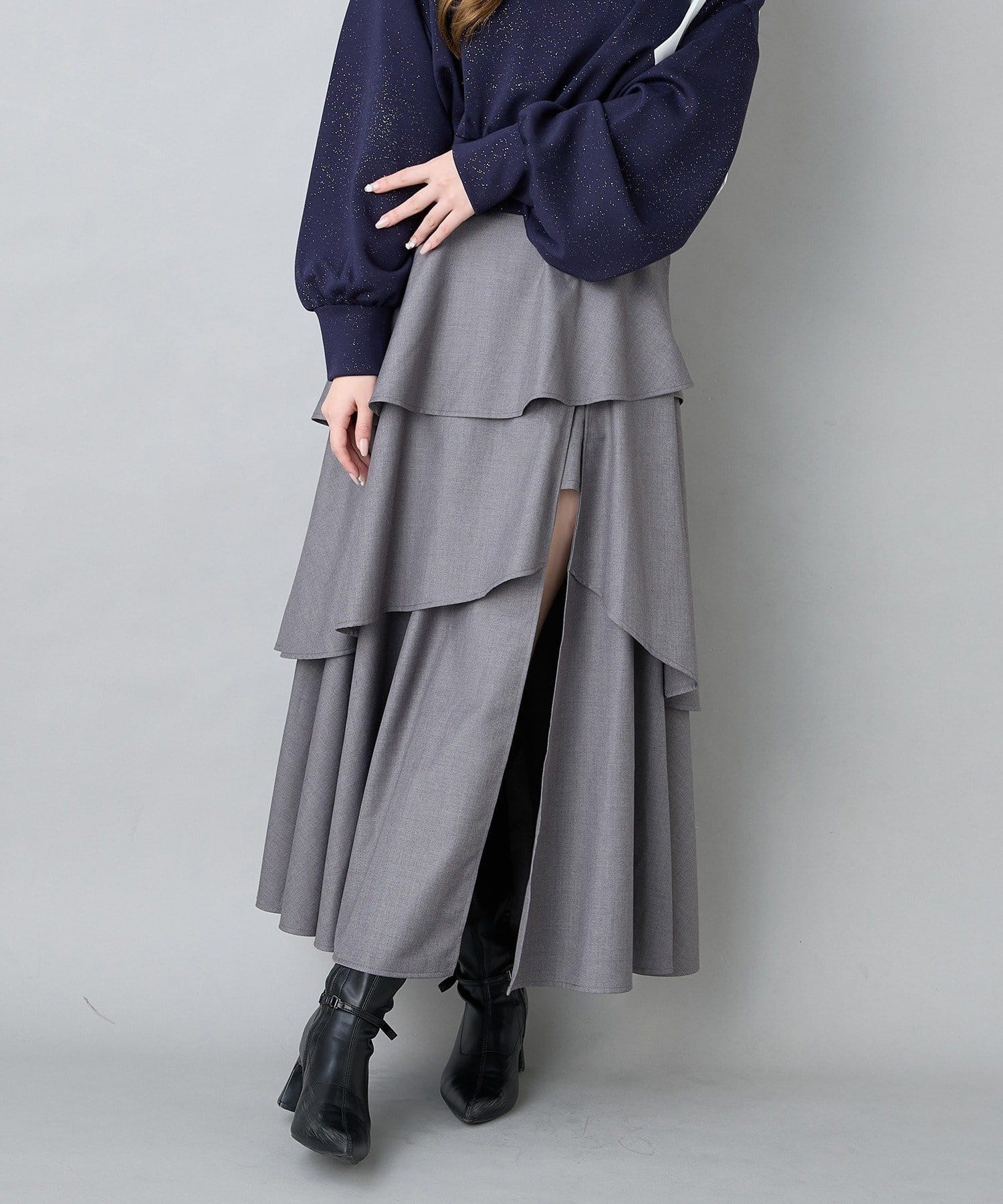ふんわりとしたティアードシルエットに、フロントスリットをプラスした大人可愛いロングスカート。