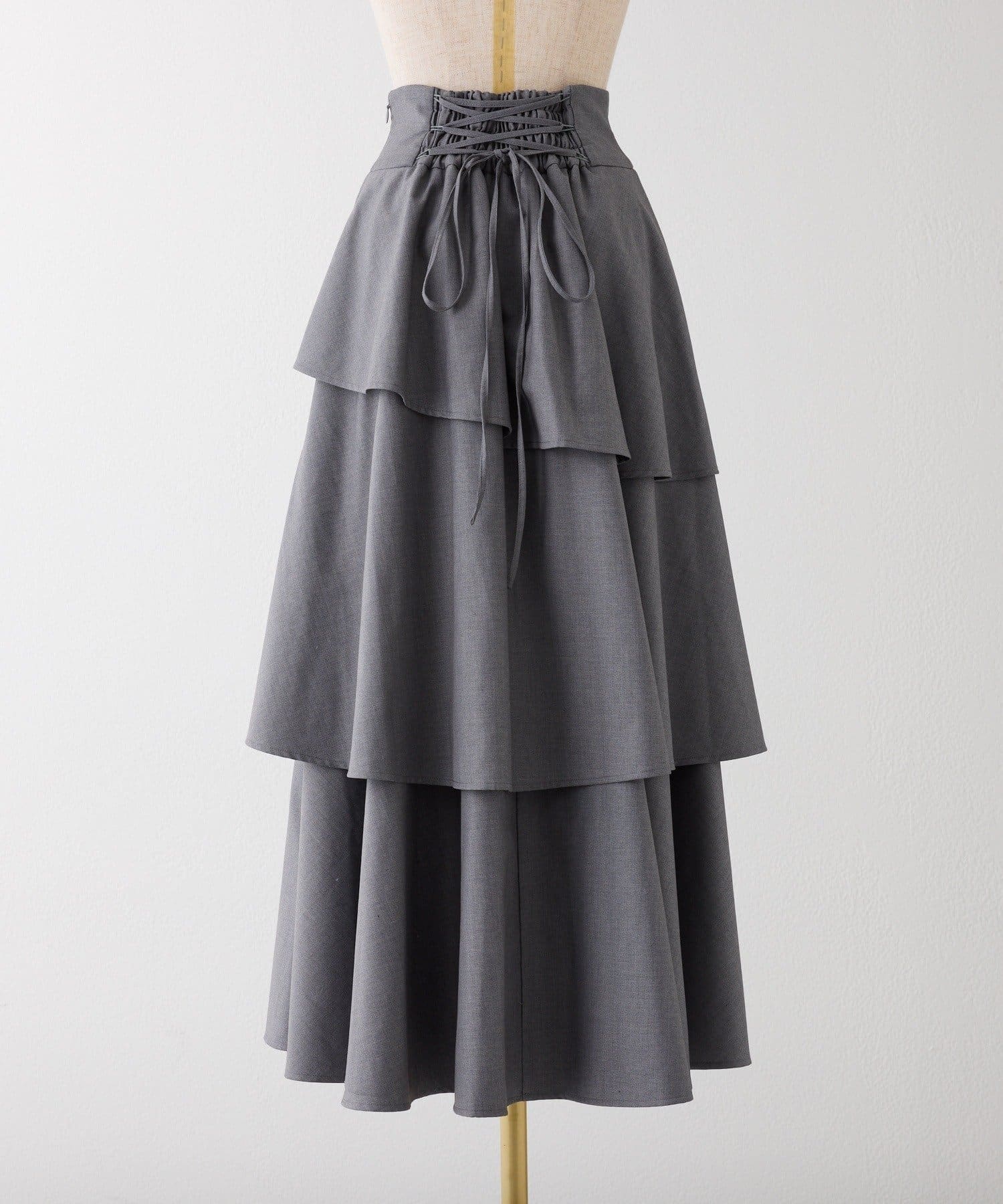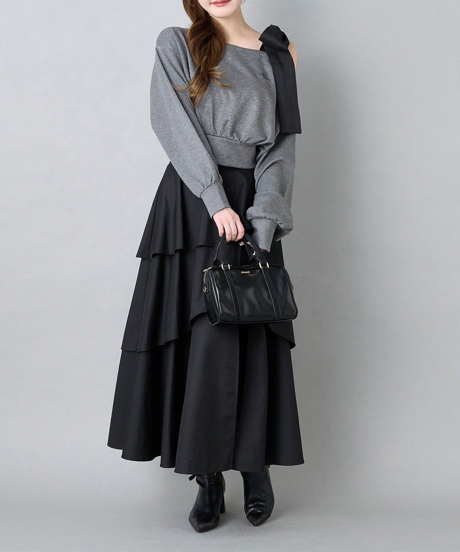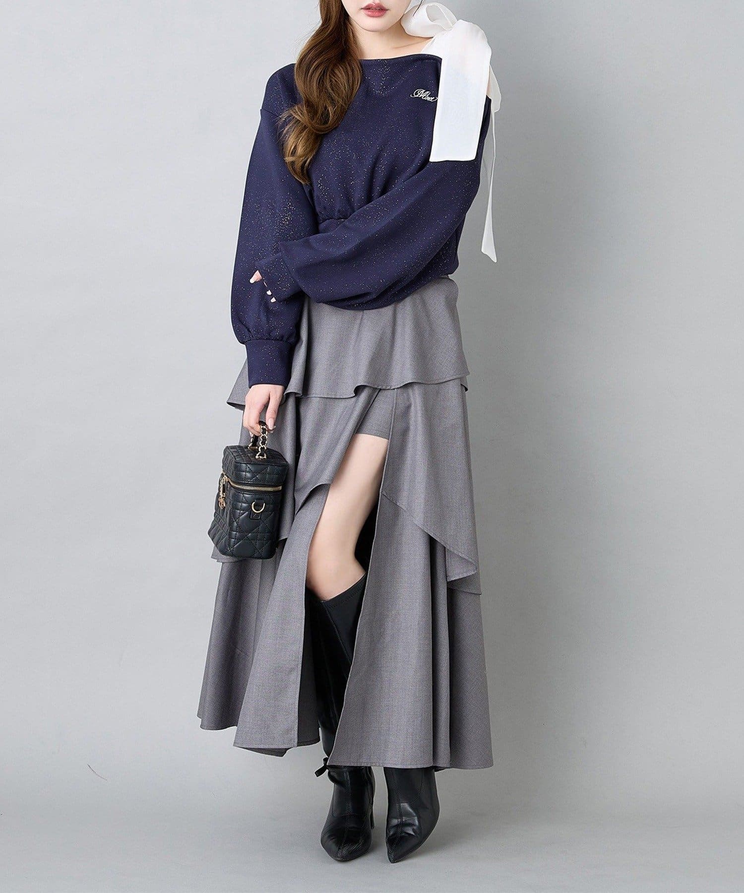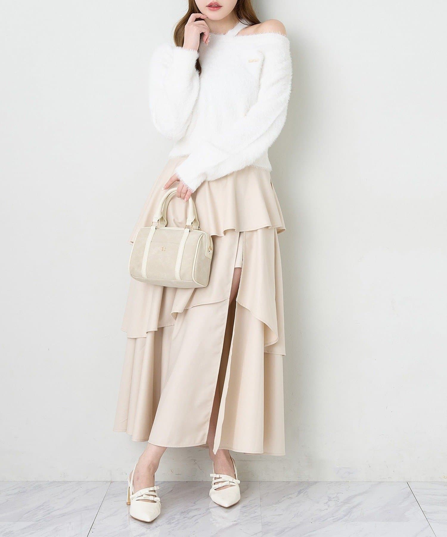 ふんわりとしたティアードシルエットに、フロントスリットをプラスした大人可愛いロングスカート。