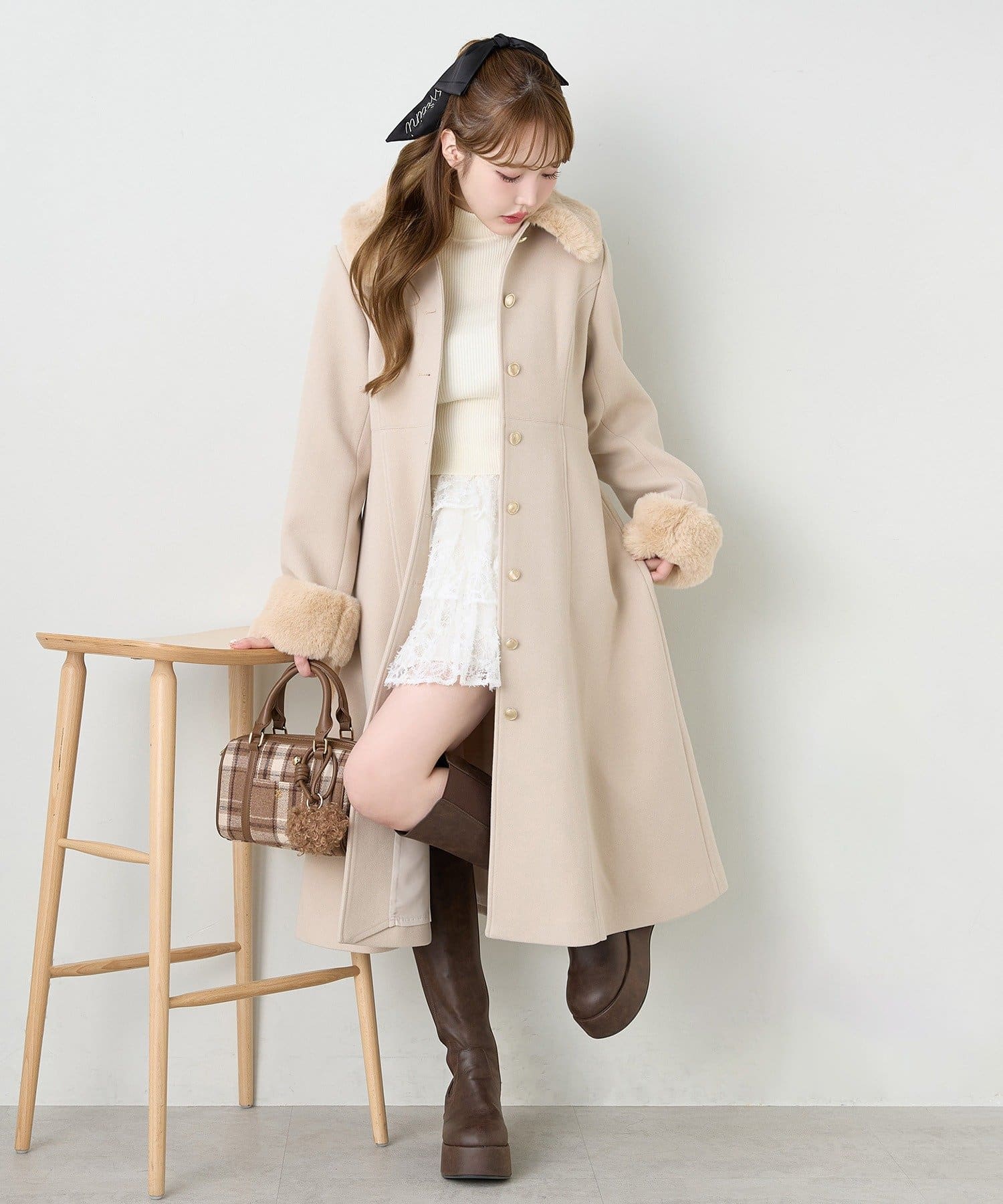 ロングブーツをプラスして、秋冬らしいバランスの取れたスタイルに。