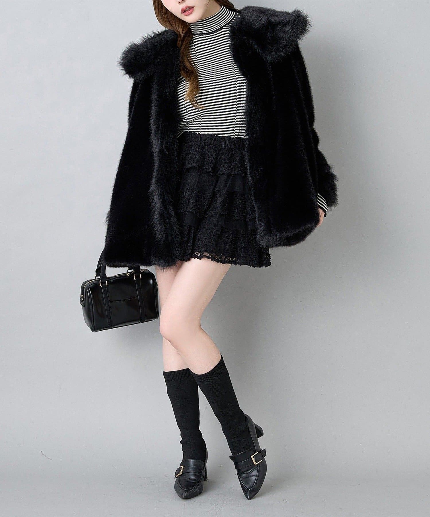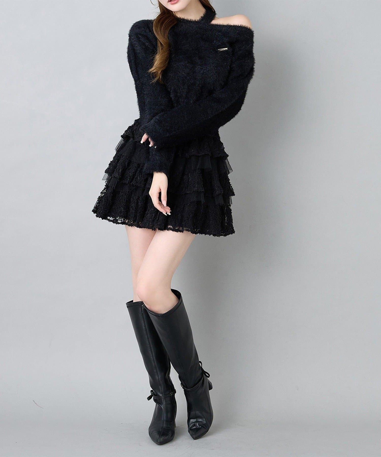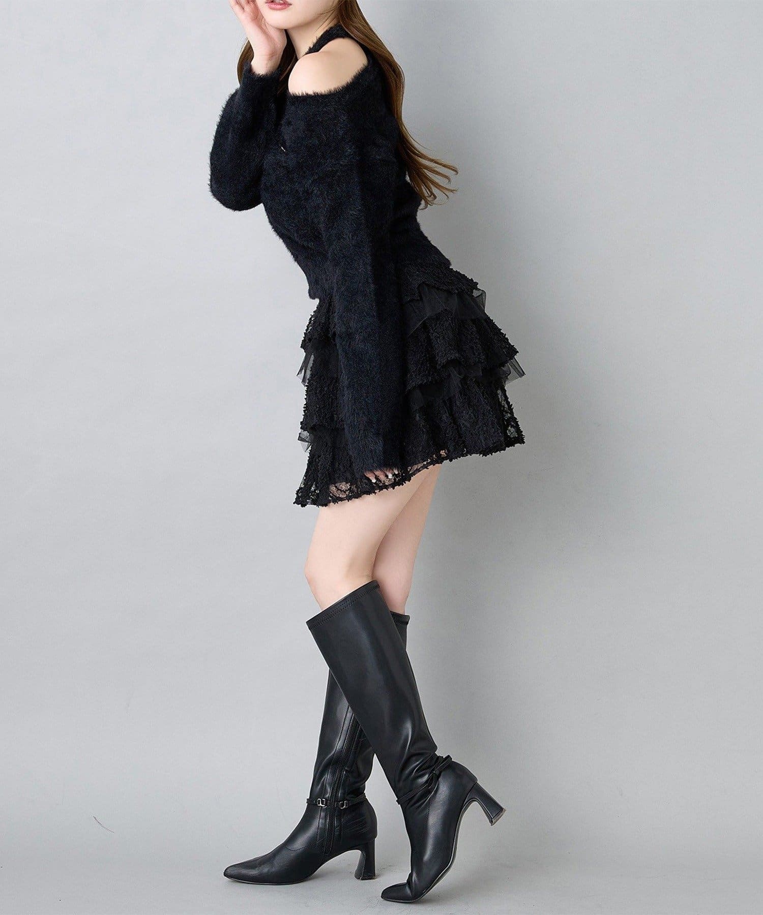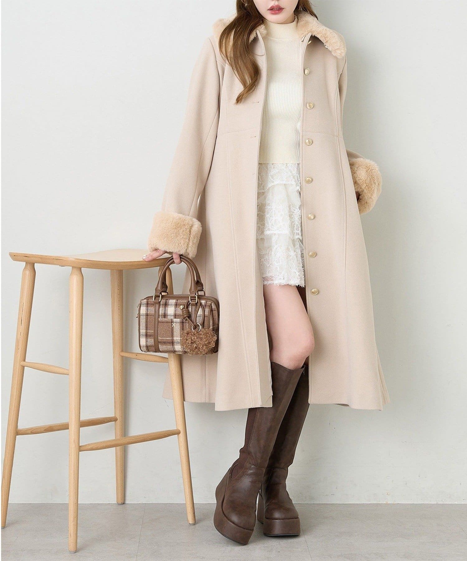 ロングブーツをプラスして、秋冬らしいバランスの取れたスタイルに。