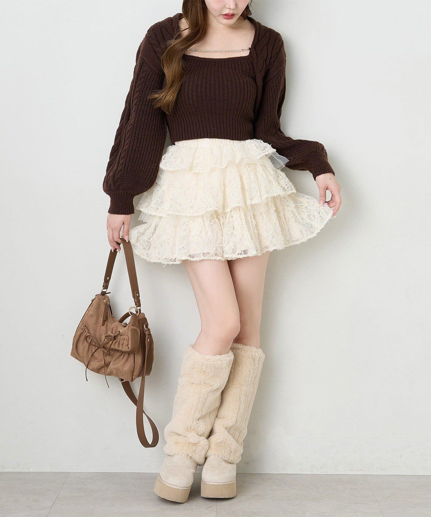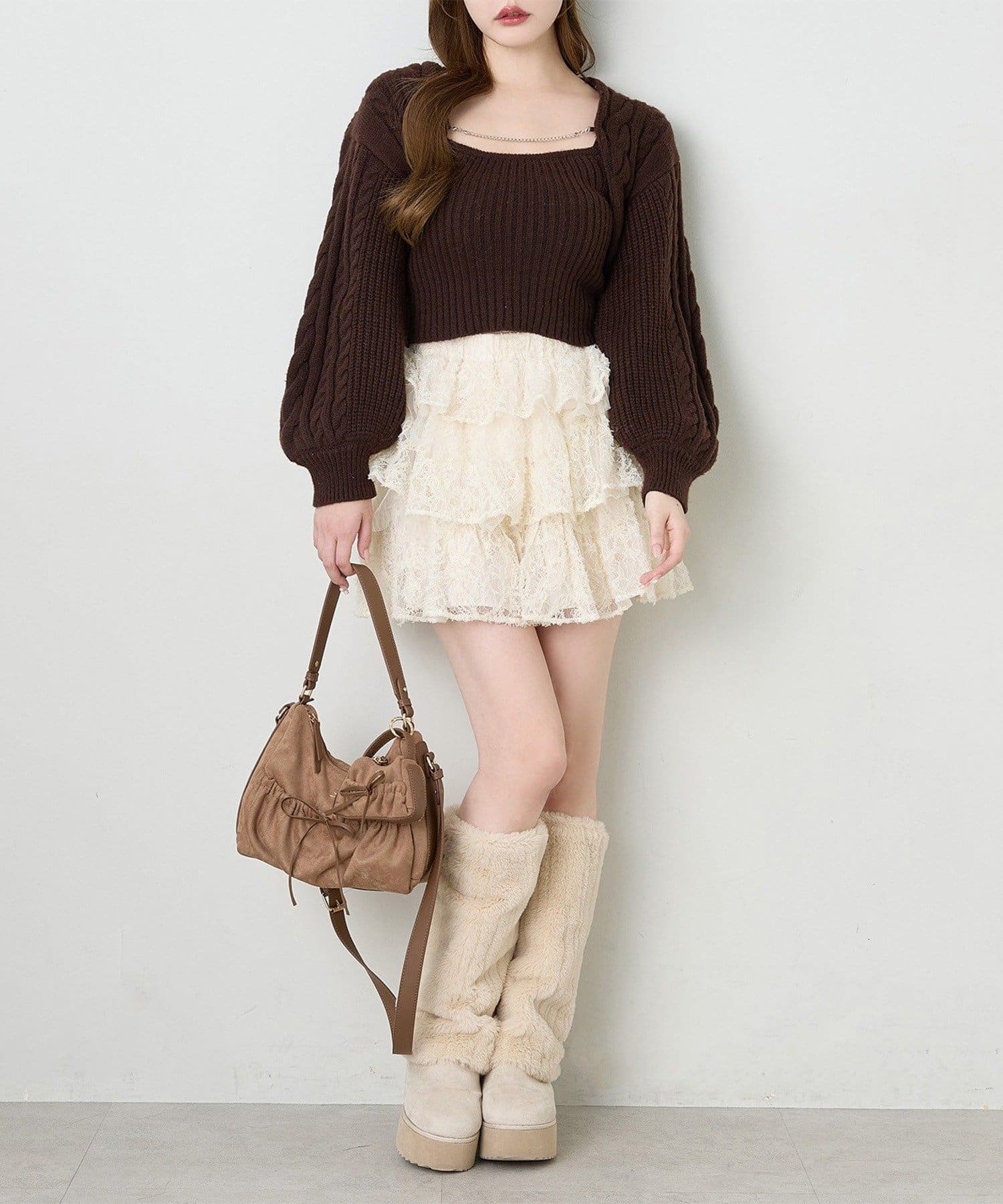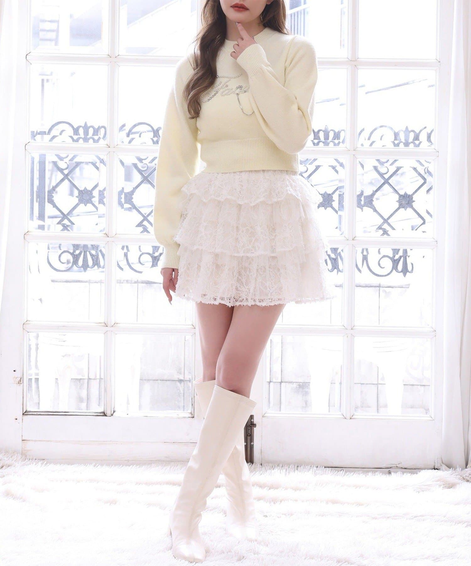 ショート丈ニットを合わせて王道ガーリーコーデに♡