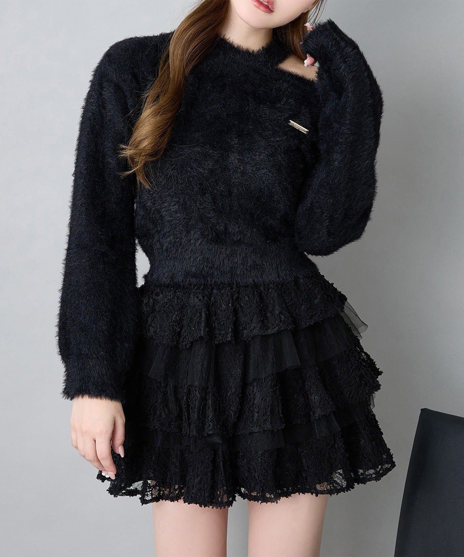 ふんわりと広がるフリルデザインが可愛いミニスカート。