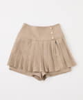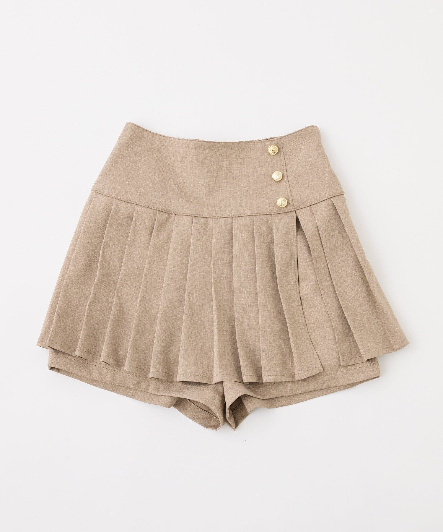 ウエストのサイドにあしらった金ボタンがポイントのミニプリーツスカート。
