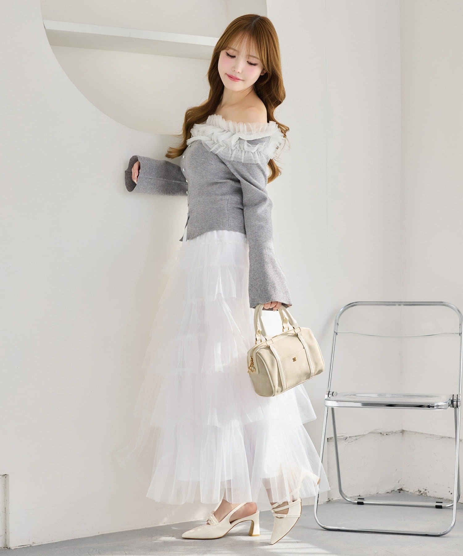 シンプルなニットと合わせてフェミニンコーデがおすすめ