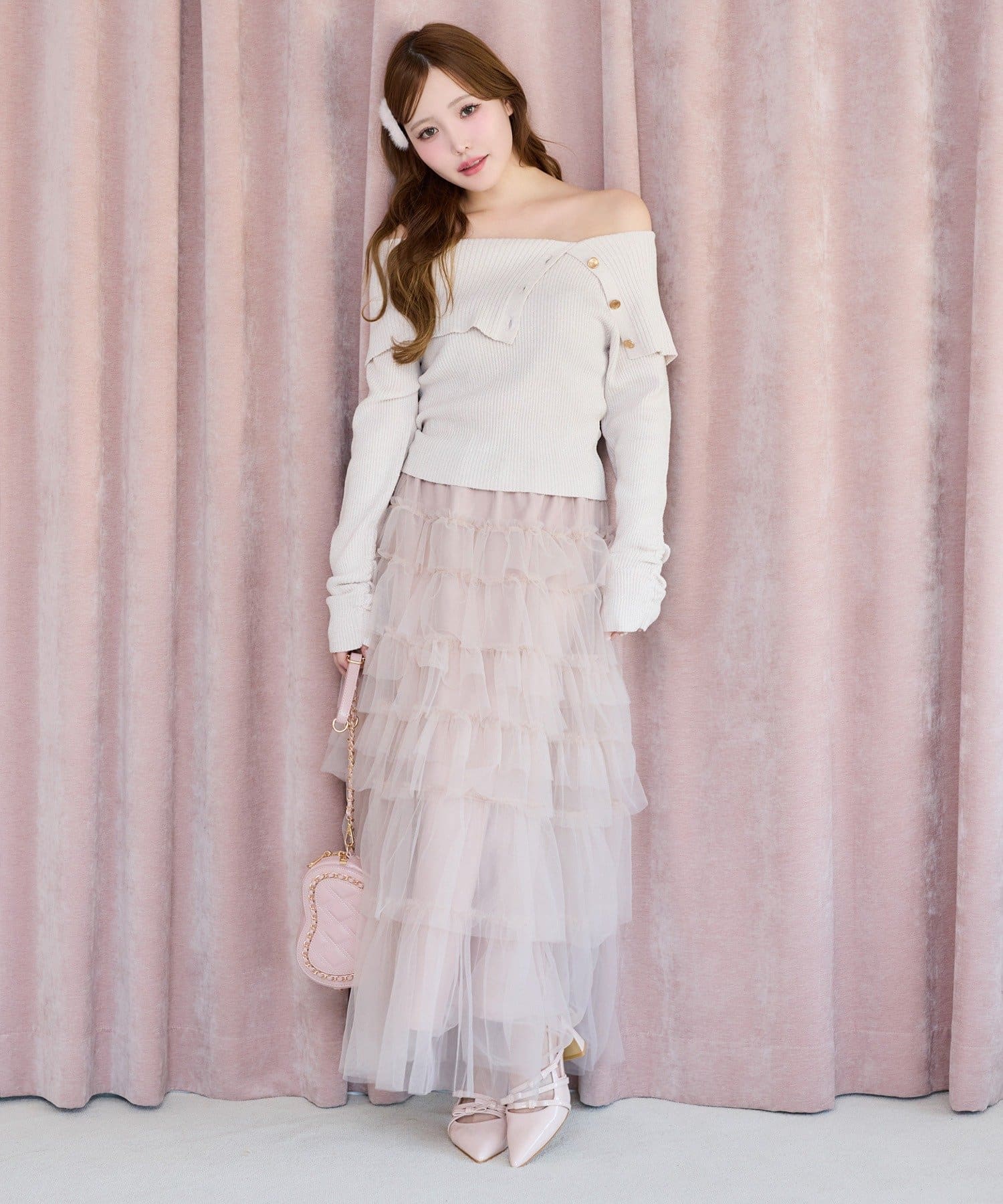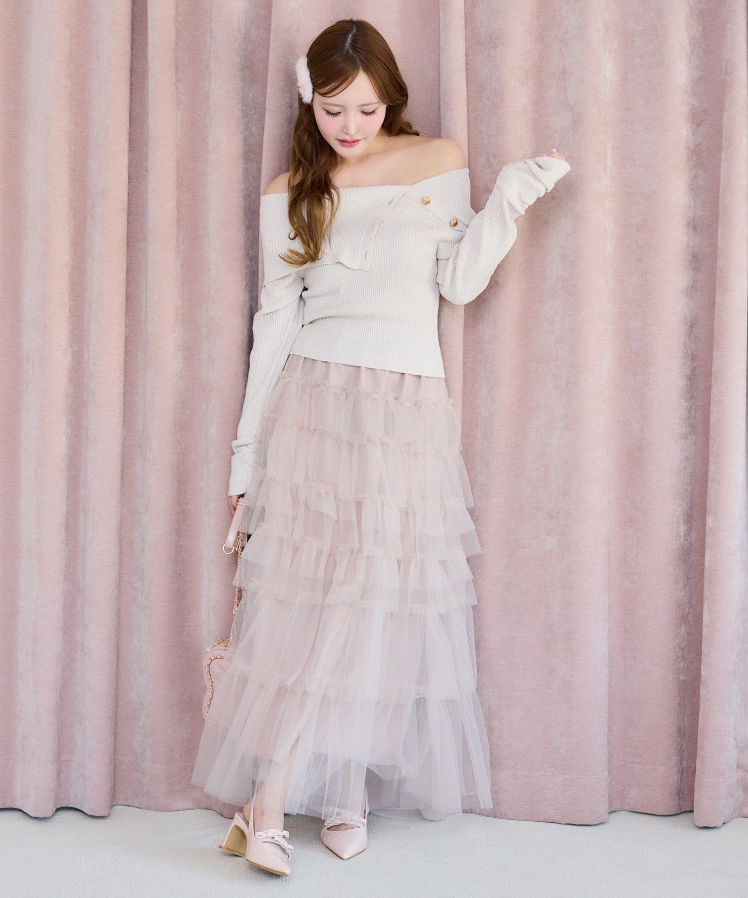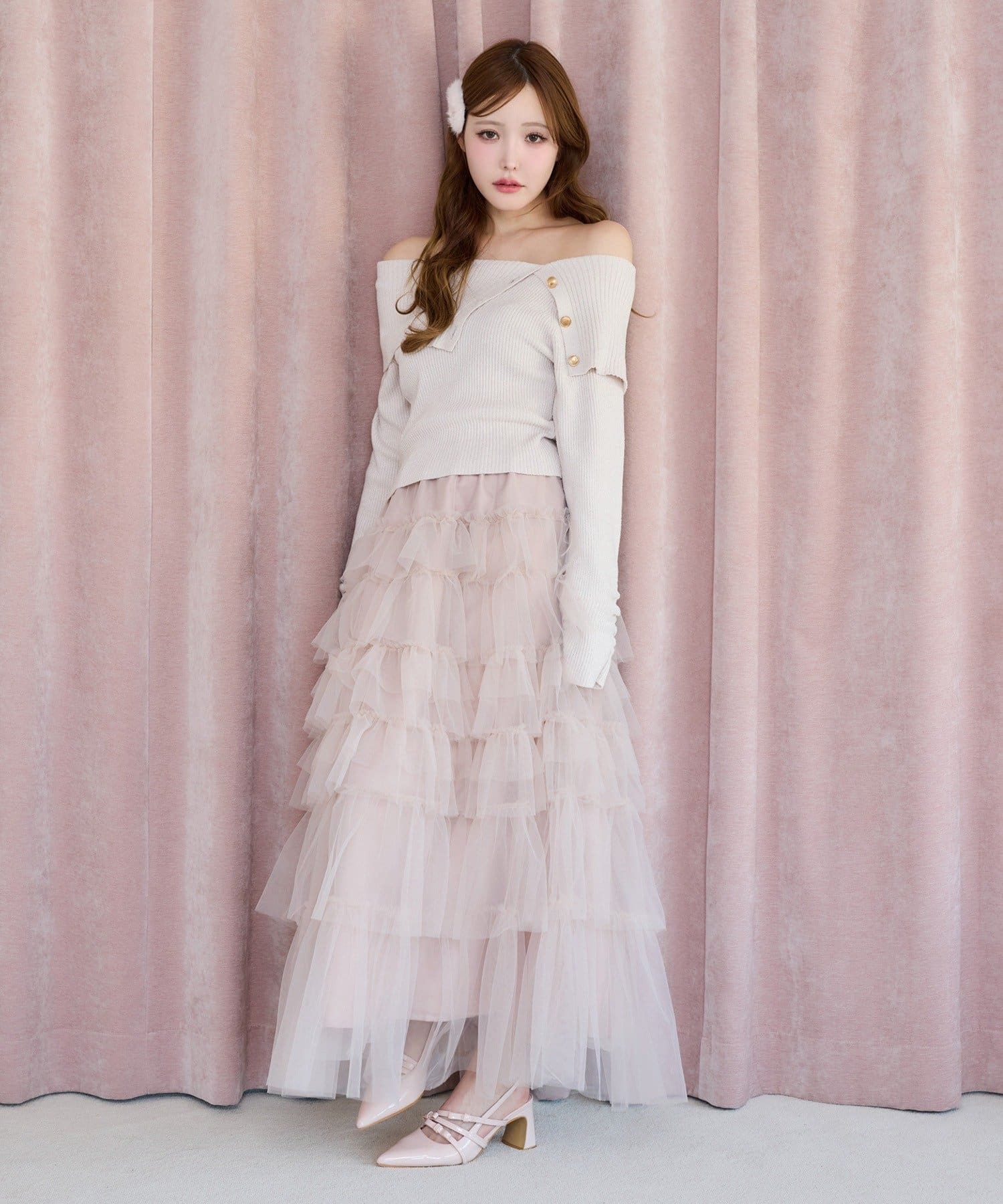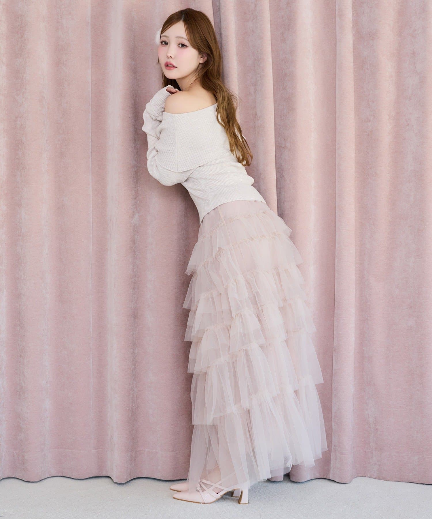 動きに合わせて揺れるたっぷりと重ねたフリルが女性らしい雰囲気を演出します。