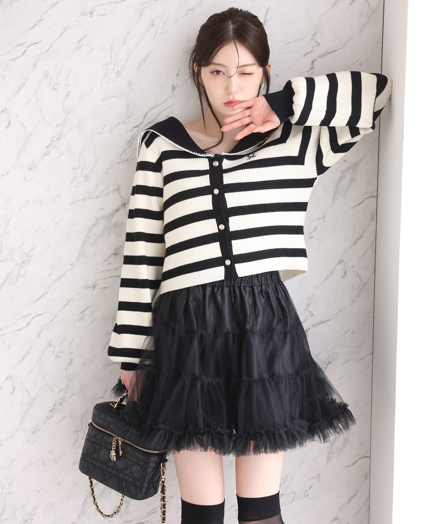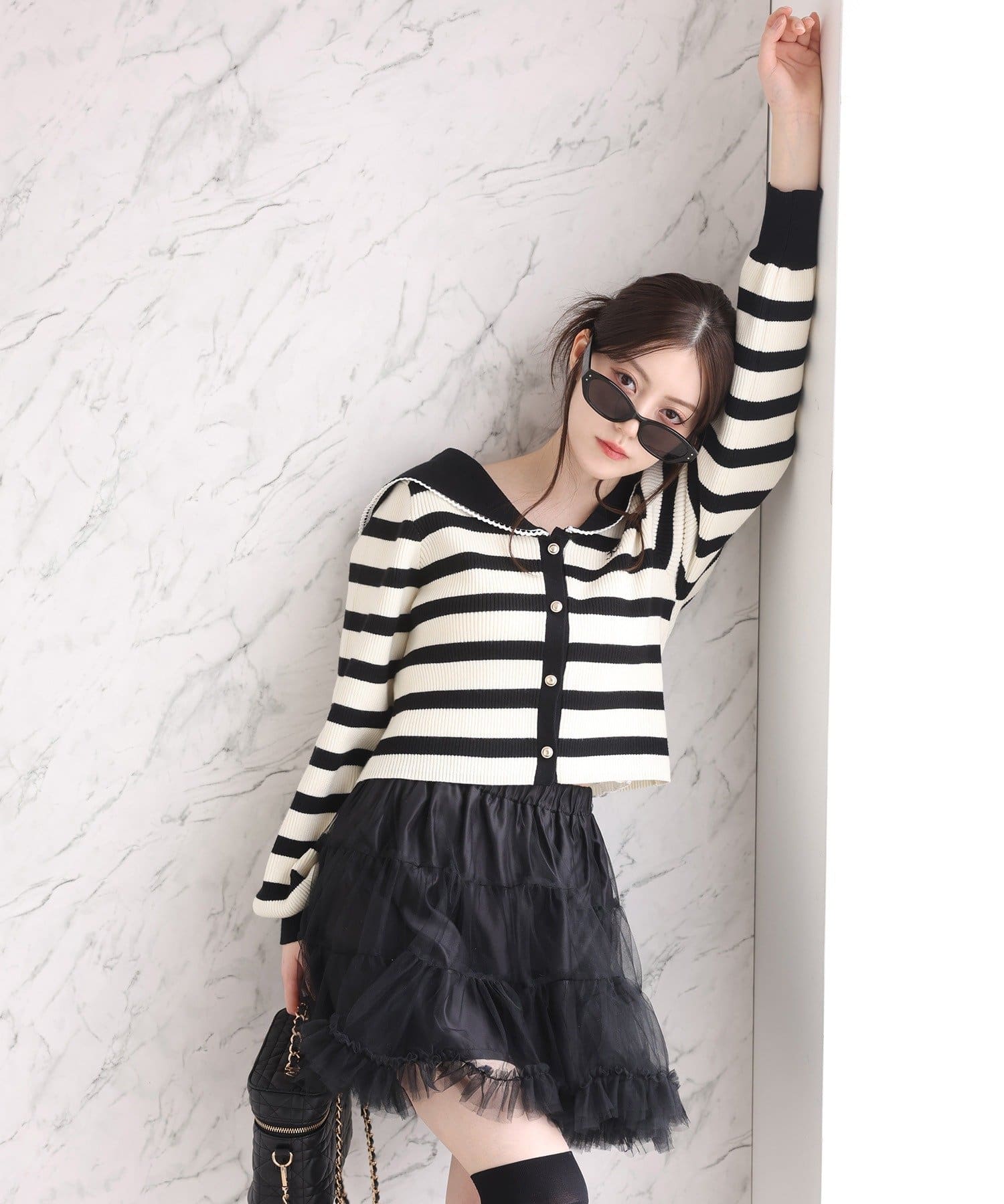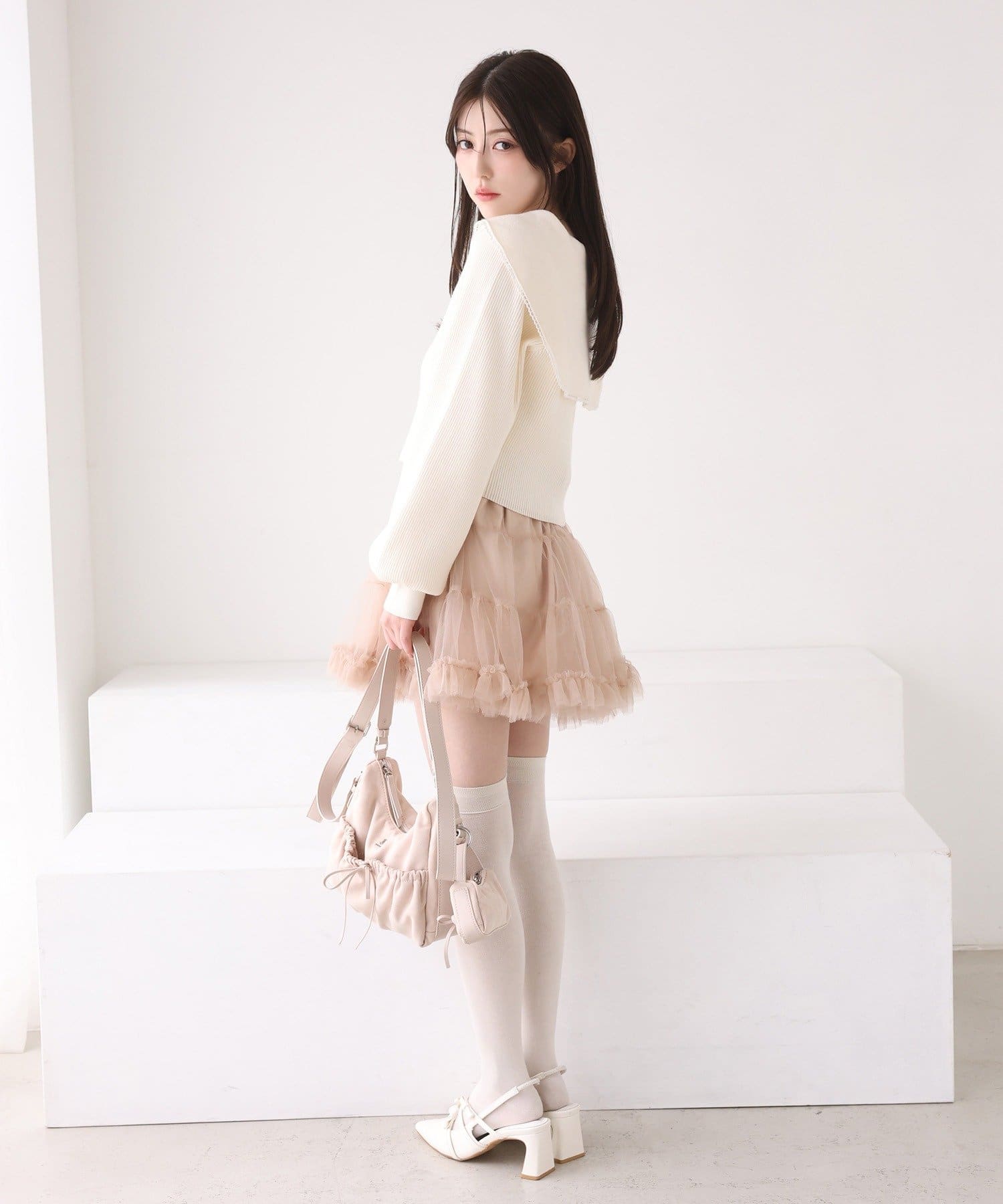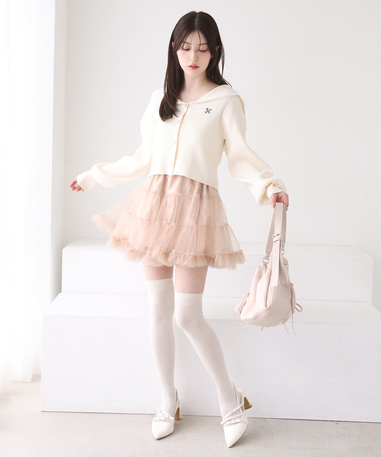 ショート丈ニットを合わせて王道ガーリーコーデに♡