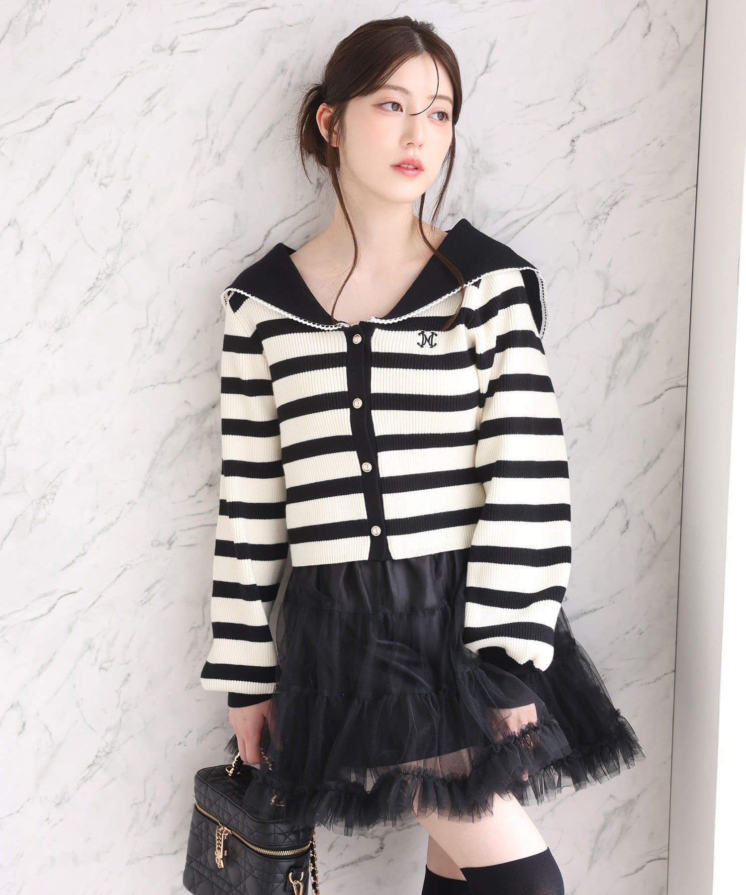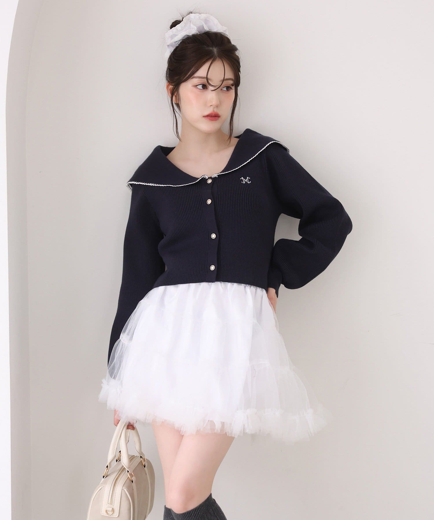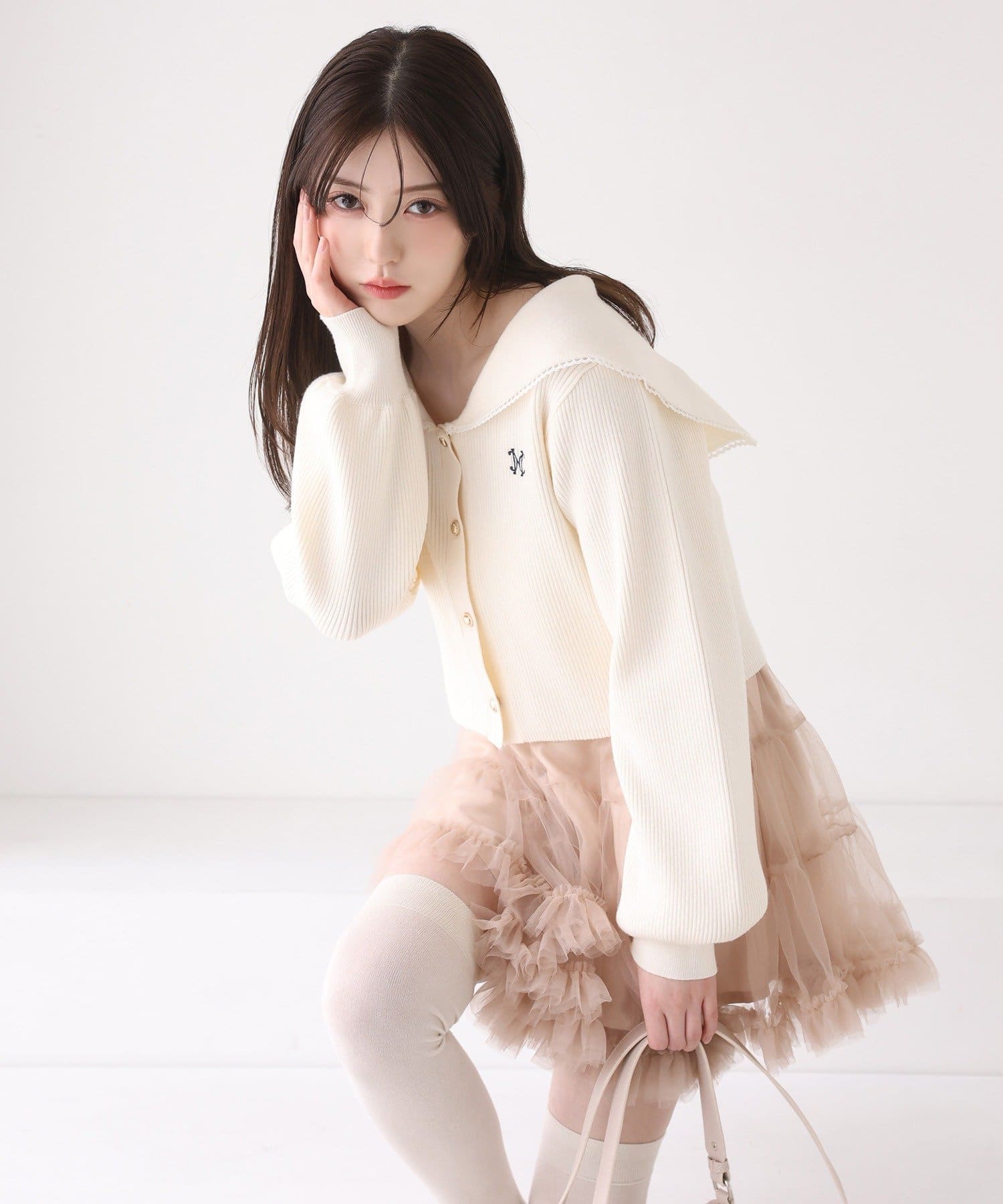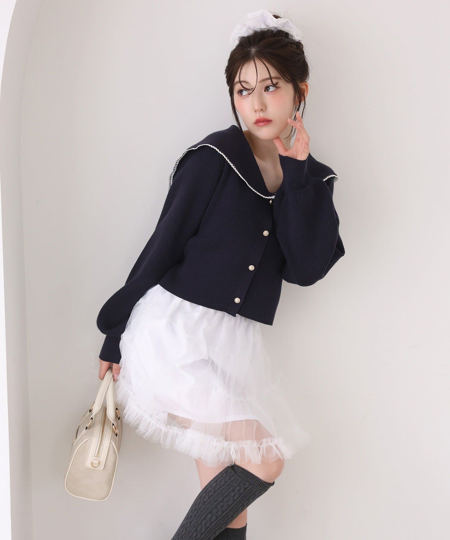 ショート丈ニットを合わせて王道ガーリーコーデに♡