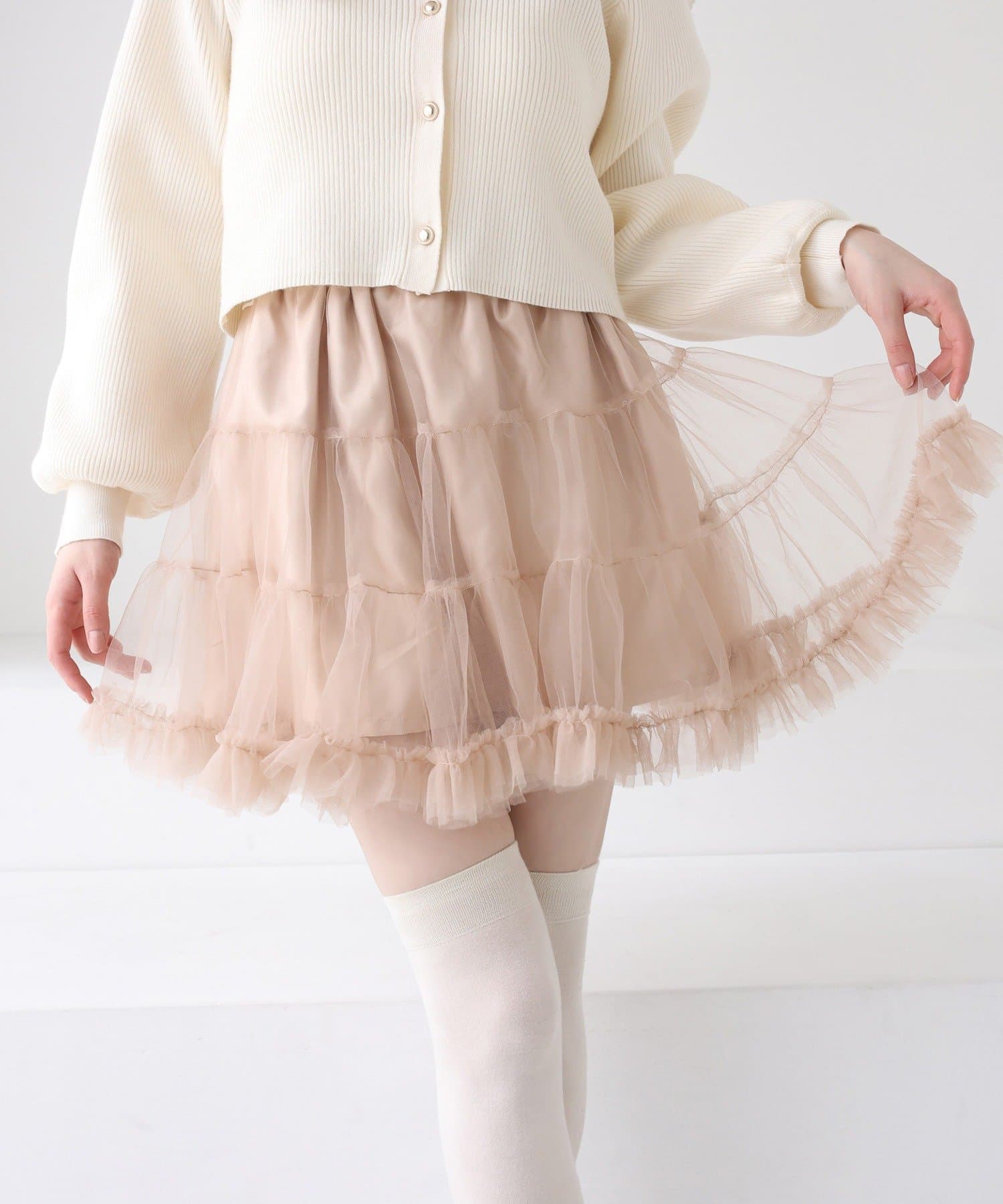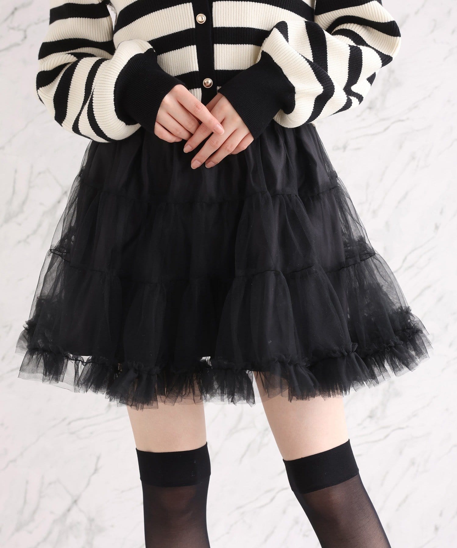 ふんわりと広がるフリルデザインが可愛いミニスカート。