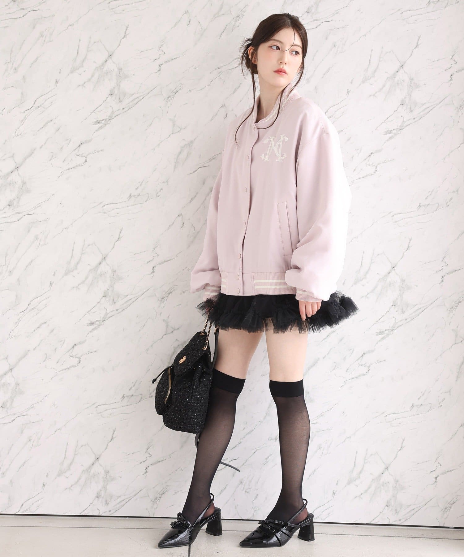 ジャケットを羽織れば大人っぽい甘辛MIXコーデに。
