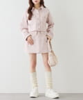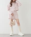 コンパクトなニットやオフショルトップスを合わせてガーリーに
