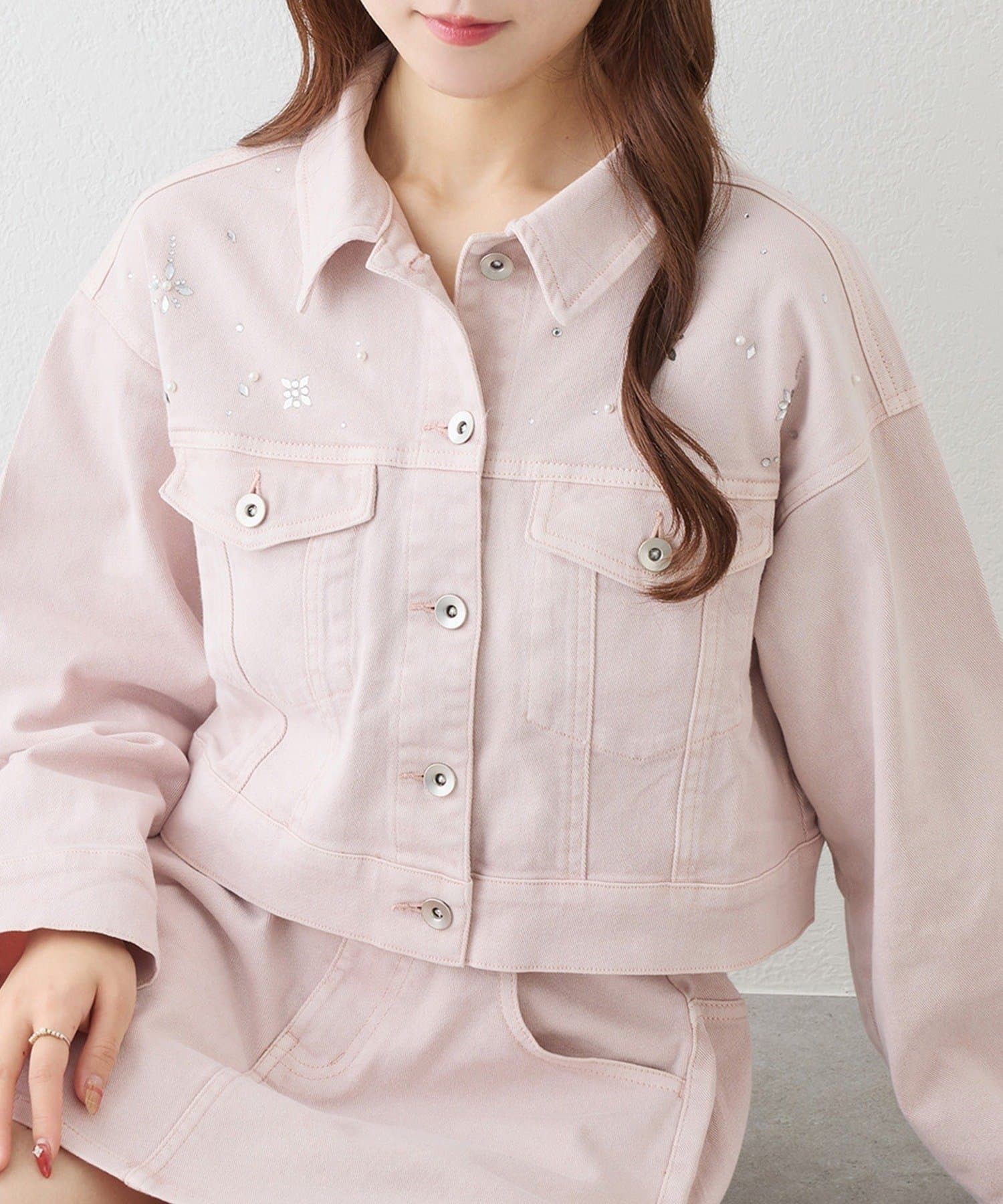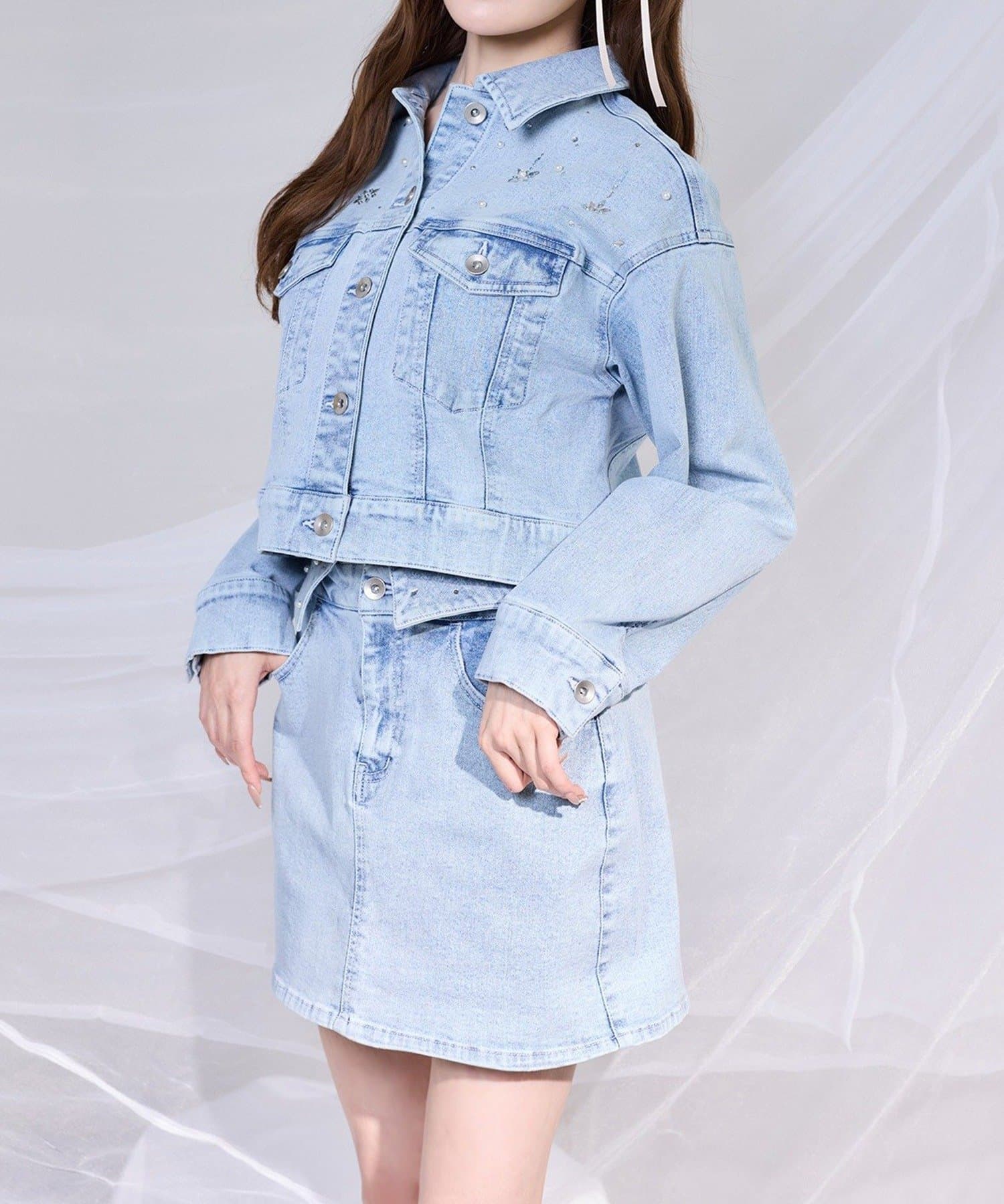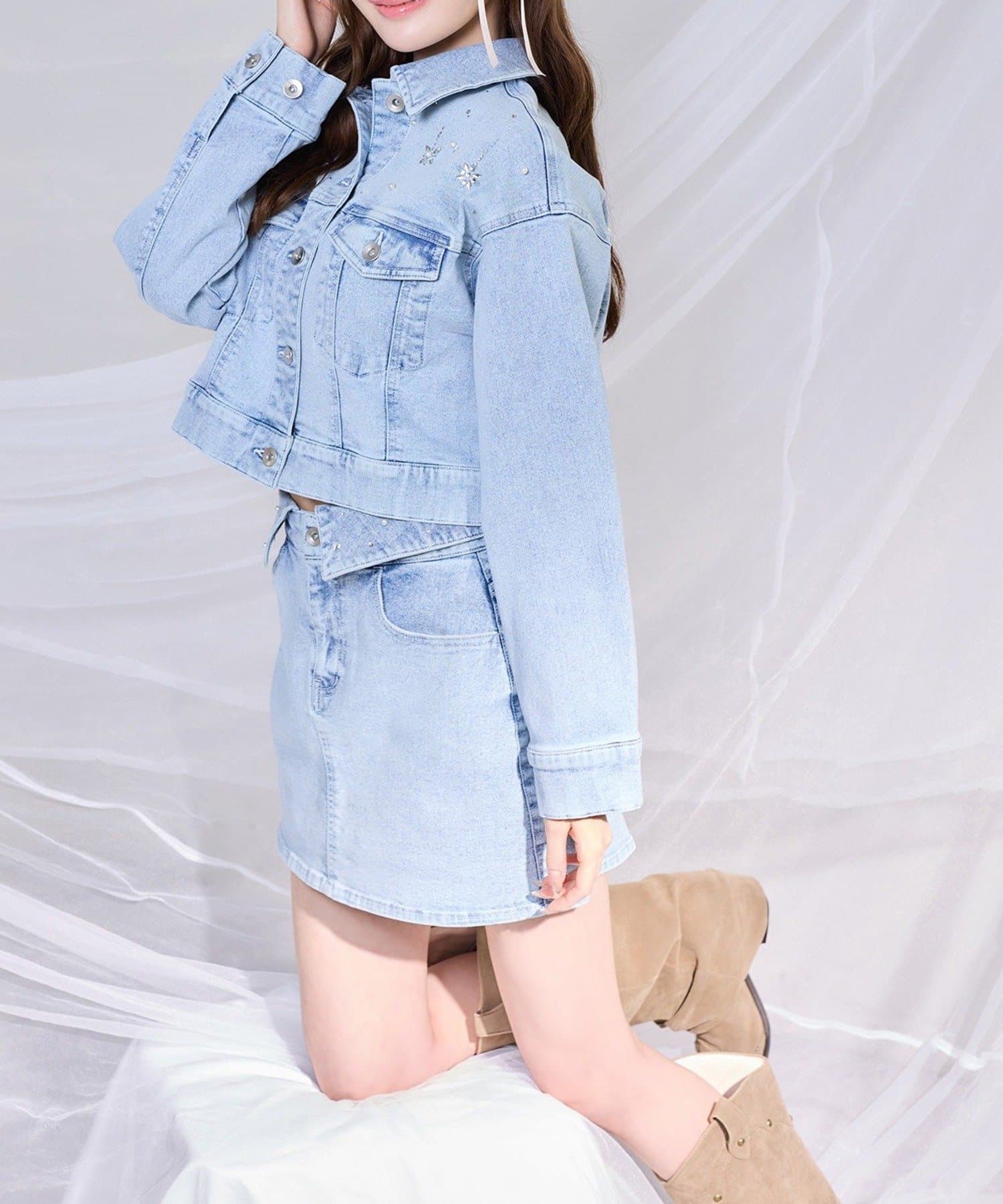 きらっと輝くビジューをあしらい、カジュアルなデニムに女の子らしさをプラスしました♡