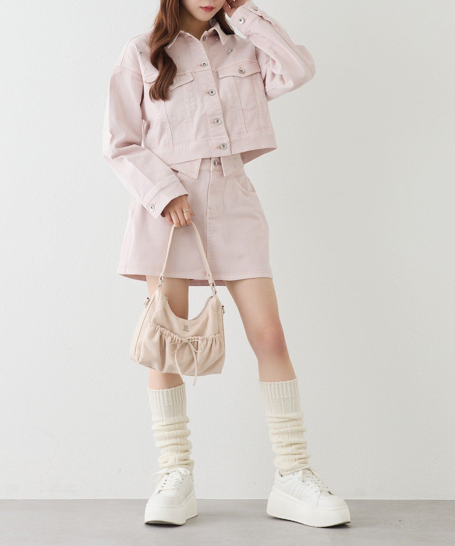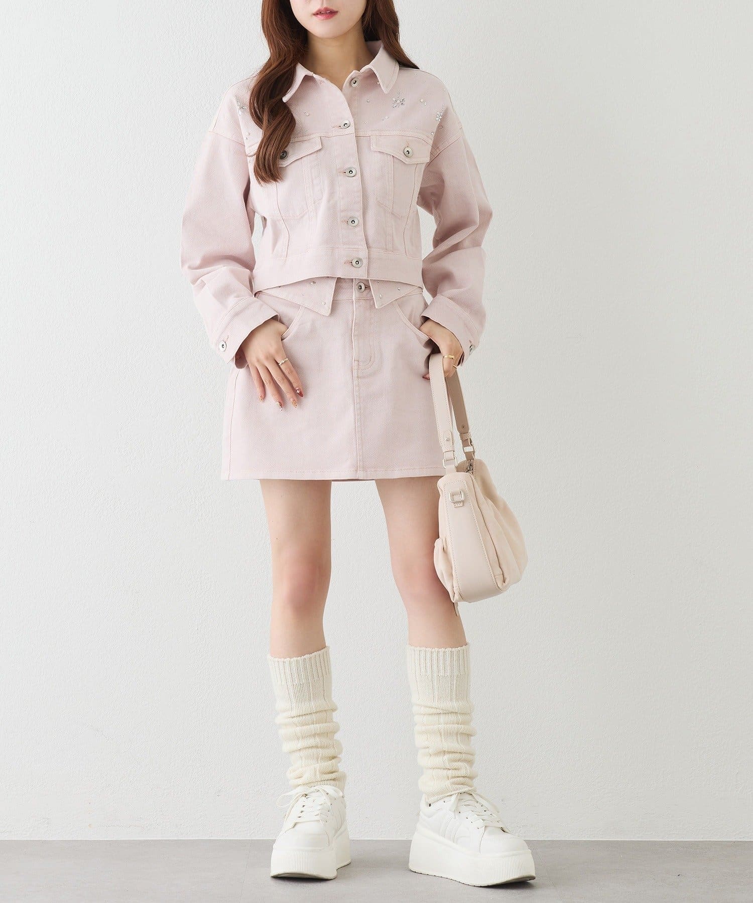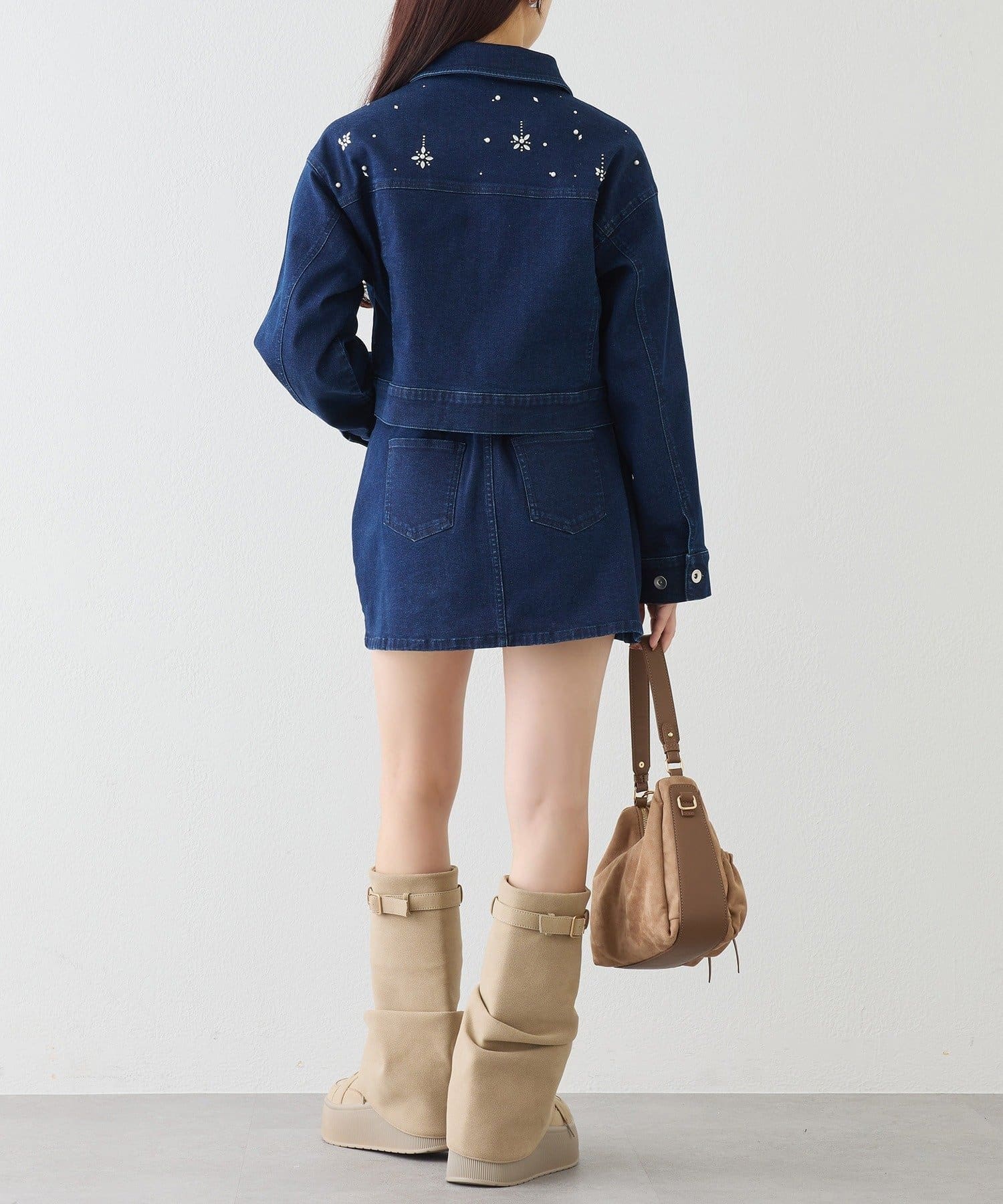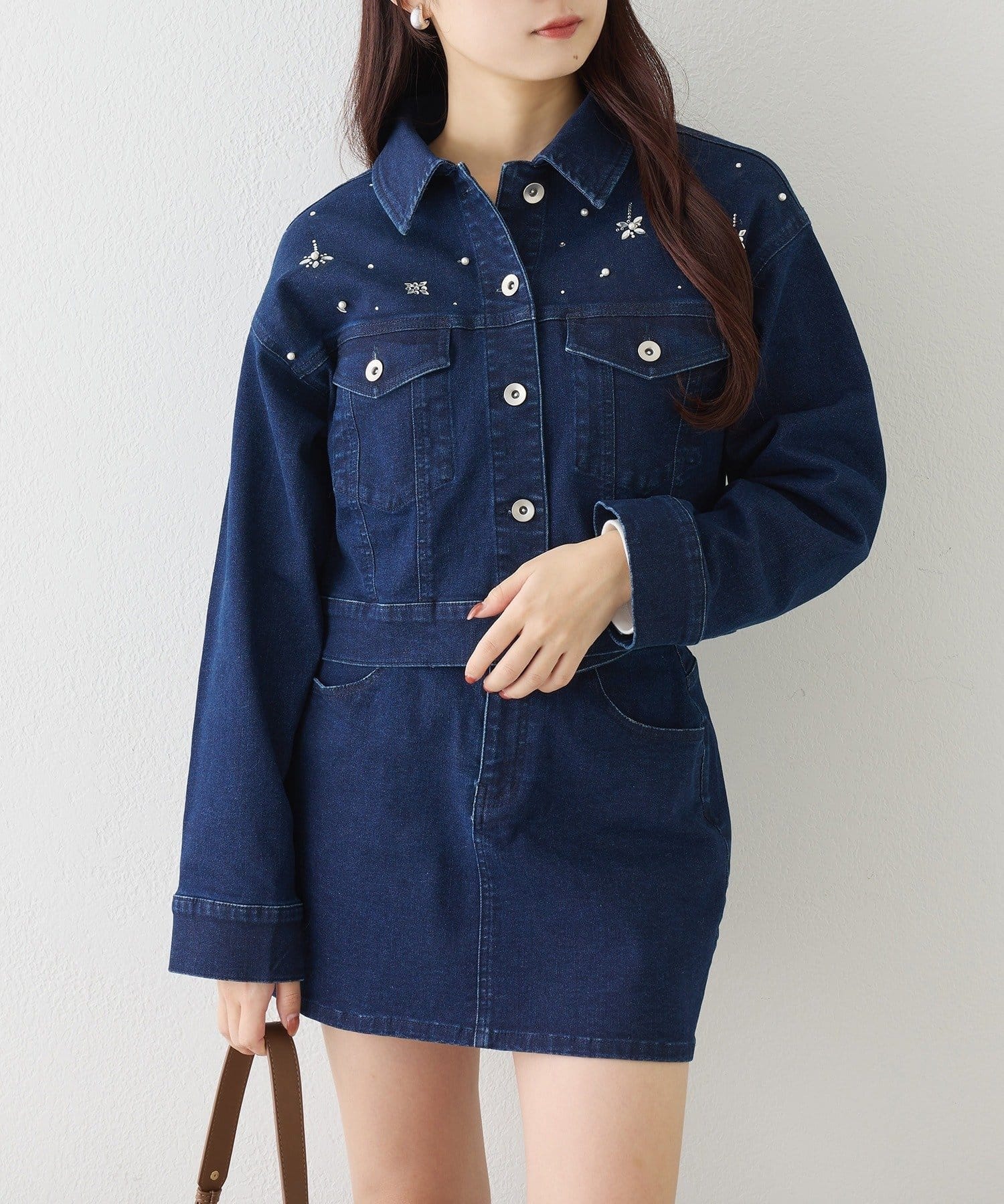 きらっと輝くビジューをあしらい、カジュアルなデニムに女の子らしさをプラスしました♡