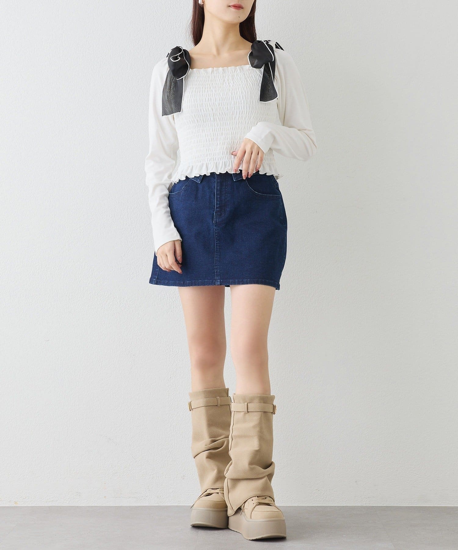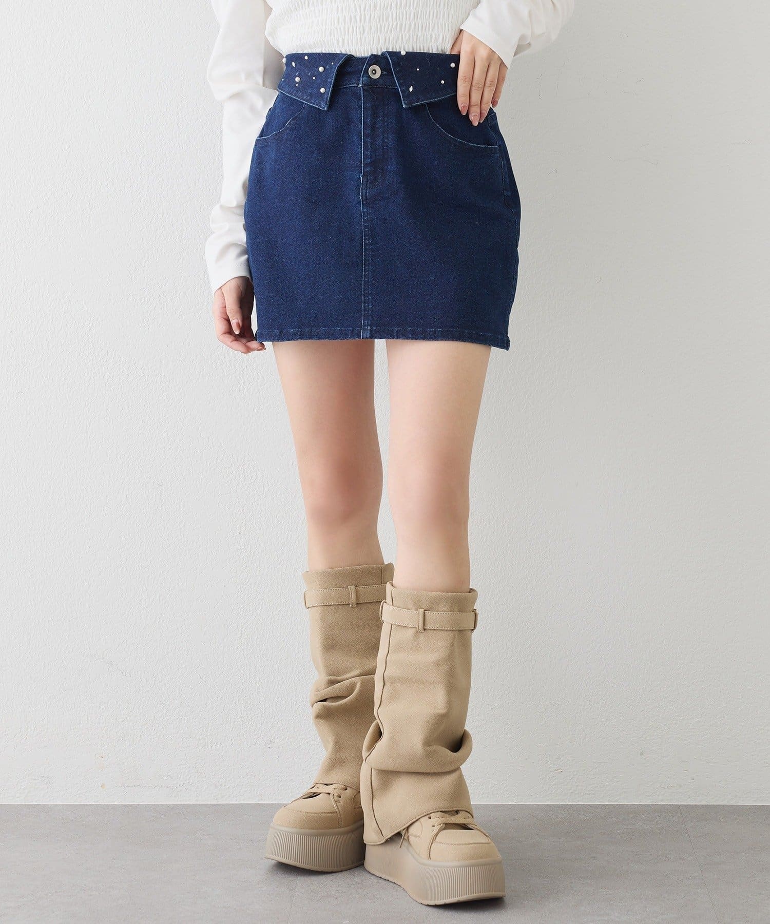 【one after another】ウェスト折り返しデニムミニ