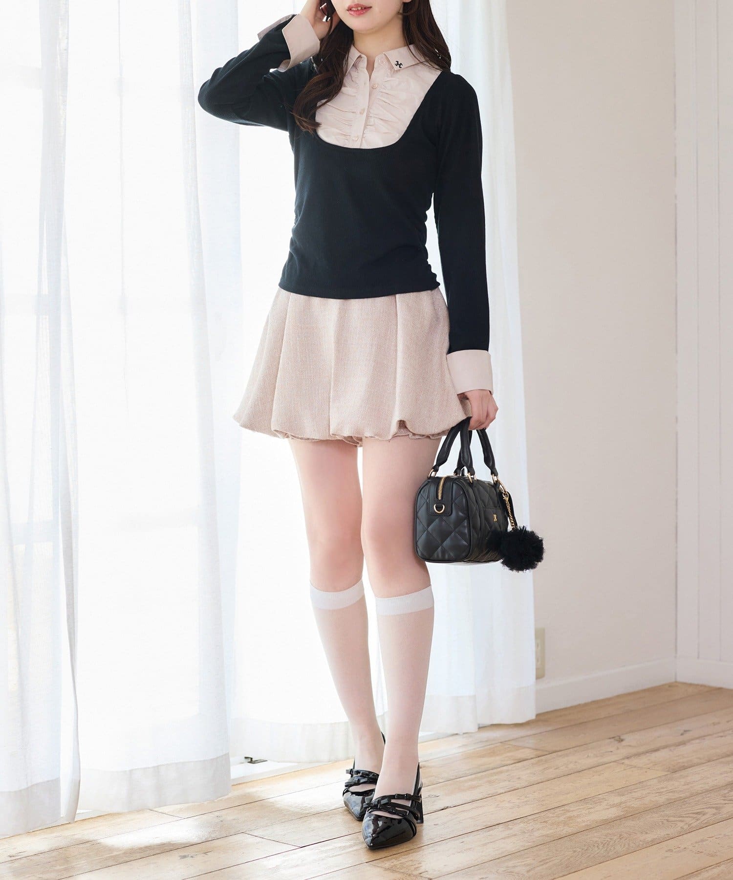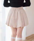 ふんわり丸みのあるバルーンシルエットが目を惹く、ショートパンツ一体型のバルーンスカート。