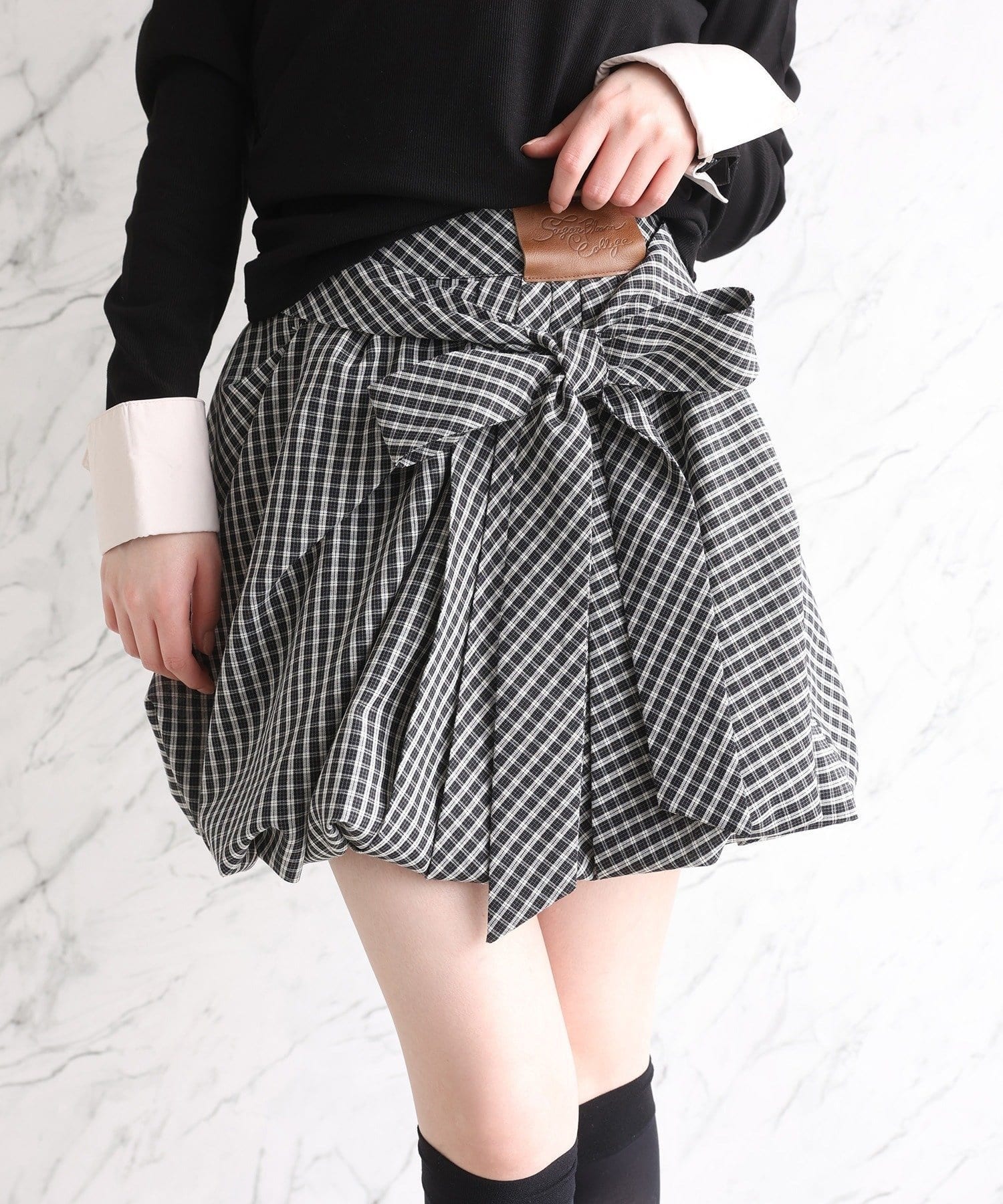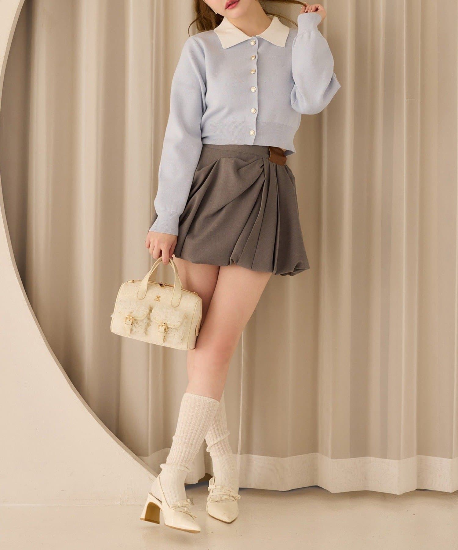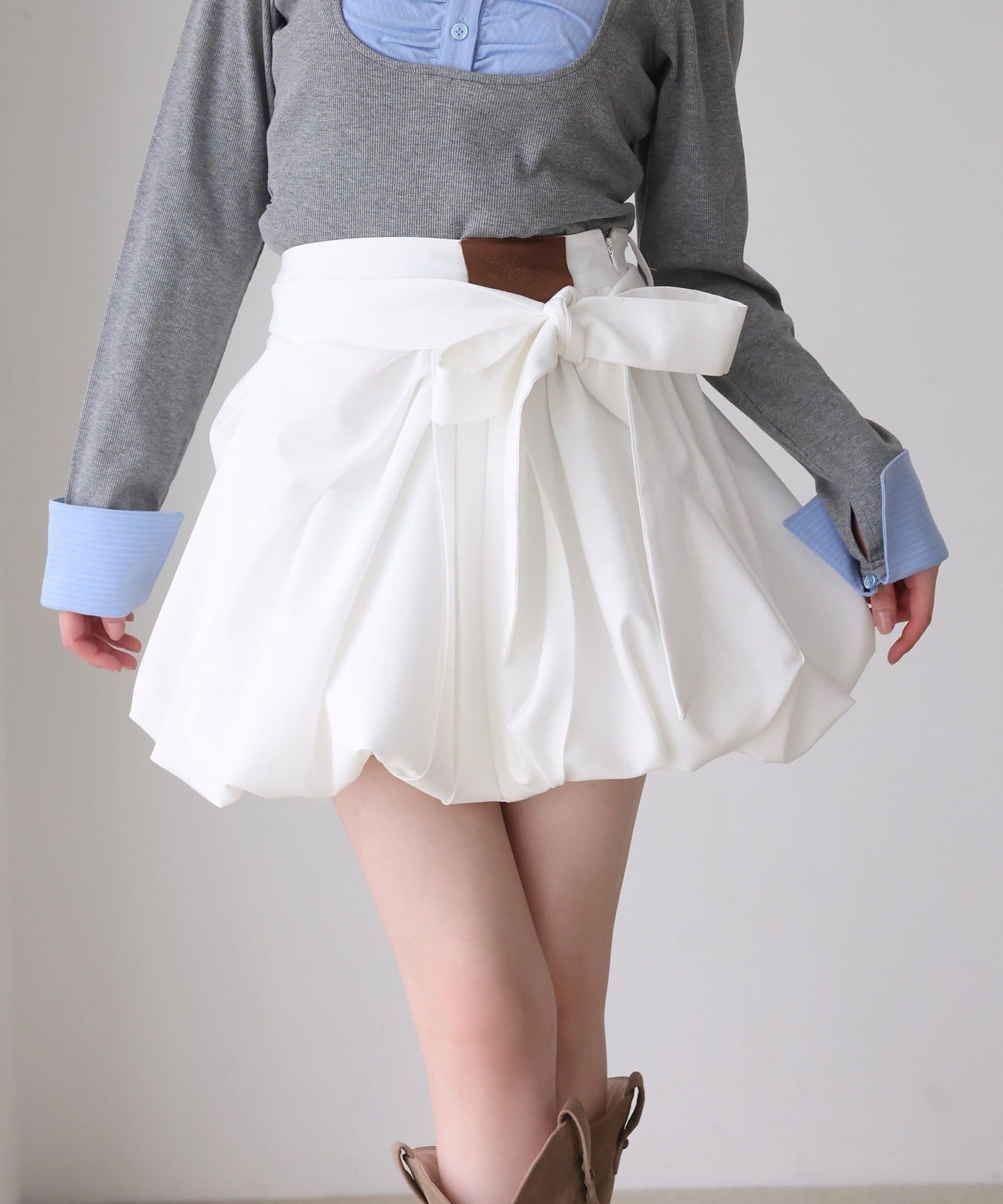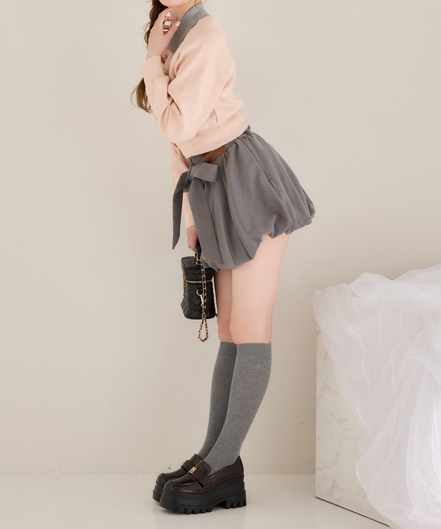 程良い広がりとリボンがガーリーさを演出してくれるバルーンスカート。