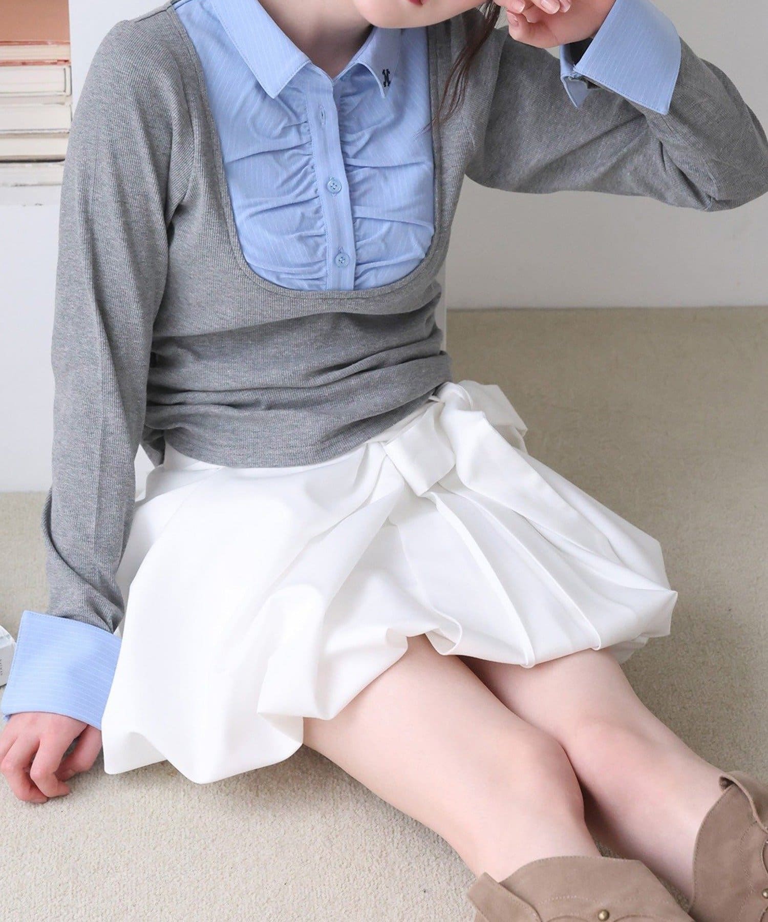 ボリューム感のあるボトムスなので、トップスはコンパクトなものが◎
