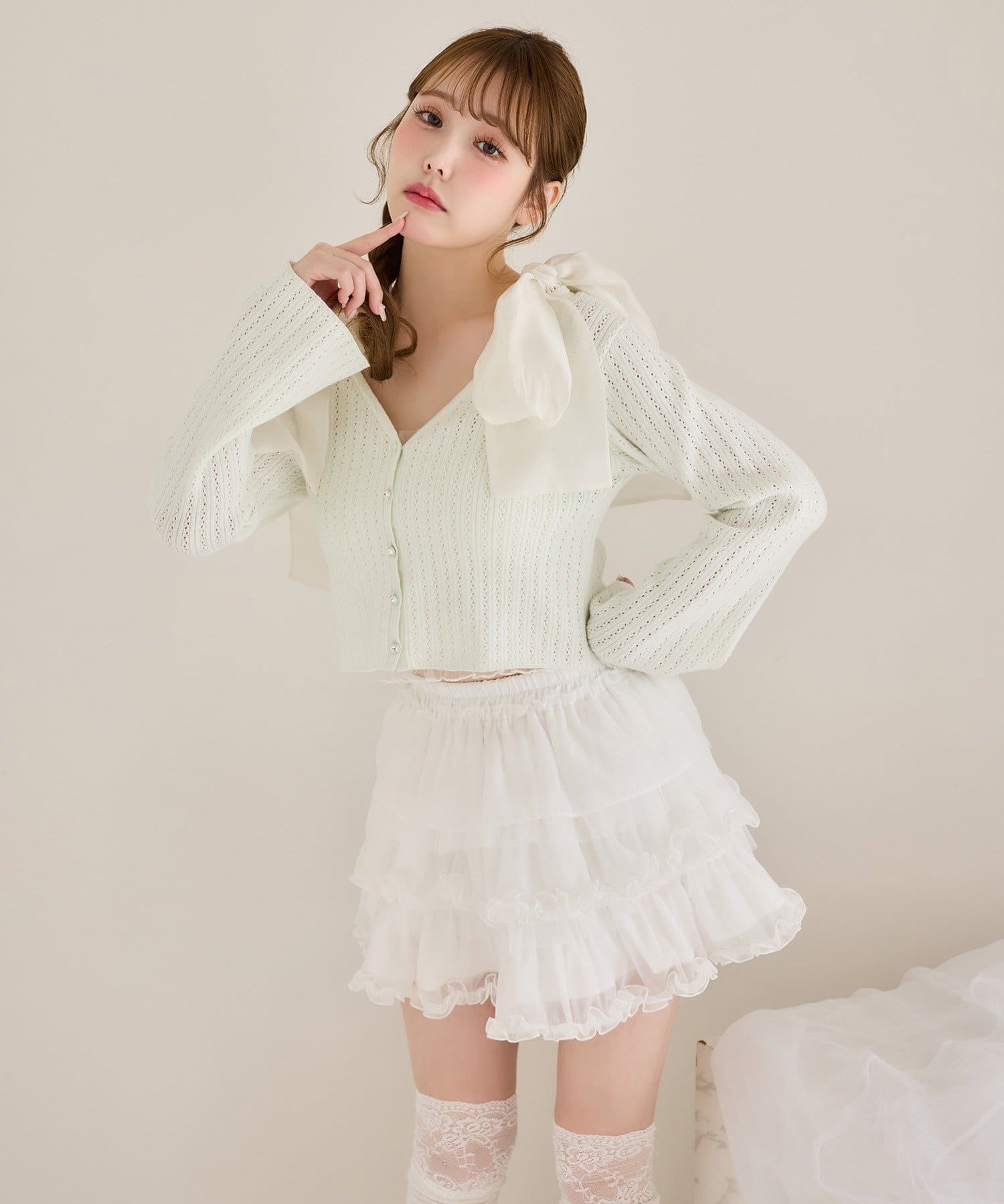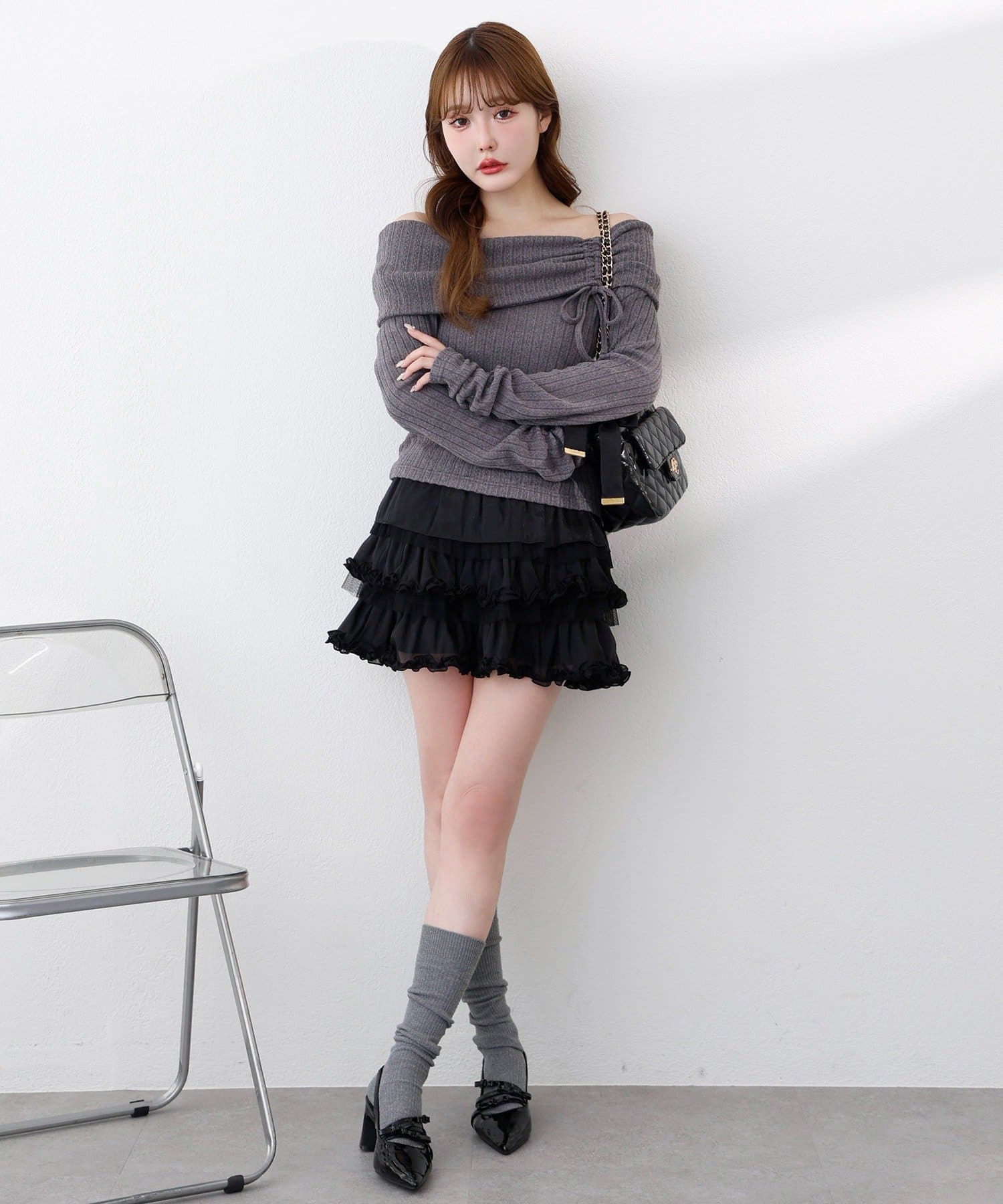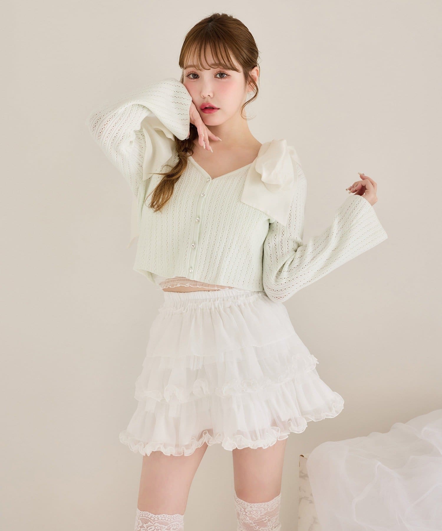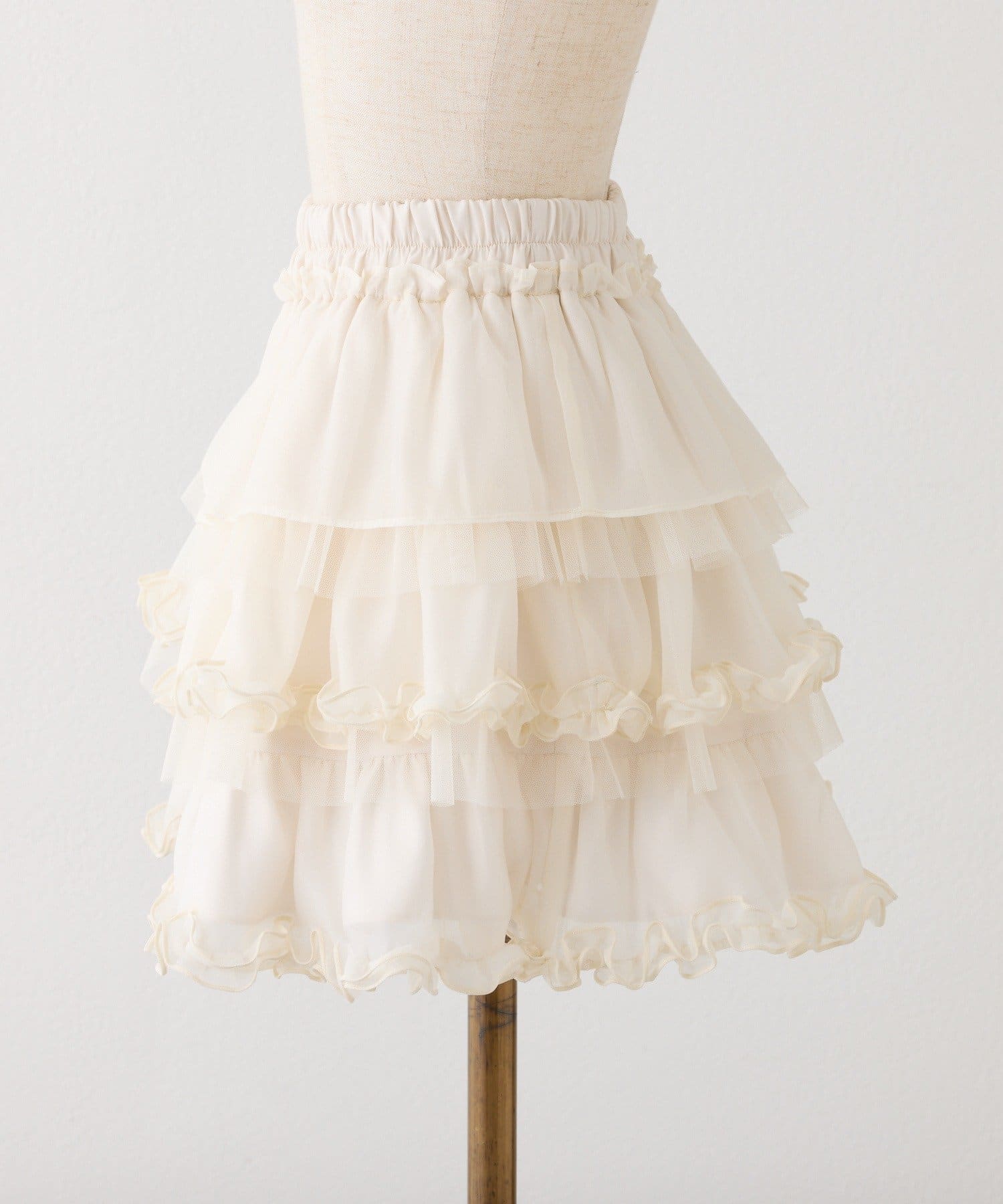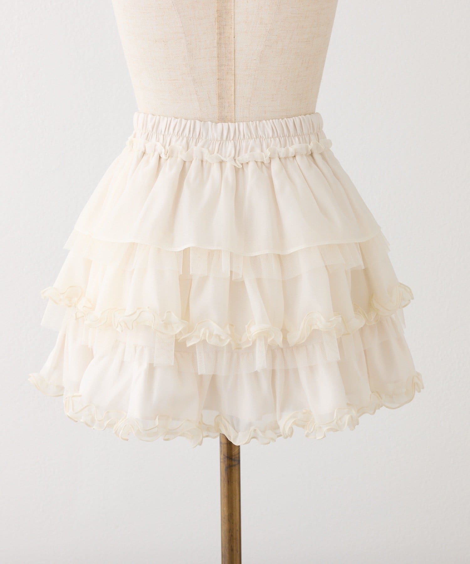 ふんわりと広がるフリルデザインが可愛いミニスカート。