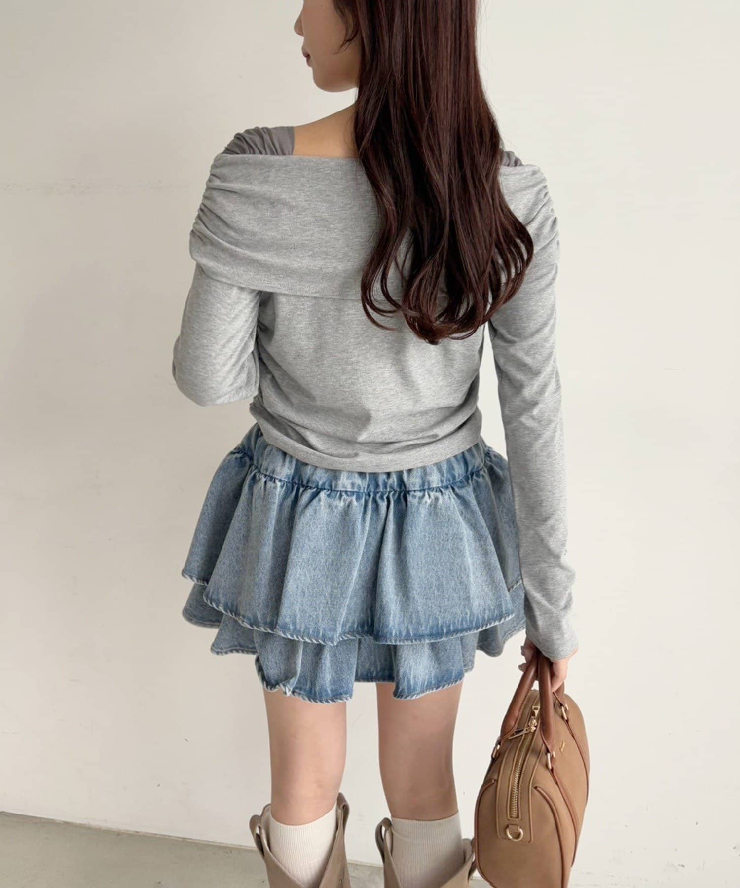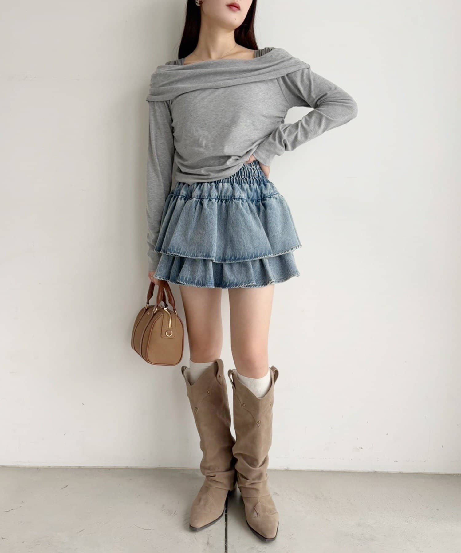 ふわっと広がるフリルティアードがかわいい韓国風スカート