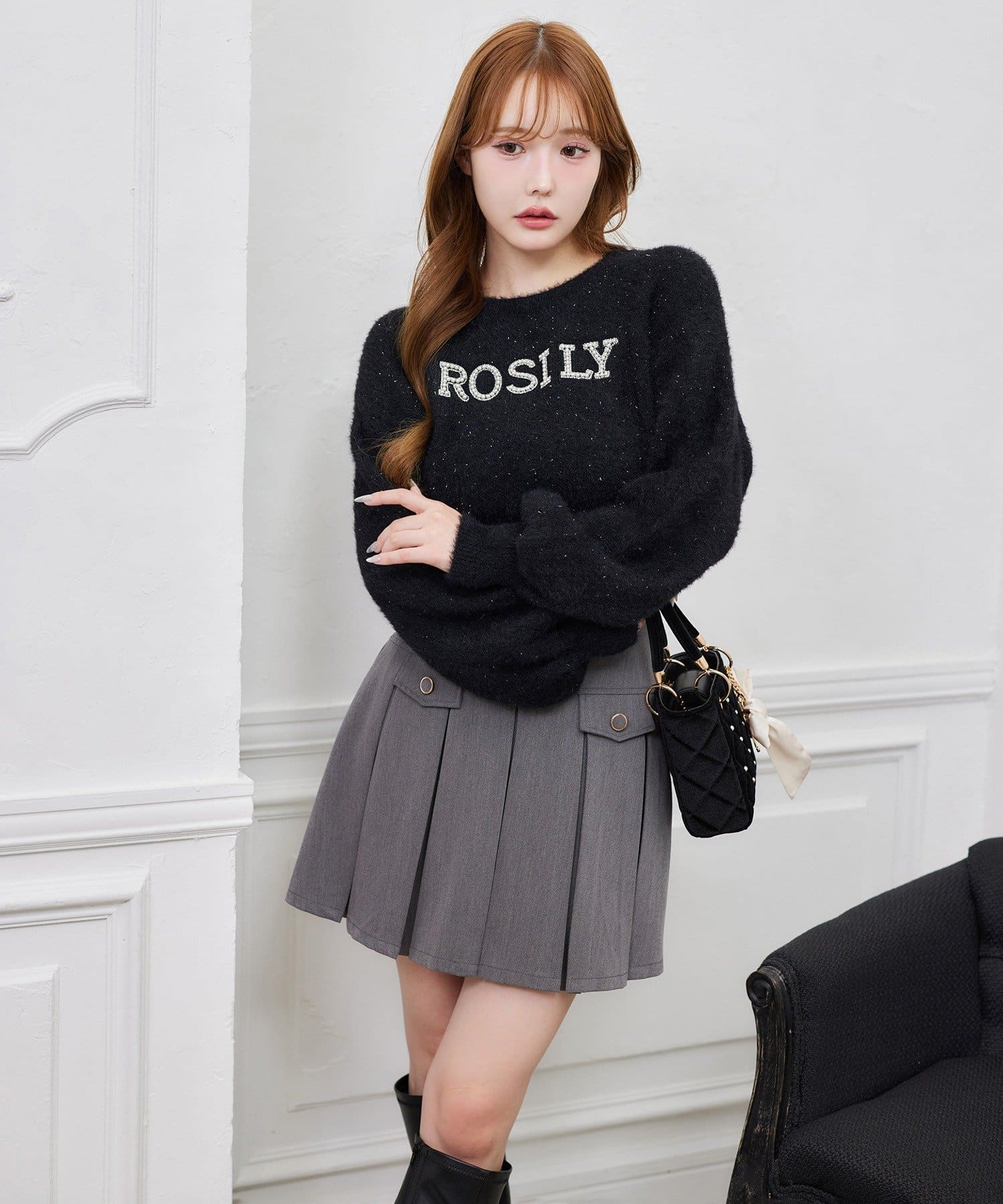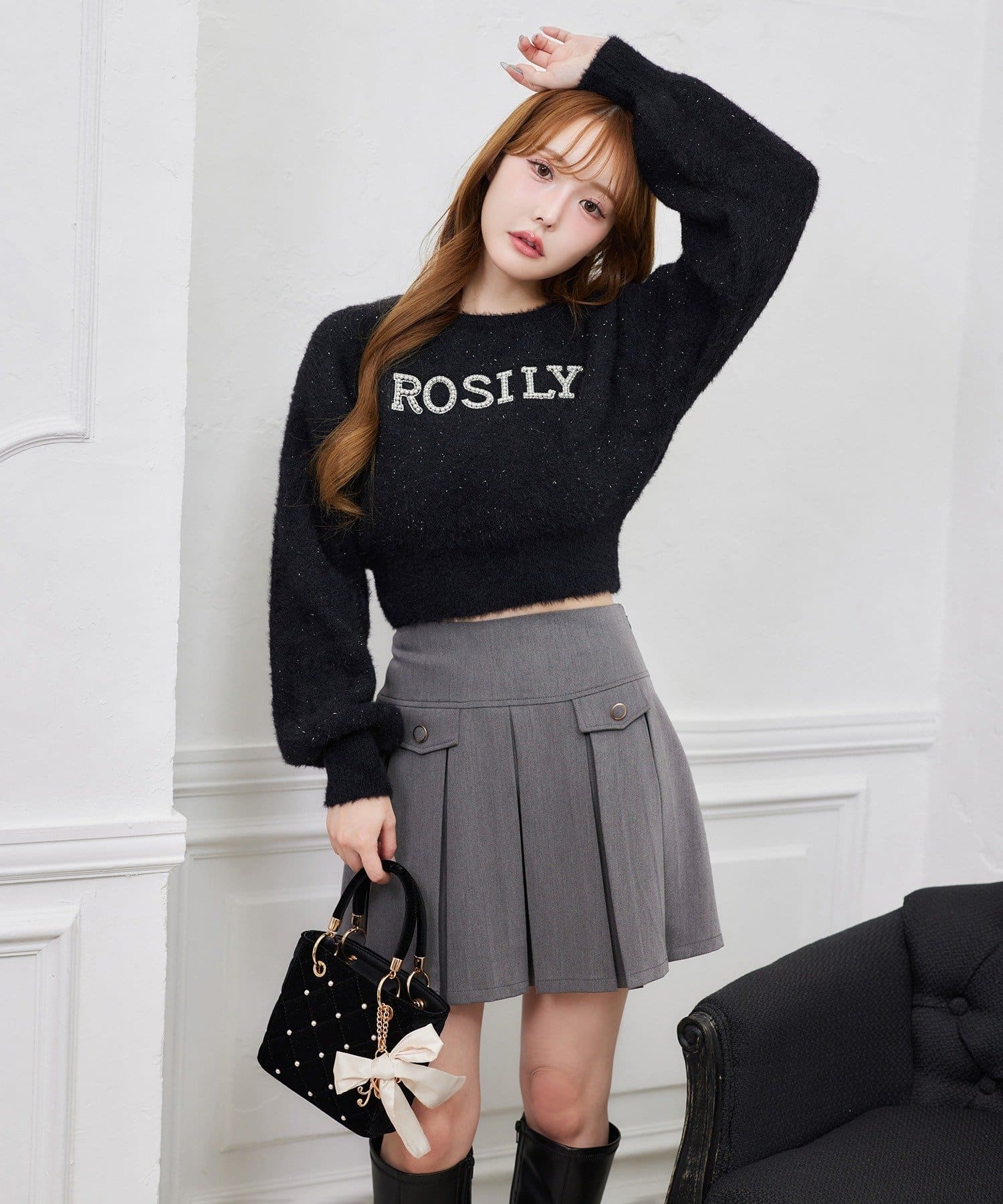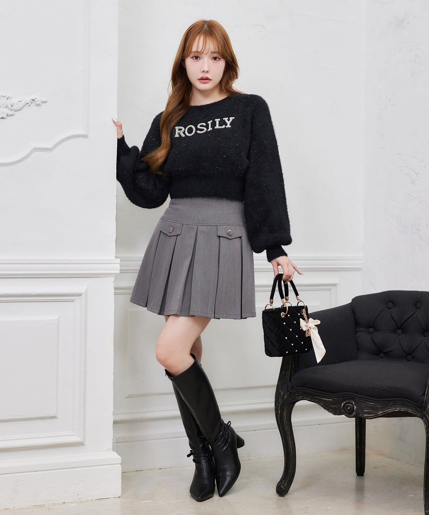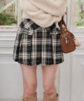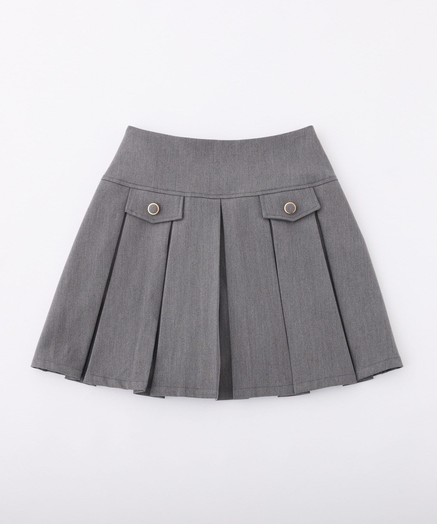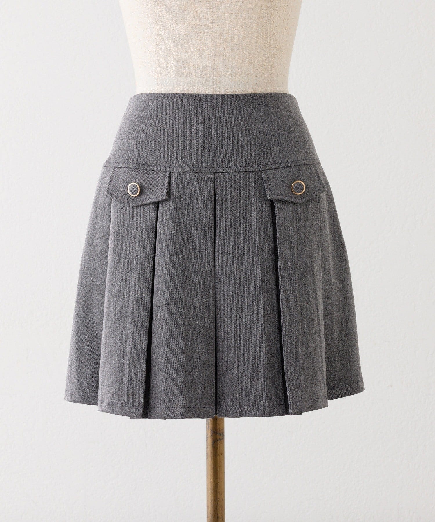 フロントの金ボタンがポイントのプリーツミニスカート。