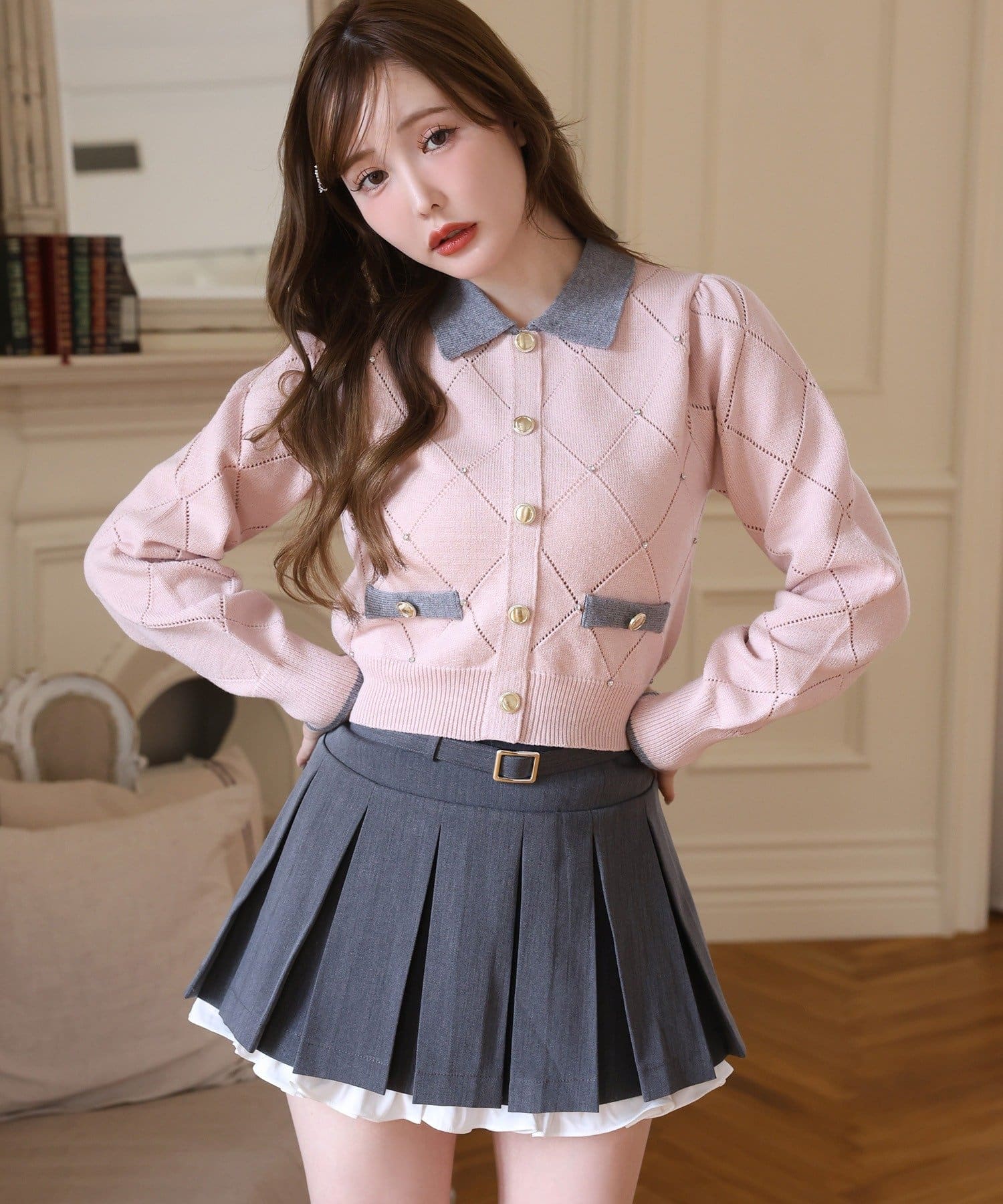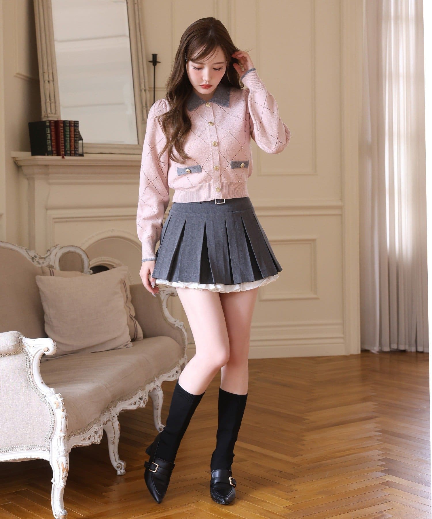 ブラウスやカーディガンを合わせてプレッピーコーデに