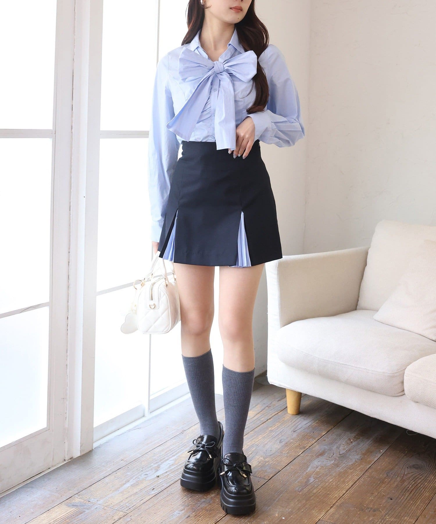 ブラウス+ローファー合わせならスクールライクなきれいめスタイルにも。