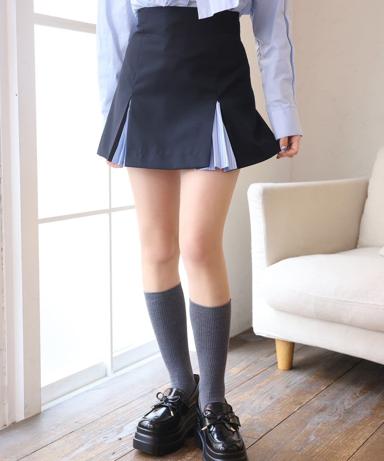 【セットアップ可能】配色プリーツスカート/SMサイズ展開あり