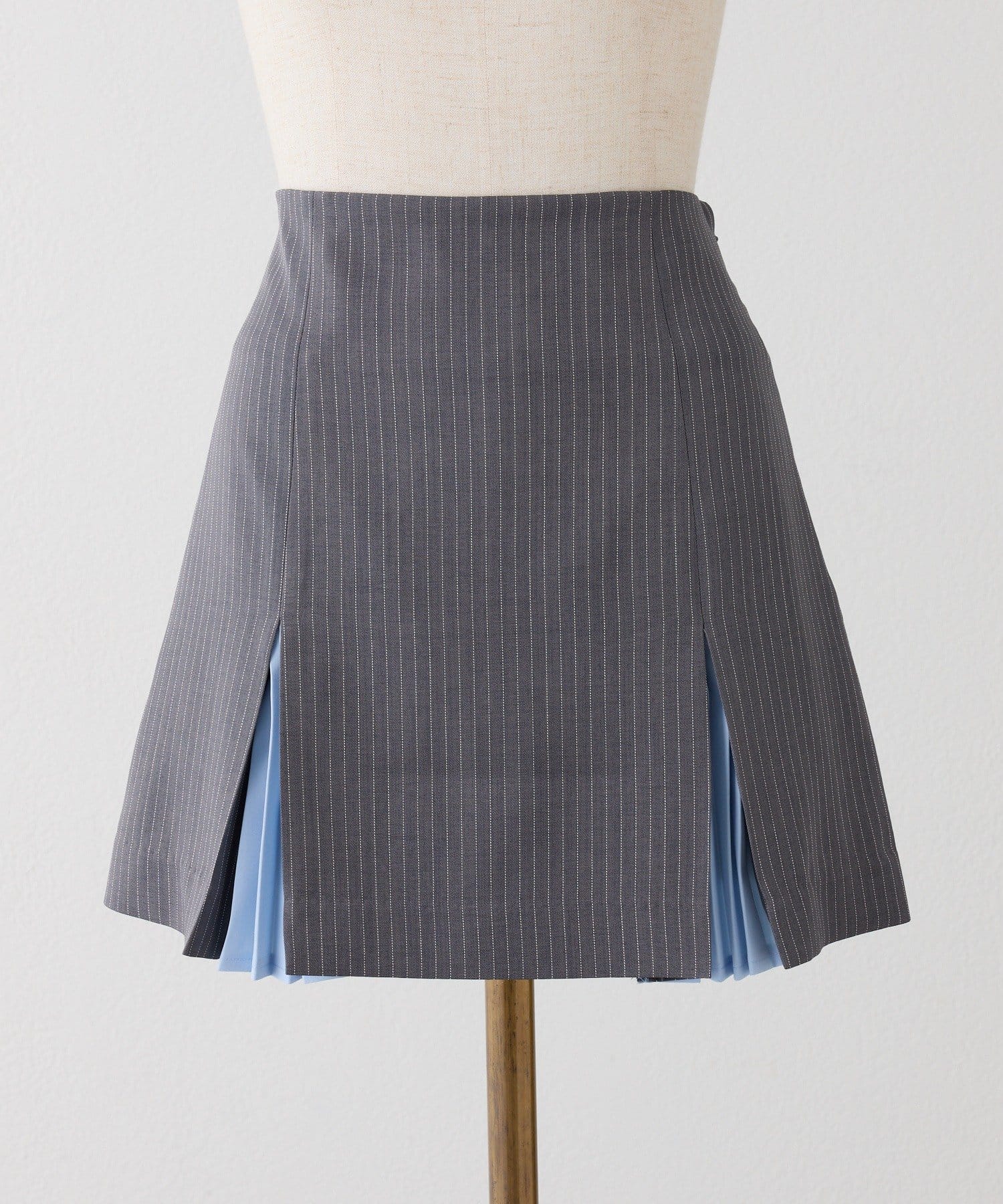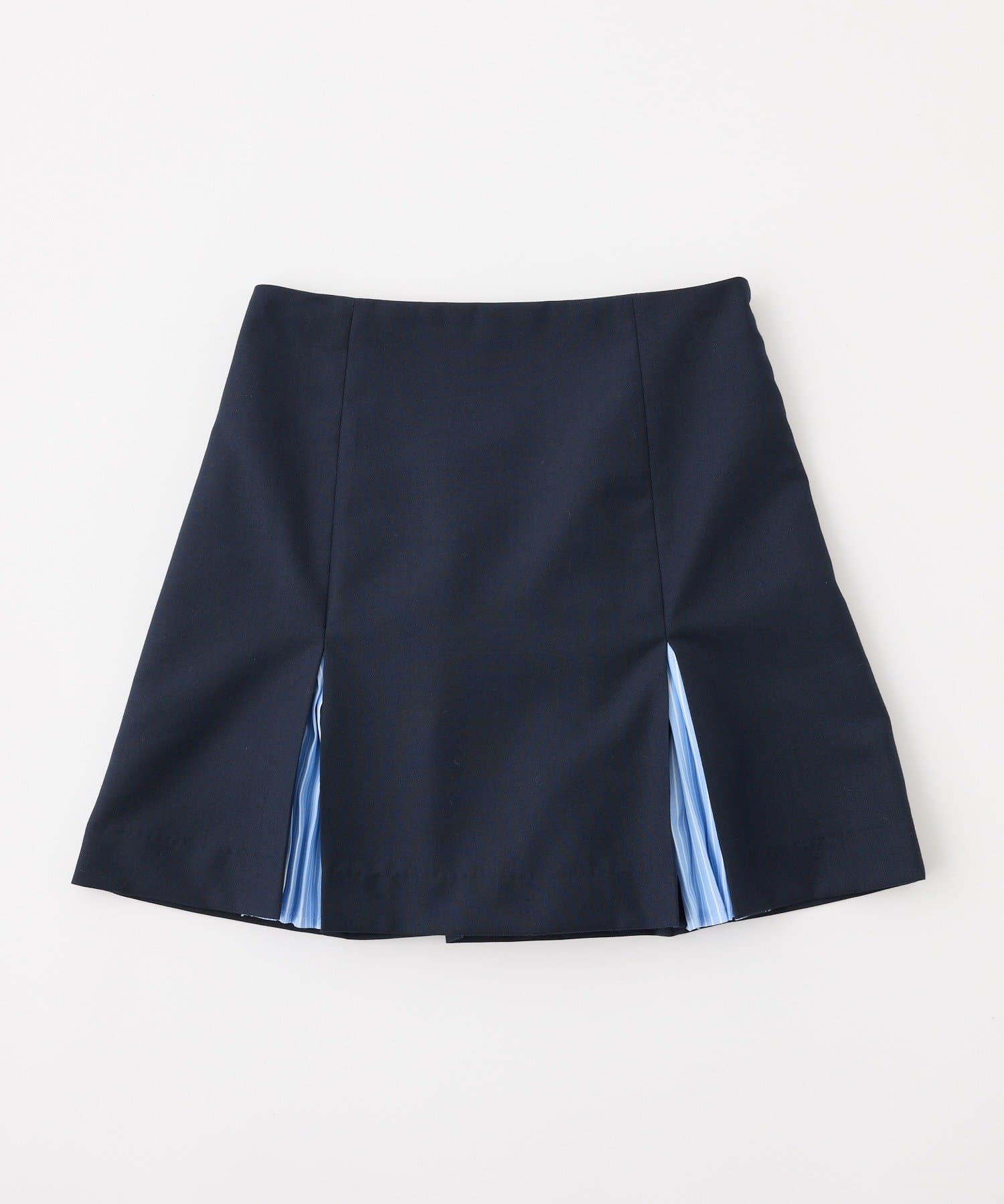 きれいなシルエットが魅力のボックスプリーツミニスカート。