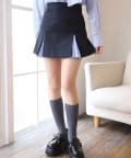 きれいなシルエットが魅力のボックスプリーツミニスカート。