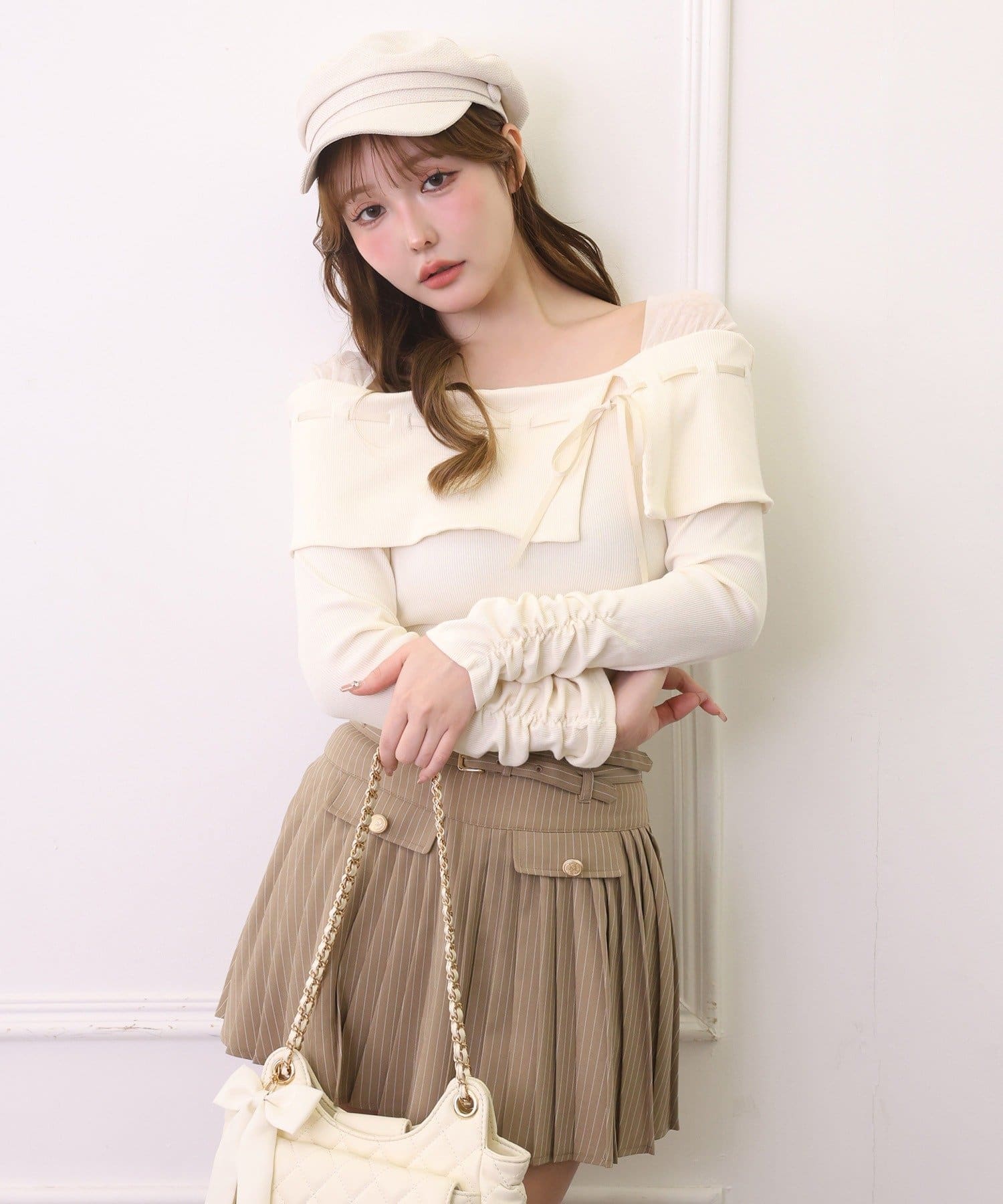 コンパクトなニットやカーディガンを合わせて王道ガーリーコーデに♡