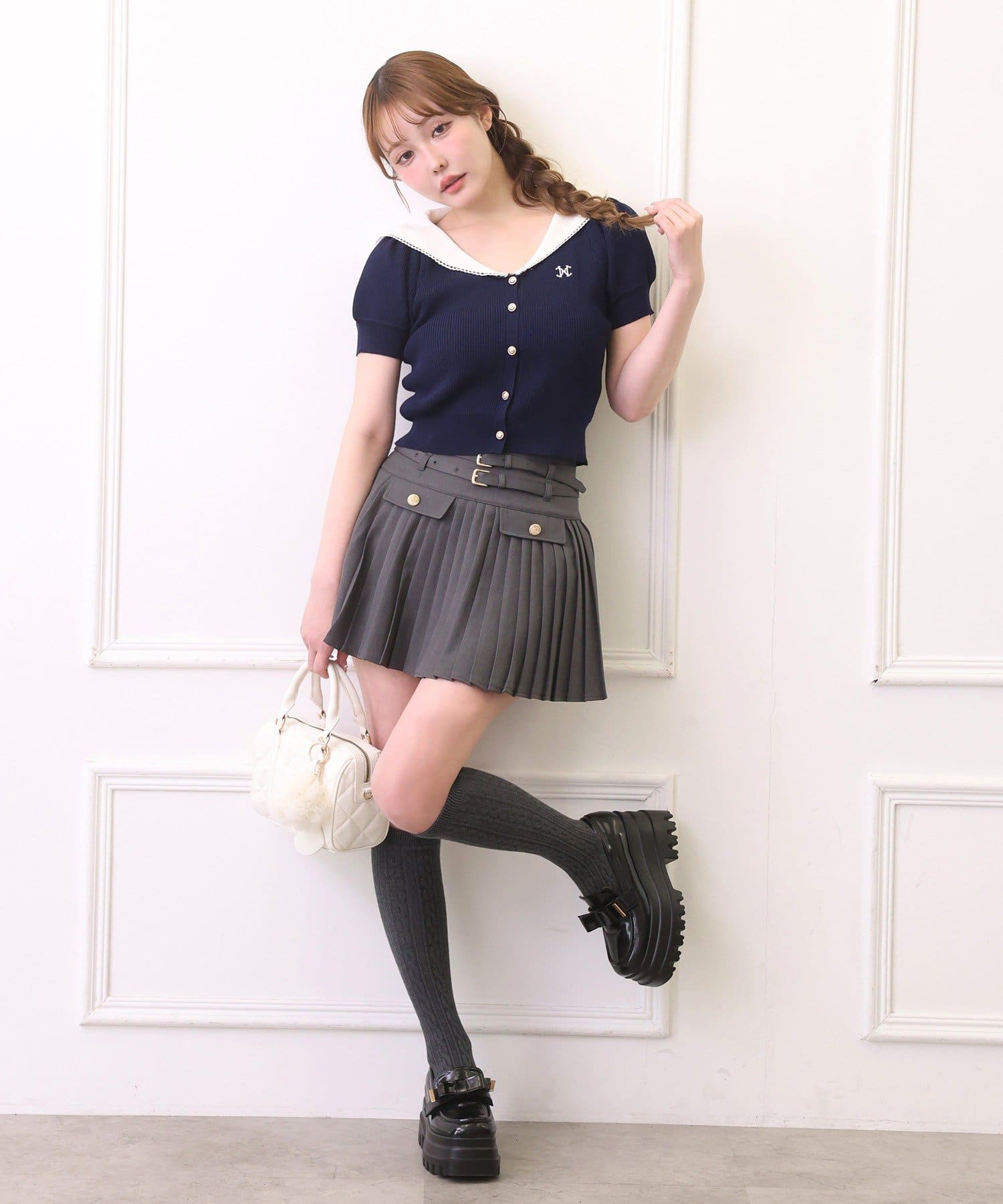 細ベルトが2本付いたデザインがポイントの細プリーツミニスカート♡