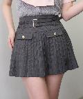 細ベルトが2本付いたデザインがポイントの細プリーツミニスカート♡