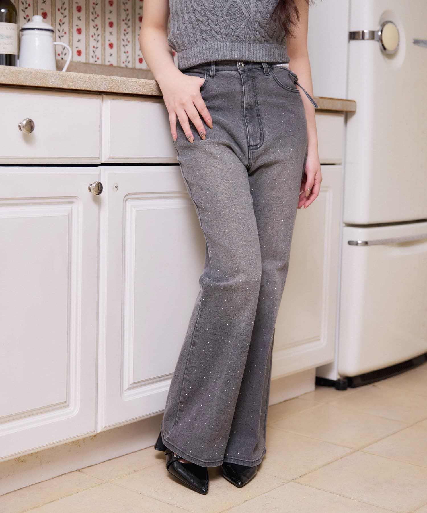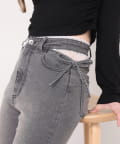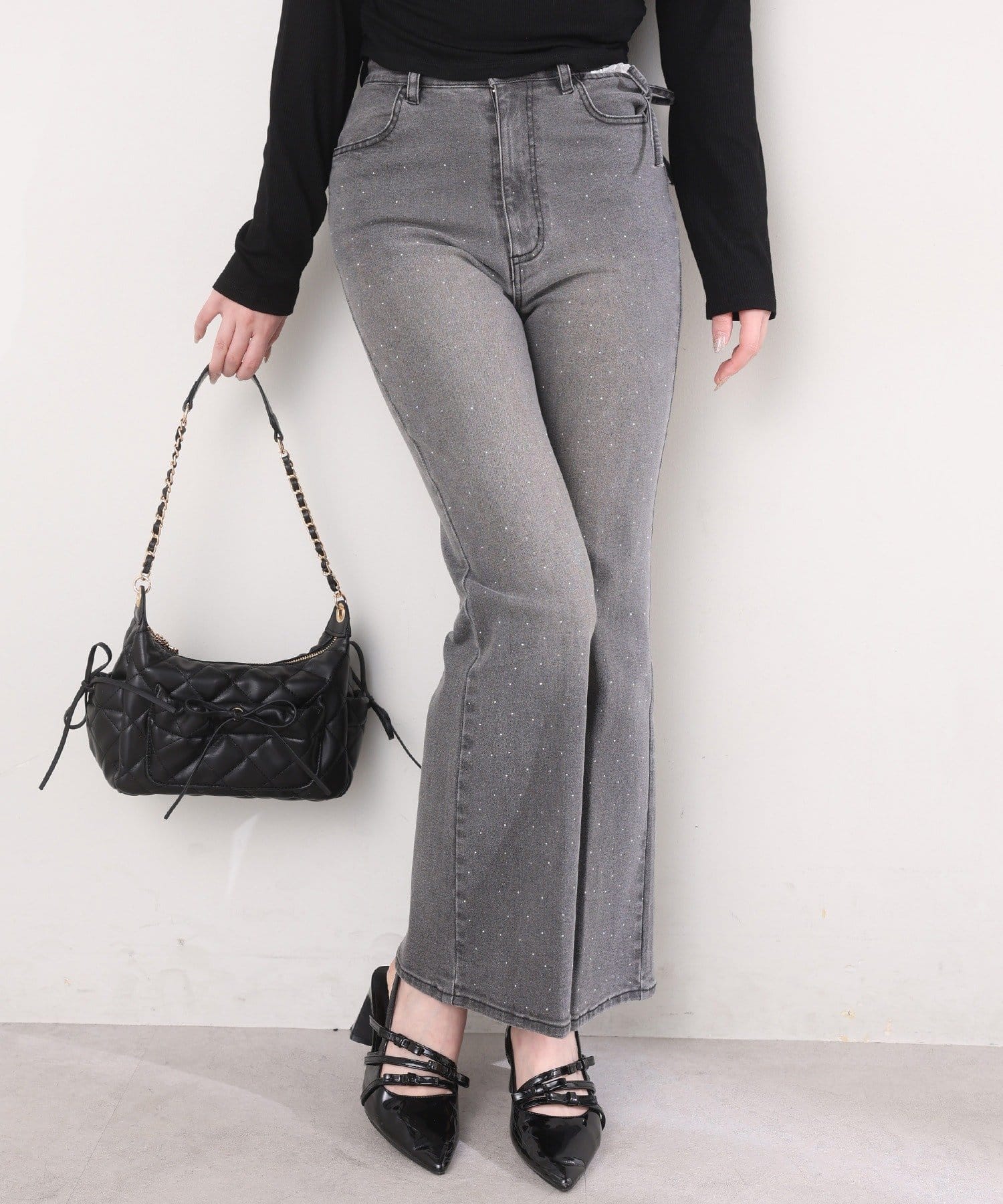 【お気に入り総選挙第1位】サイドカットレース美脚ビジューデニム